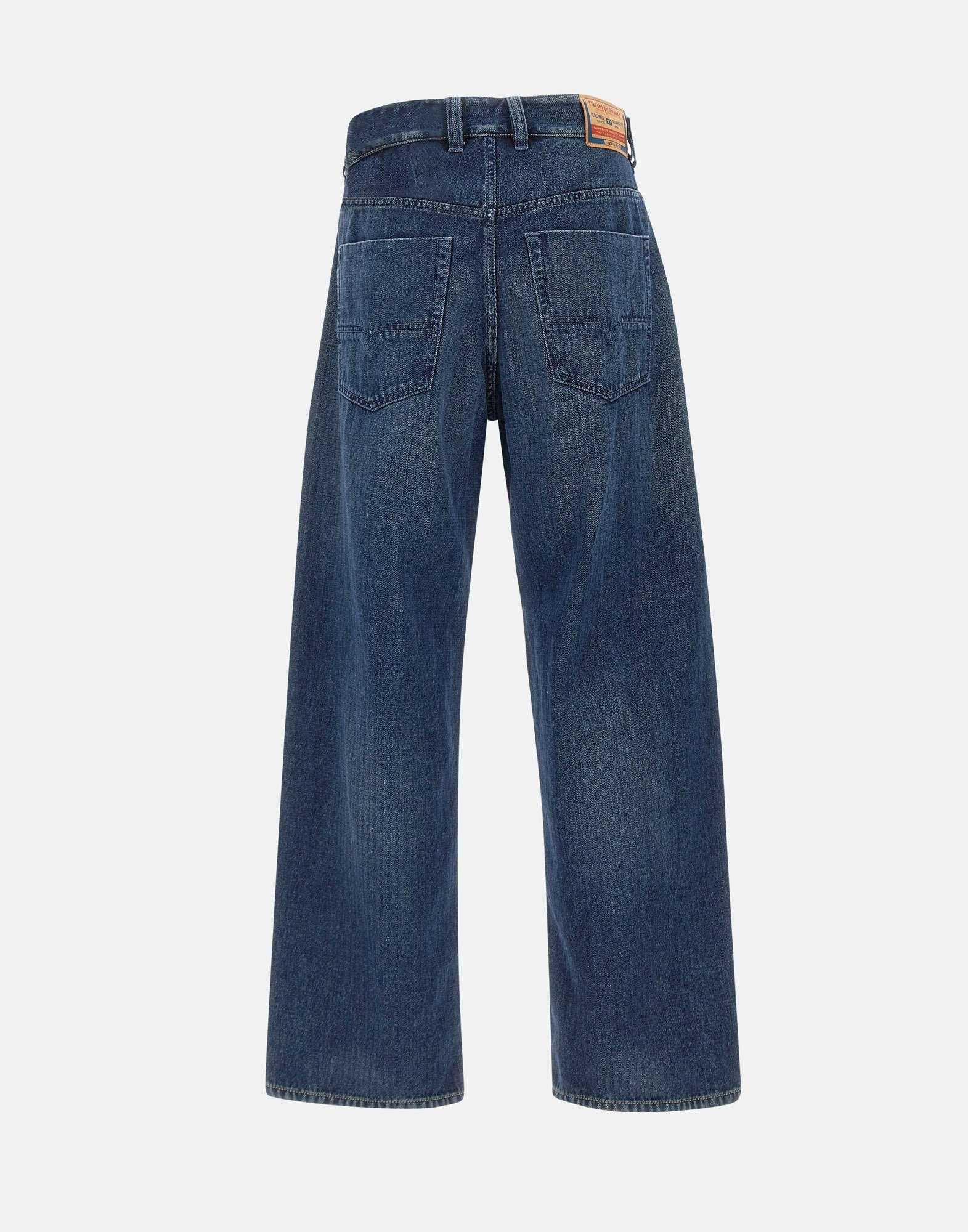 “1997 D-Enim jeans” Diesel uomo, blu lavaggio scuro, denim 100% cotone no stretch, vita media con passanti per cintura, cavallo basso, gamba wide fondo 26cm, patch logo sul retro, relaxed fit