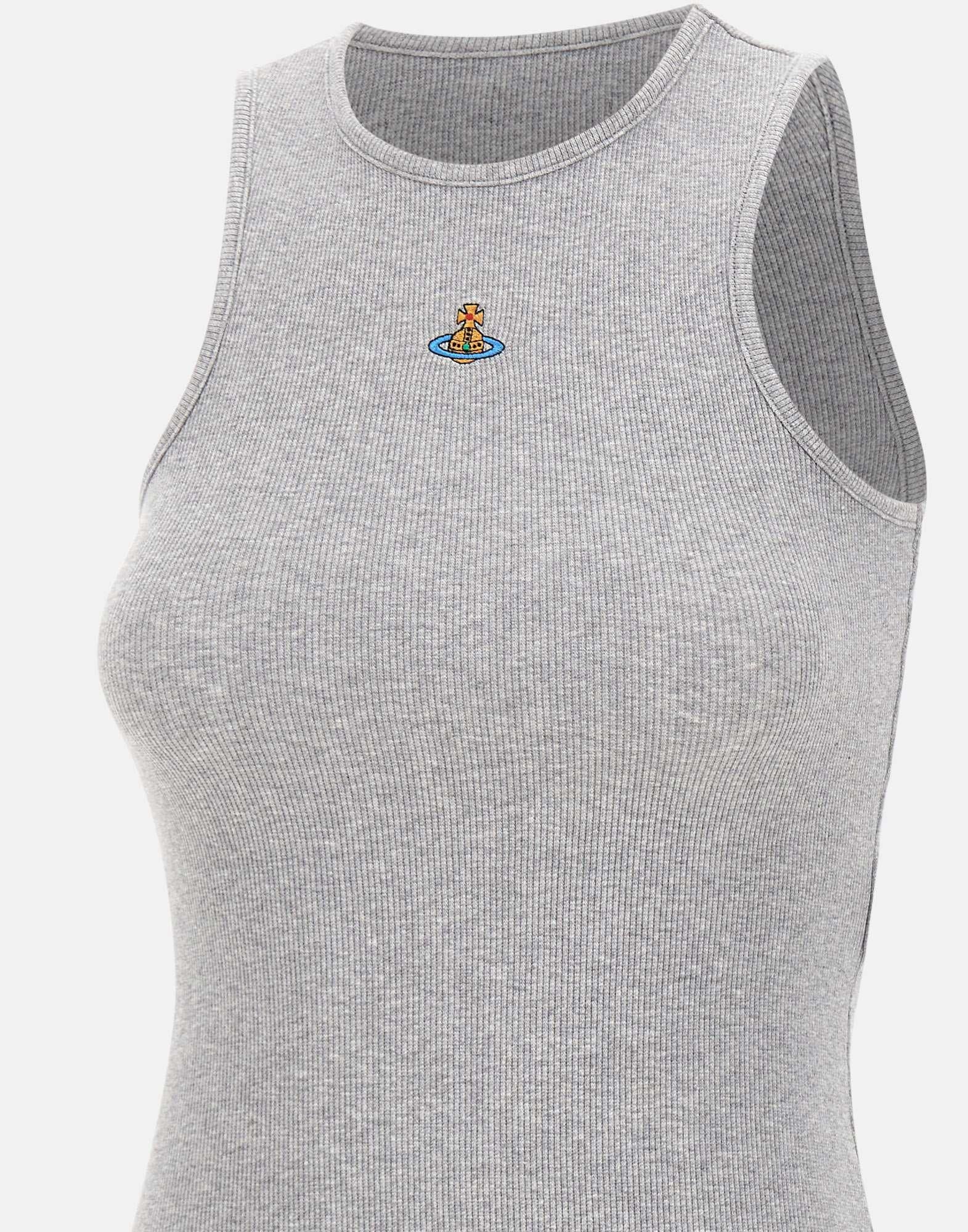 “90s vest” Vivienne Westwood, grigio mélange, smanicato, in cotone organico stretch, trama a costine, Orb a colori ricamato centrale, regular fit.