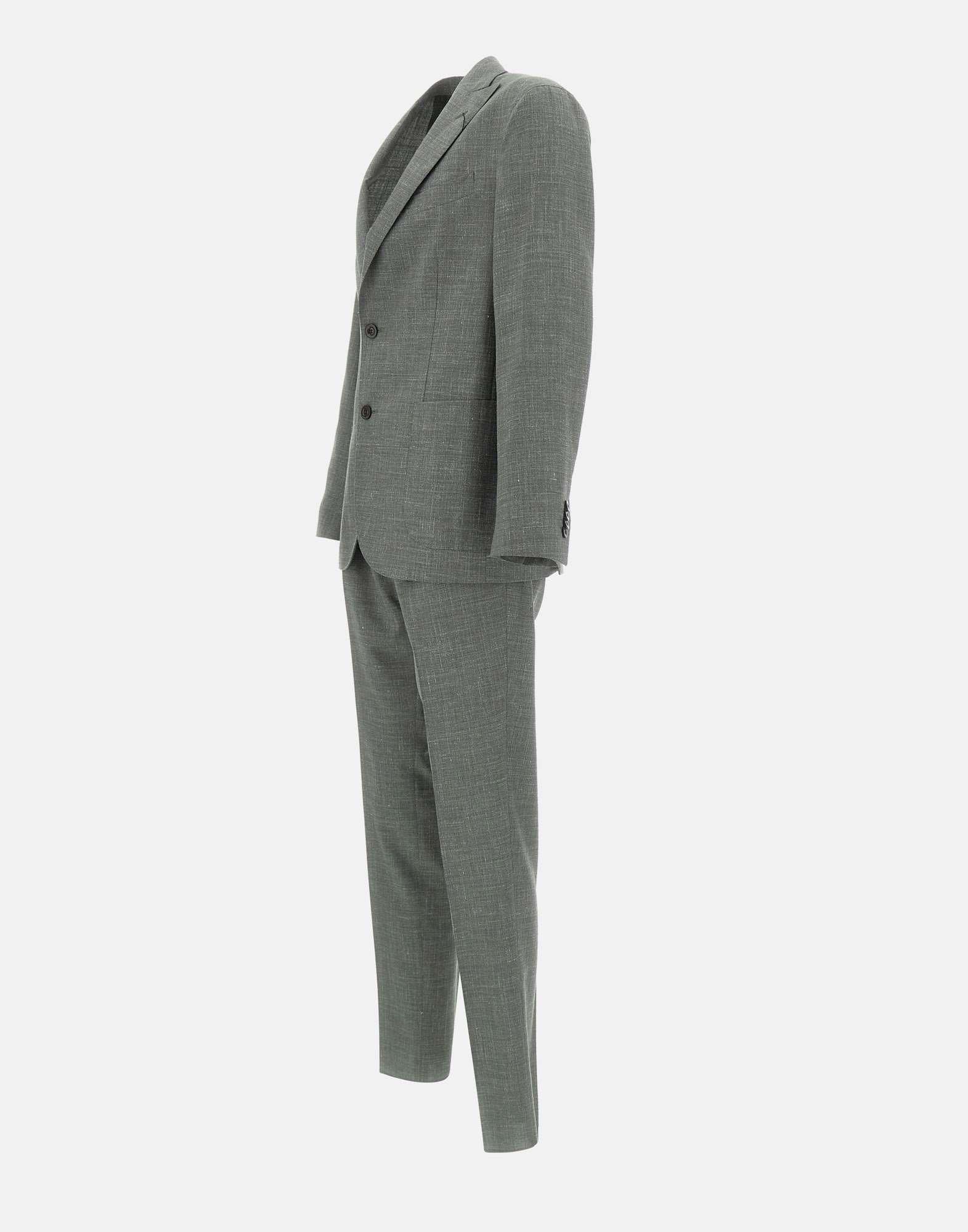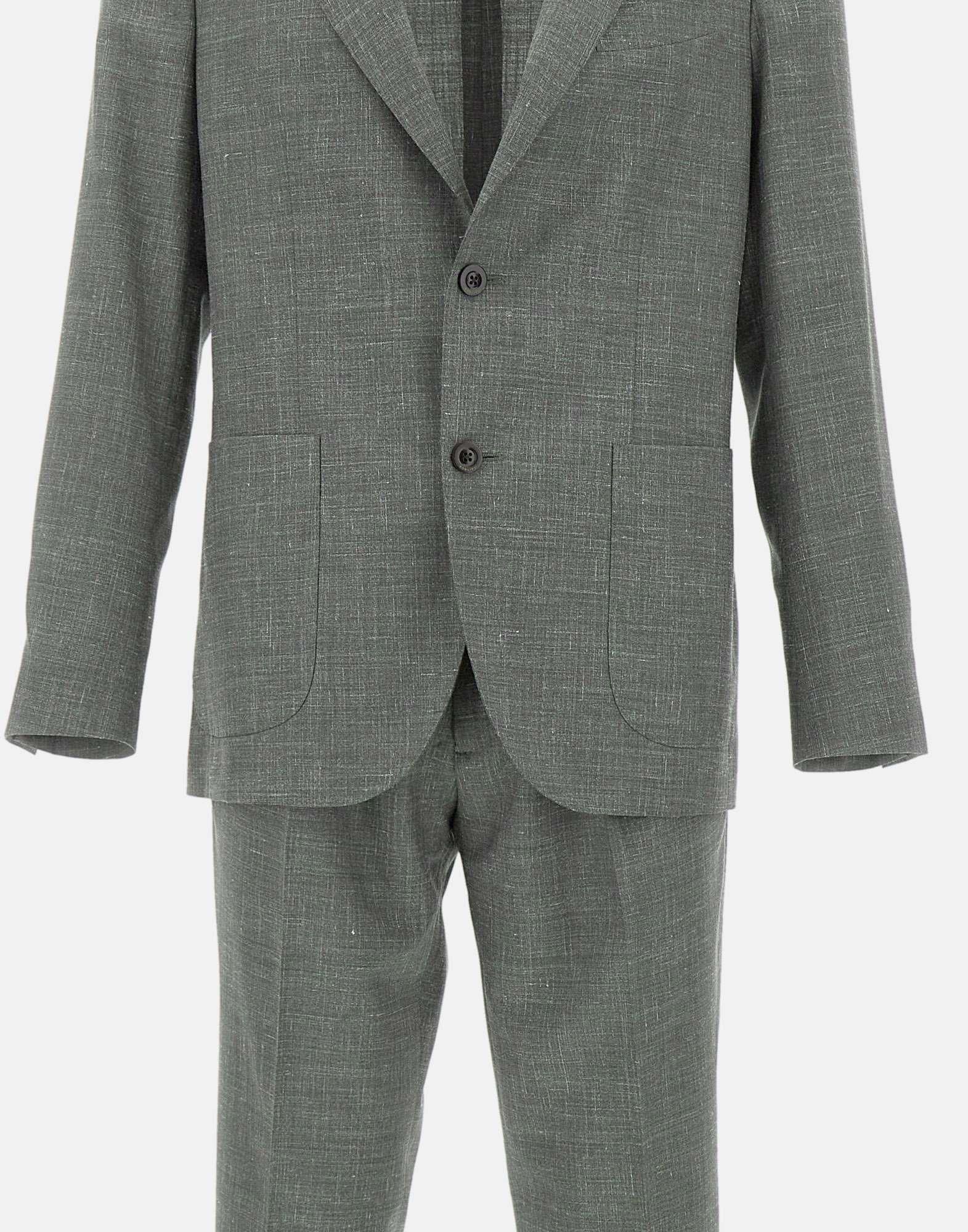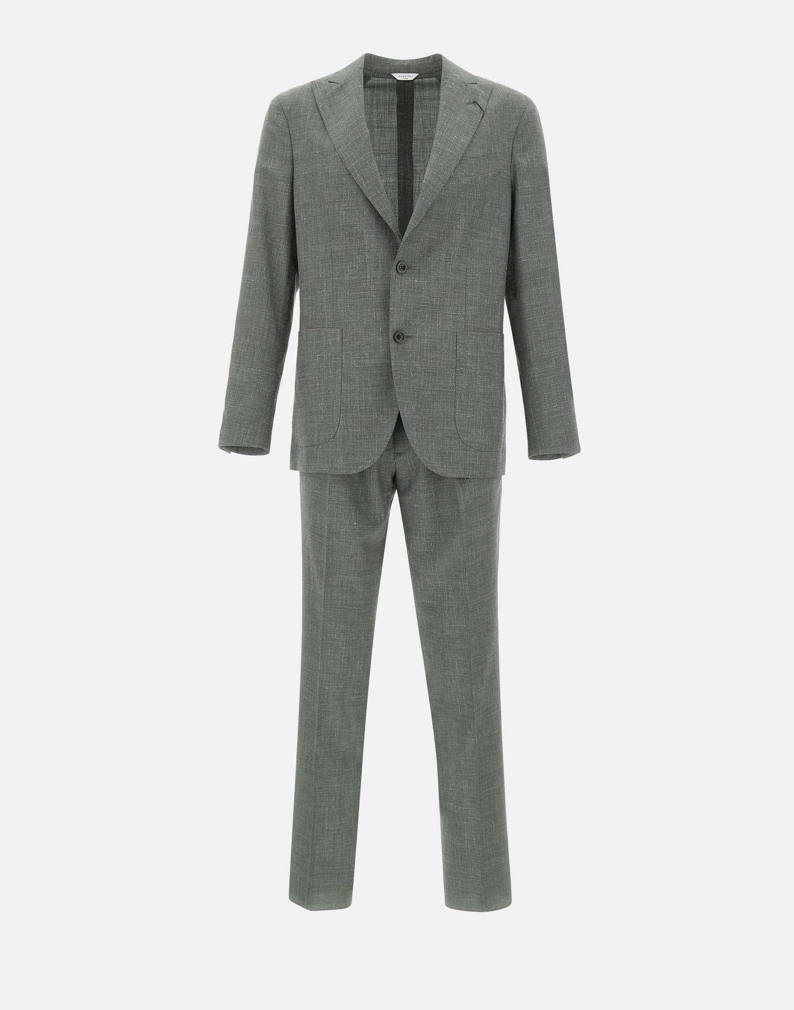 Abito uomo Boglioli realizzato in misto lana, seta e lino color grigio, composto da giacca monopetto e pantaloni coordinati per un’eleganza sartoriale contemporanea. La giacca presenta rever a punta, pinces frontali, due tasche a toppa e taschino sul petto, doppio spacco posteriore, orli stondati e polsini rifiniti da bottoni. I pantaloni sono caratterizzati da pinces e piega stirata, tasche anteriori all’italiana, tasche posteriori a filetto e chiusura con zip e bottone nascosti da patta, con ampiezza fondo 18 cm. Un completo versatile e raffinato, ideale per occasioni formali e look business curati. Slim fit. Made in Italy.