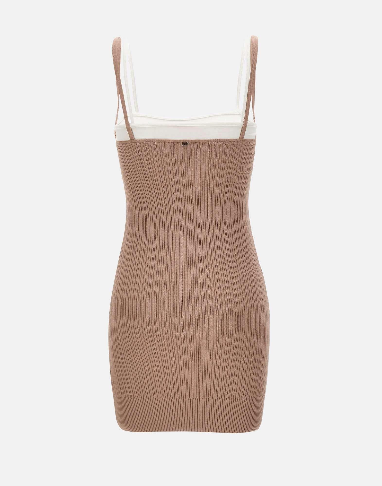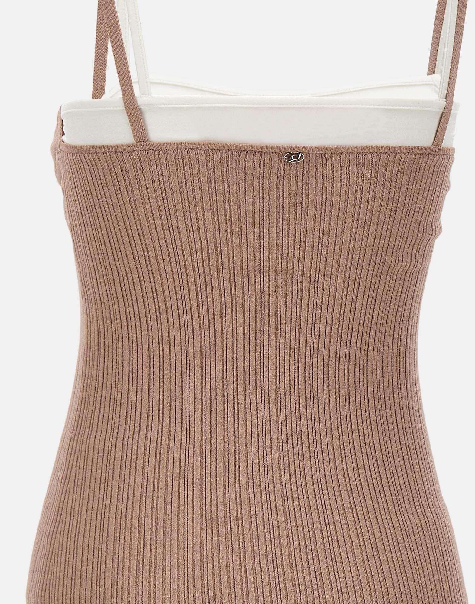 Abito corto donna Diesel “M-Zandra” realizzato in tessuto a maglia elasticizzato color rosa cipria, pensato per valorizzare la silhouette con un design femminile e contemporaneo. Il modello presenta taglio sotto il seno, scollo dritto e bretelline sottili che definiscono una linea essenziale. La struttura è completata da una fascia sottostante a contrasto color bianco, anch’essa dotata di bretelline, che crea un interessante gioco di livelli e cromie. La vestibilità slim aderisce al corpo con naturalezza, rendendo l’abito ideale per look moderni e di carattere.