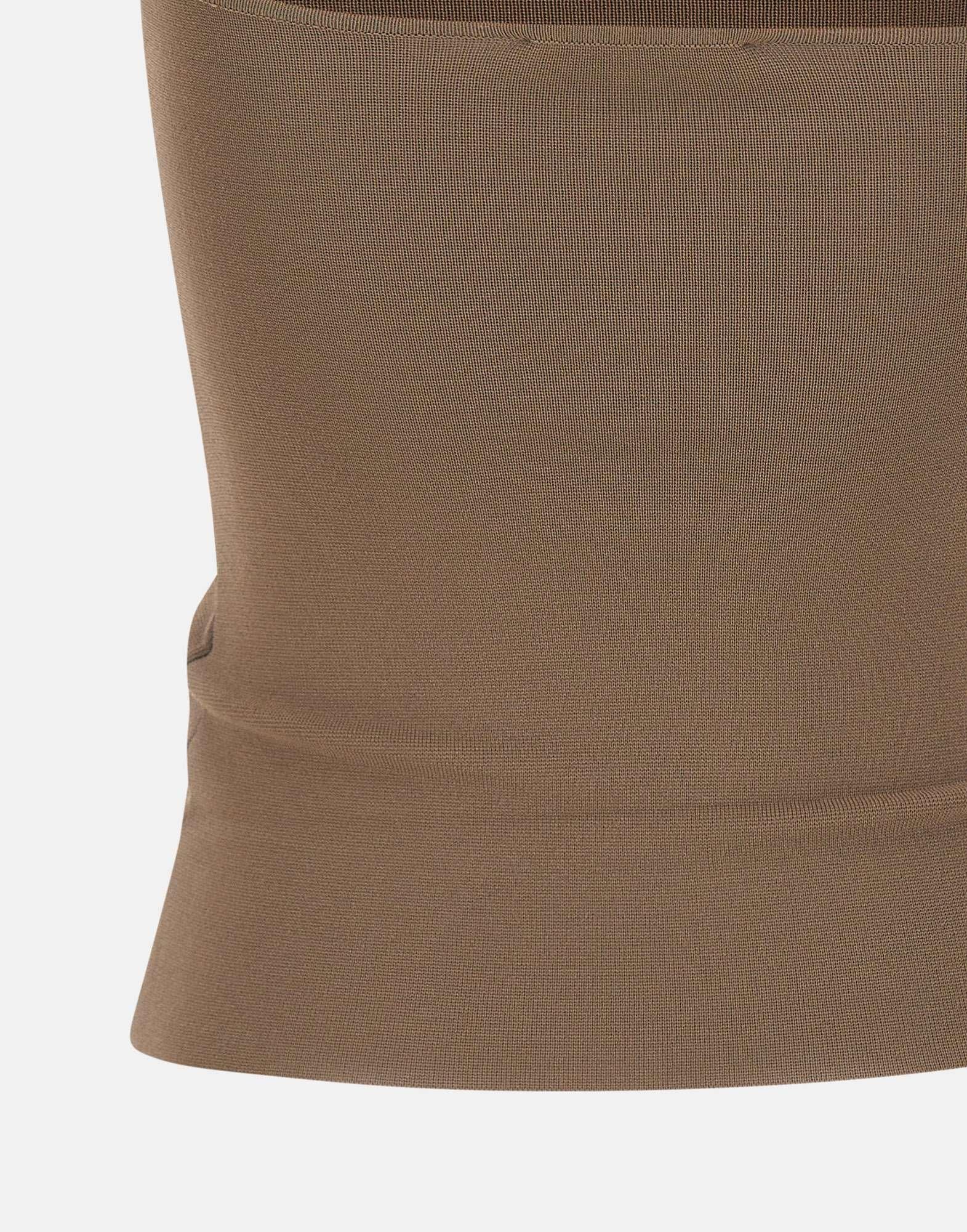 Top donna Entire Studios “Bandeau” realizzato in misto viscosa elasticizzato color marrone, dal design essenziale e contemporaneo. Lo scollo a fascia senza maniche valorizza la linea con un look pulito, mentre l’orlo tagliato a vivo aggiunge un dettaglio minimale e deciso. La vestibilità slim fit aderisce al corpo con comfort, ideale per abbinamenti dal giorno alla sera.