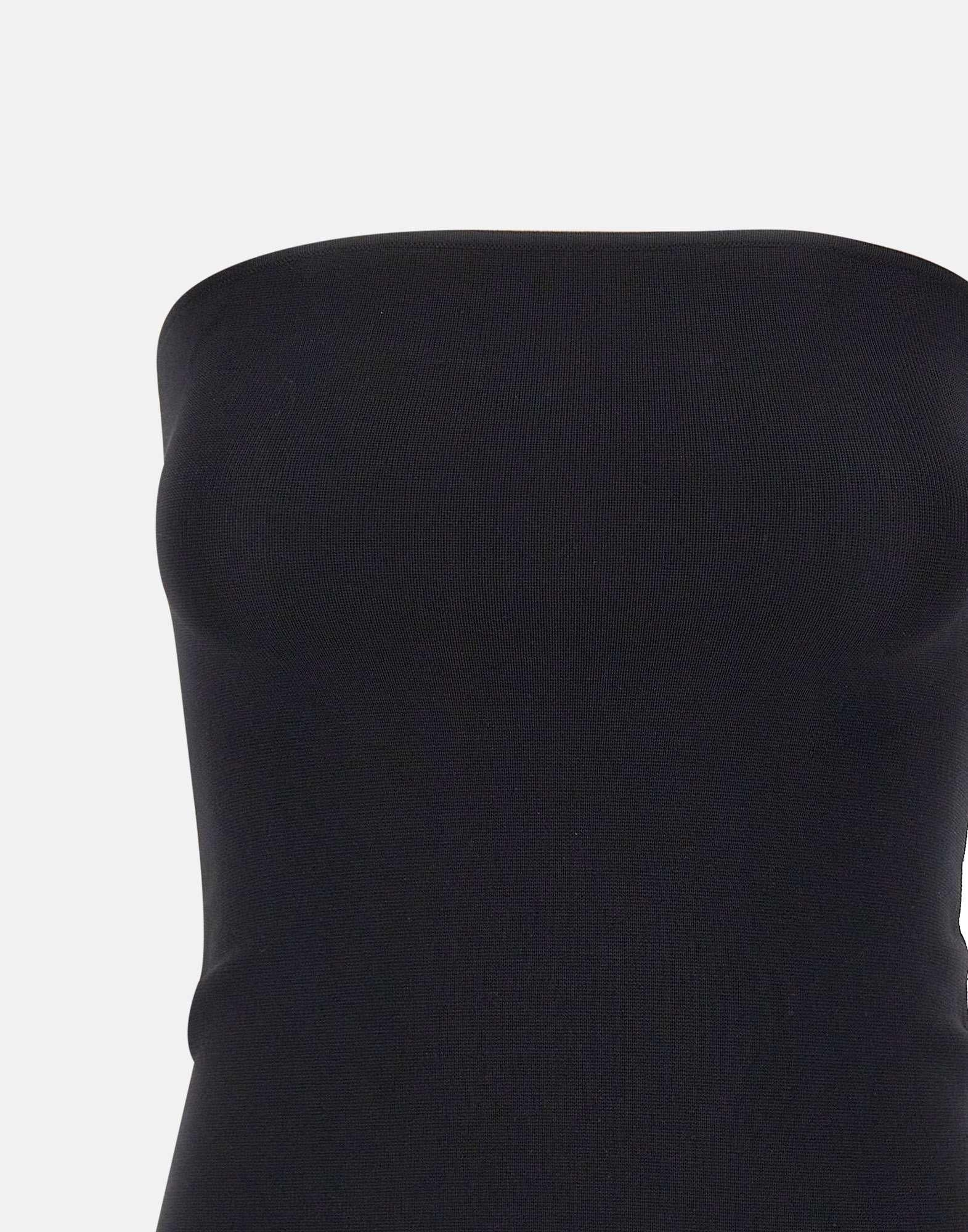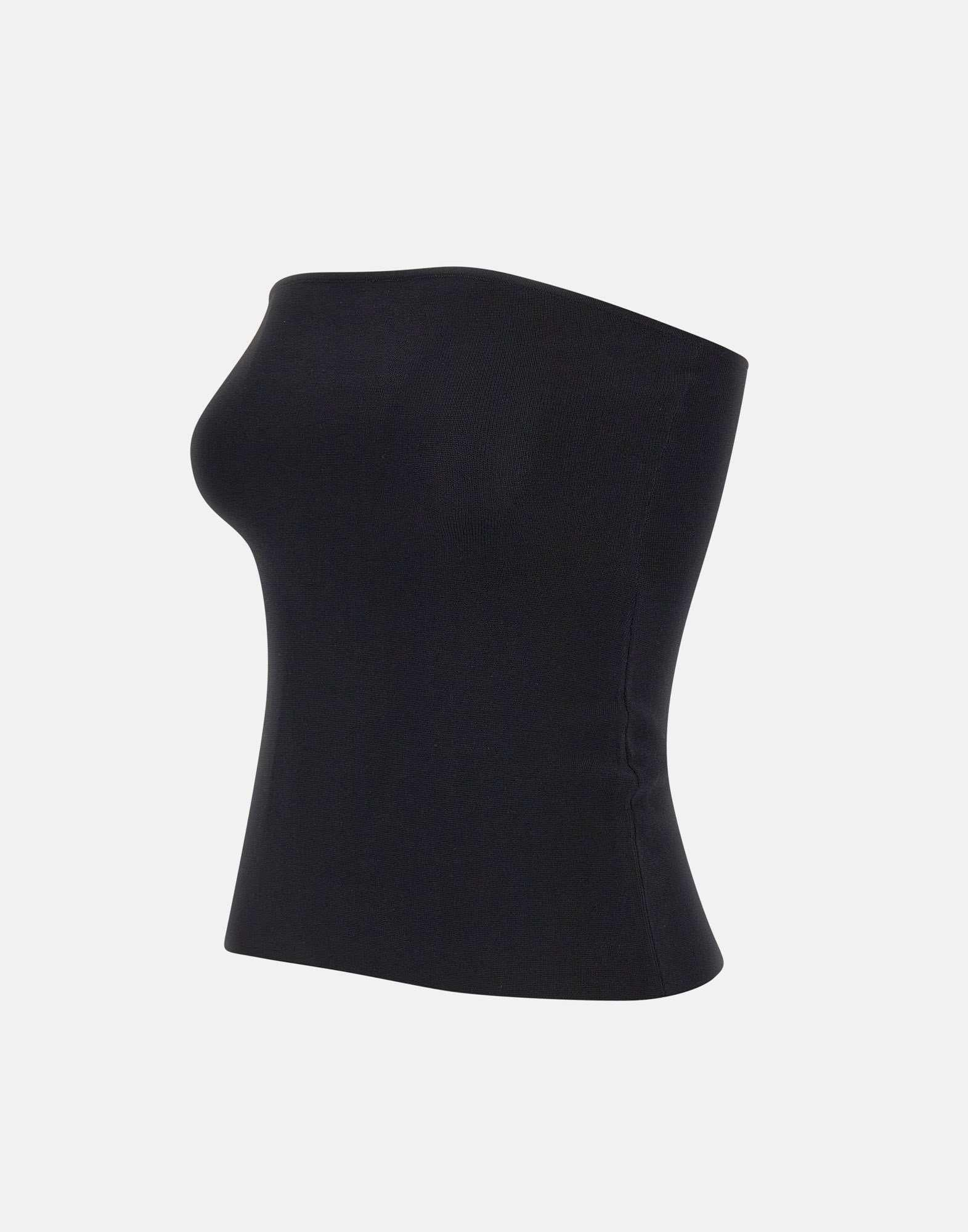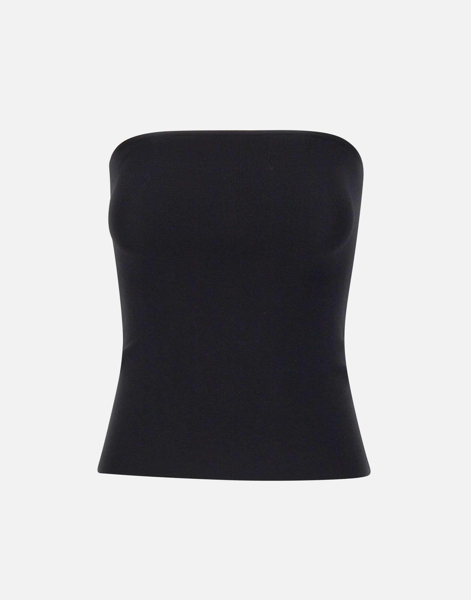 Top donna Entire Studios “Bandeau” realizzato in misto viscosa elasticizzato color nero, dal design essenziale e contemporaneo. Lo scollo a fascia senza maniche valorizza la linea con un look pulito, mentre l’orlo tagliato a vivo aggiunge un dettaglio minimale e deciso. La vestibilità slim fit aderisce al corpo con comfort, ideale per abbinamenti dal giorno alla sera.