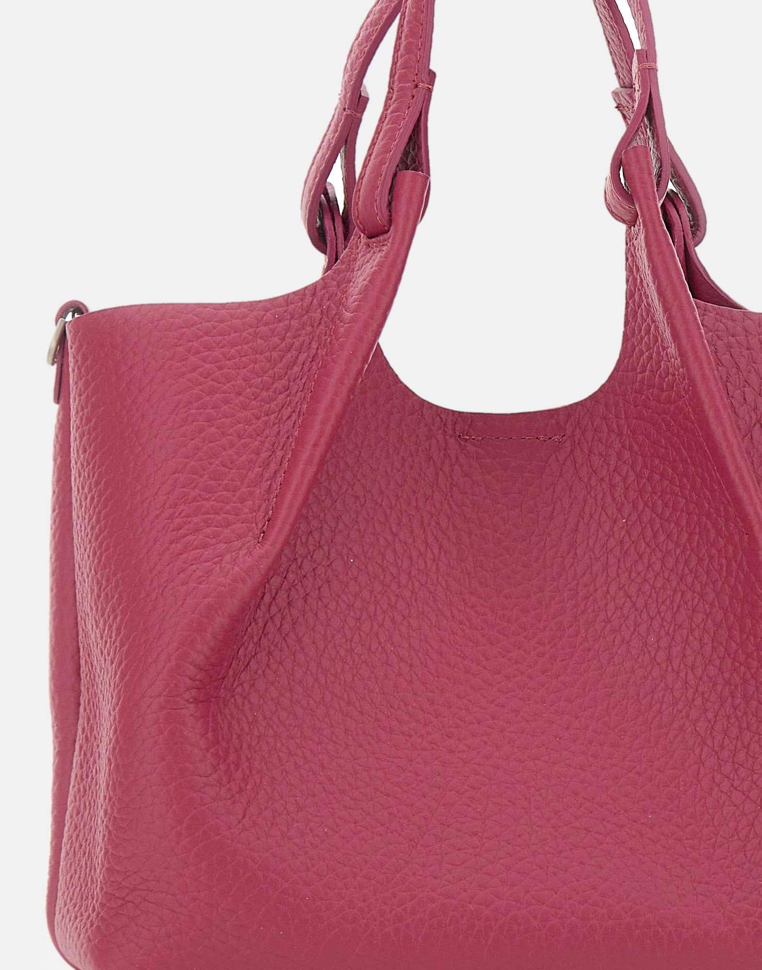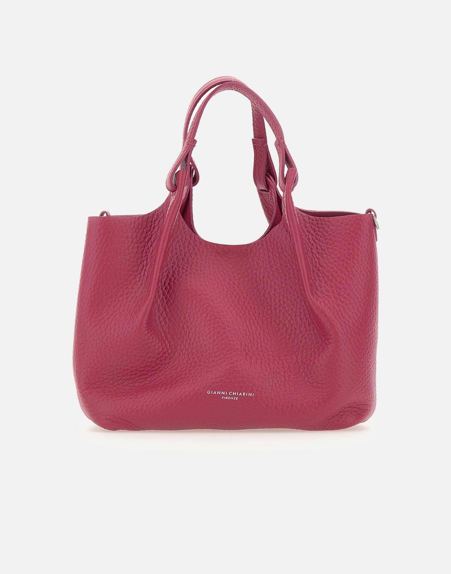 Borsa a mano donna Gianni Chiarini “Dua” realizzati in pelle bubble double color fucsia, caratterizzata da una texture unica e luminosa. Dotata di monoscomparto sfoderato, presenta doppi manici in tono e tracolla coordinata regolabile e removibile per indossarla anche crossbody. All’interno è inclusa una pochette coordinata. La chiusura con bottone magnetico è completata da gancio centrale che, una volta chiuso, cambia la forma della borsa per una versatilità ancora maggiore. Include dust bag. Made in Italy. Dimensioni: 24x27x12 cm.