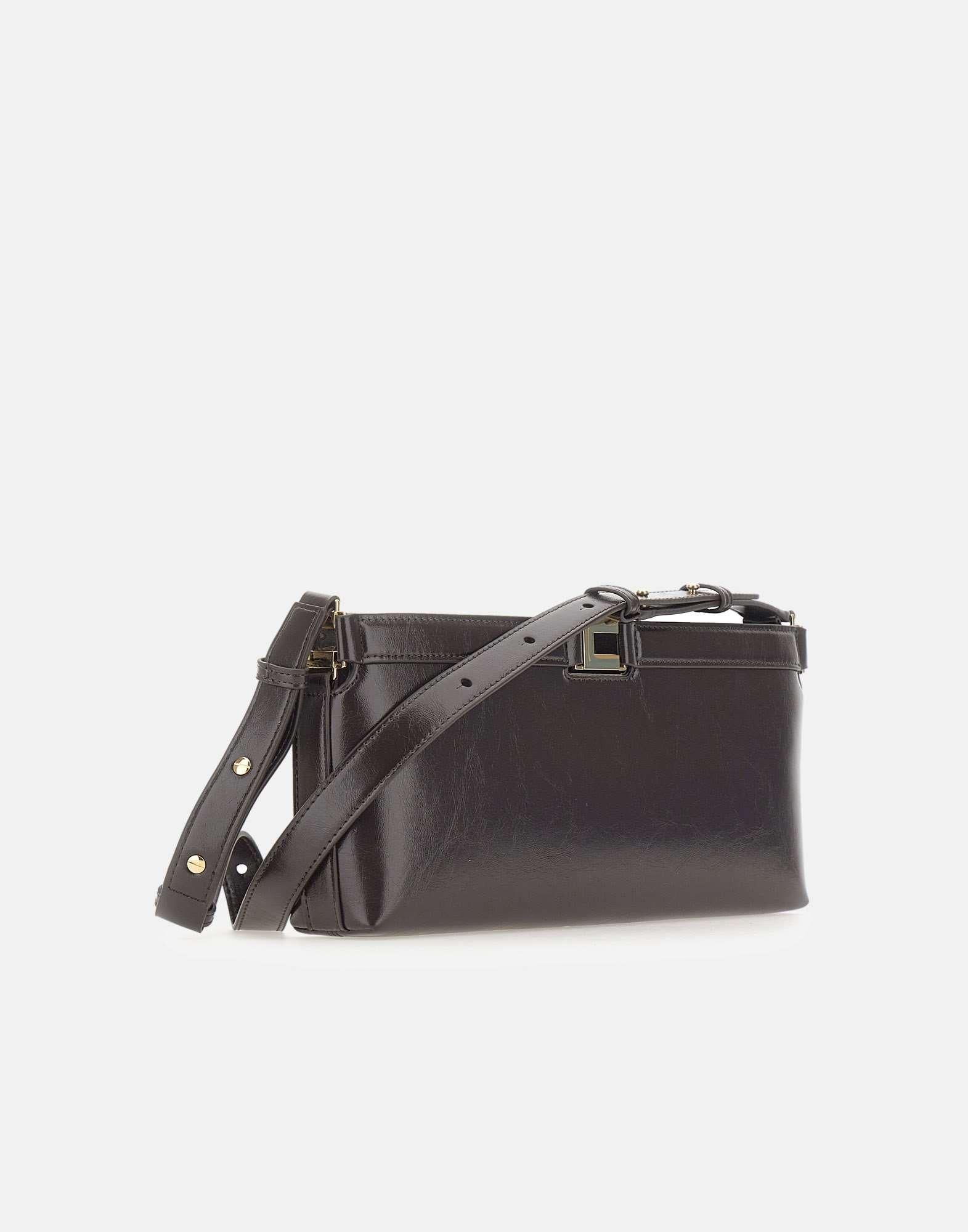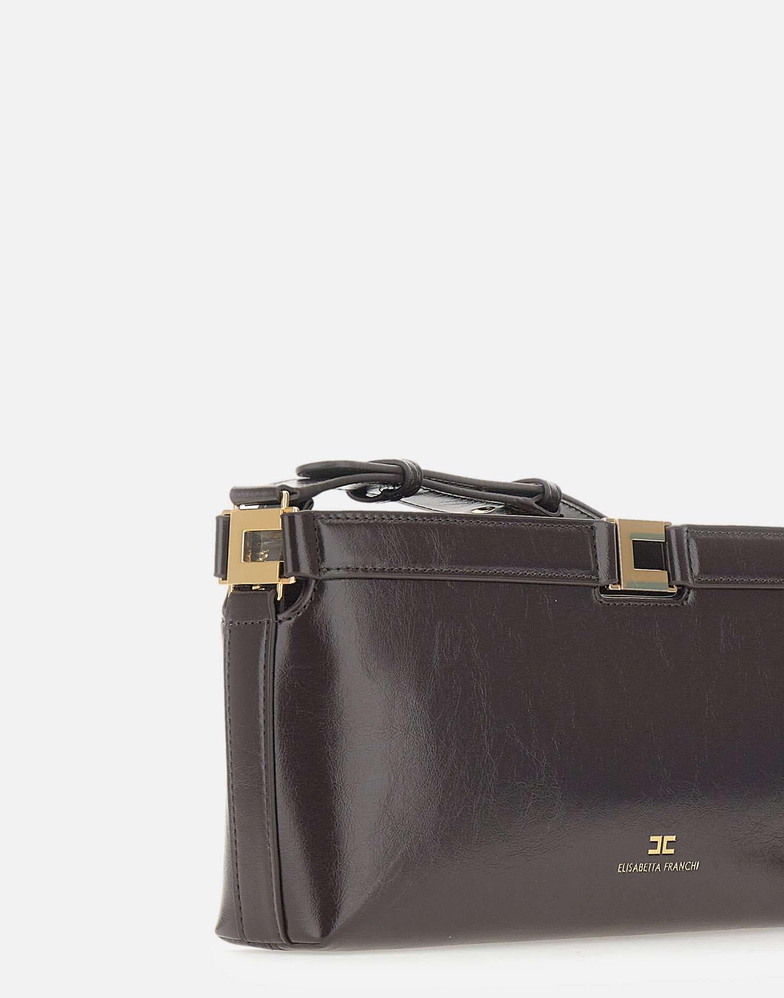 Borsa a spalla donna Elisabetta Franchi realizzata in materiale sintetitco con texture effetto naplak color marrone scuro, dal design essenziale e contemporaneo. La tracolla regolabile consente di indossarla a spalla o crossbody, mentre i dettagli in metallo dorato con logo impreziosiscono i lati con un accento distintivo. La chiusura superiore con zip e puller logato assicura praticità, e all’interno è presente una tasca con zip per organizzare l’essenziale. Dimensioni: 30x14x5 cm.