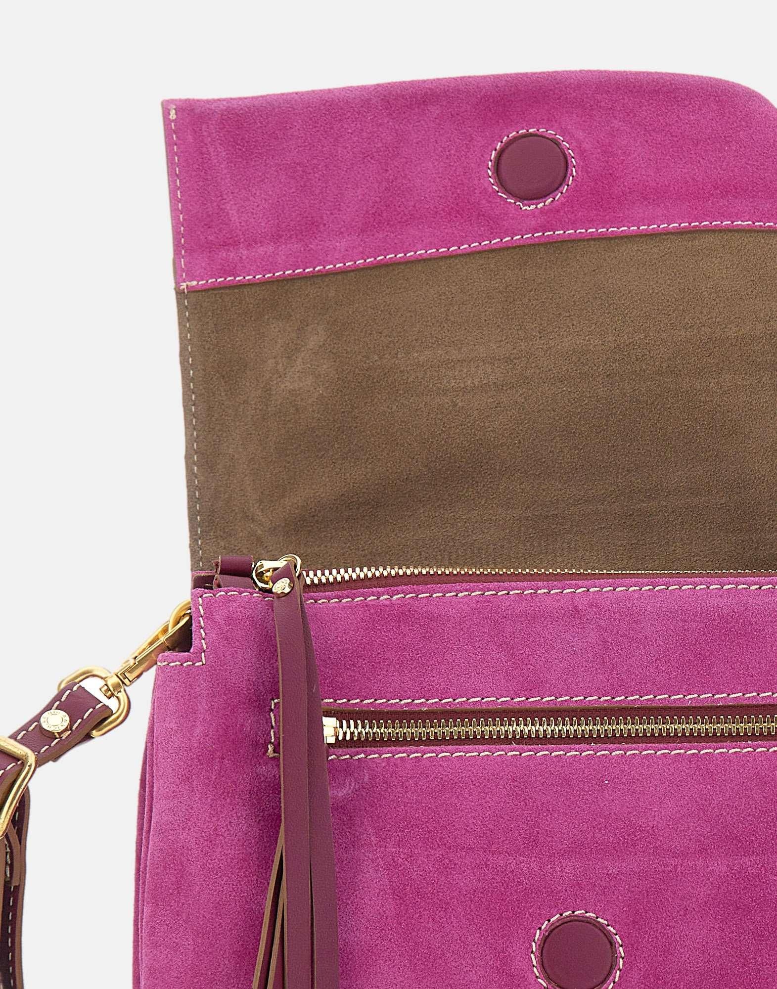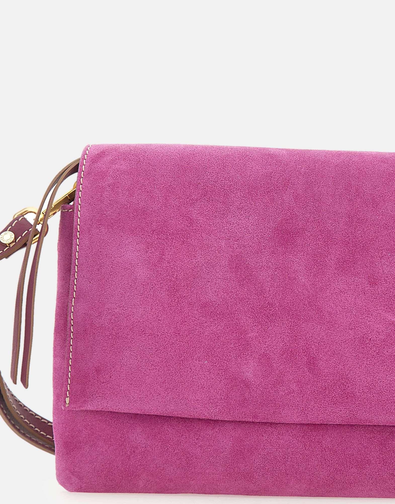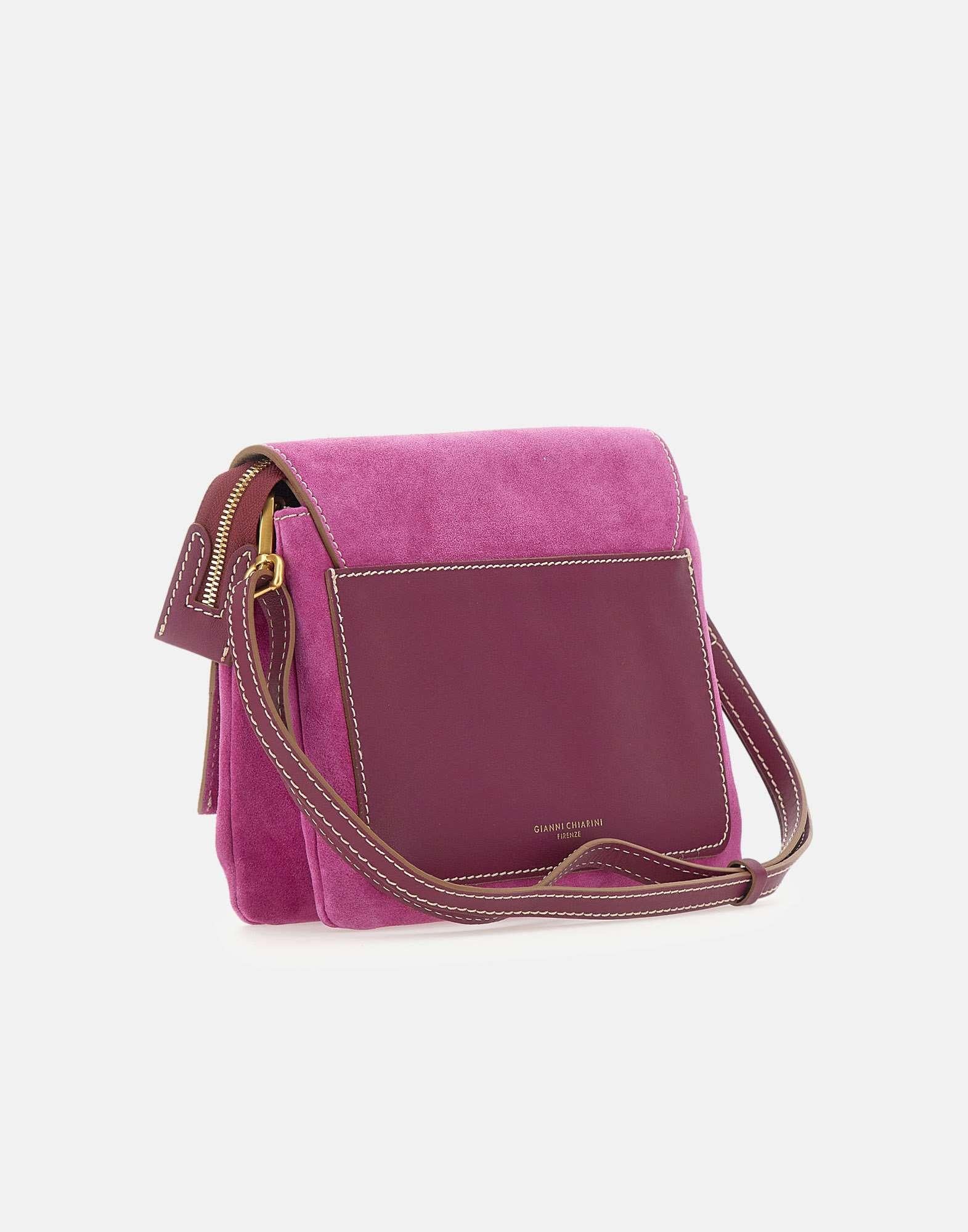 Borsa a tracolla donna Gianni Chiarini modello “Three” color fucsia, da portare a mano o con la sottile tracolla in pelle removibile e regolabile. Realizzata in pregiata pelle scamosciata, unisce un carattere giovane e divertente a un design innovativo, definito da zip a contrasto. La parte superiore e rifinita con patta e bottone magnetico, mentre l’interno e organizzato con doppio scomparto e una tasca interna con zip, ideale per tenere gli essenziali in ordine. Perfetta per outfit casual ma adatta anche a serate eleganti. Made in Italy. Dimensioni: 25x22x5 cm.
