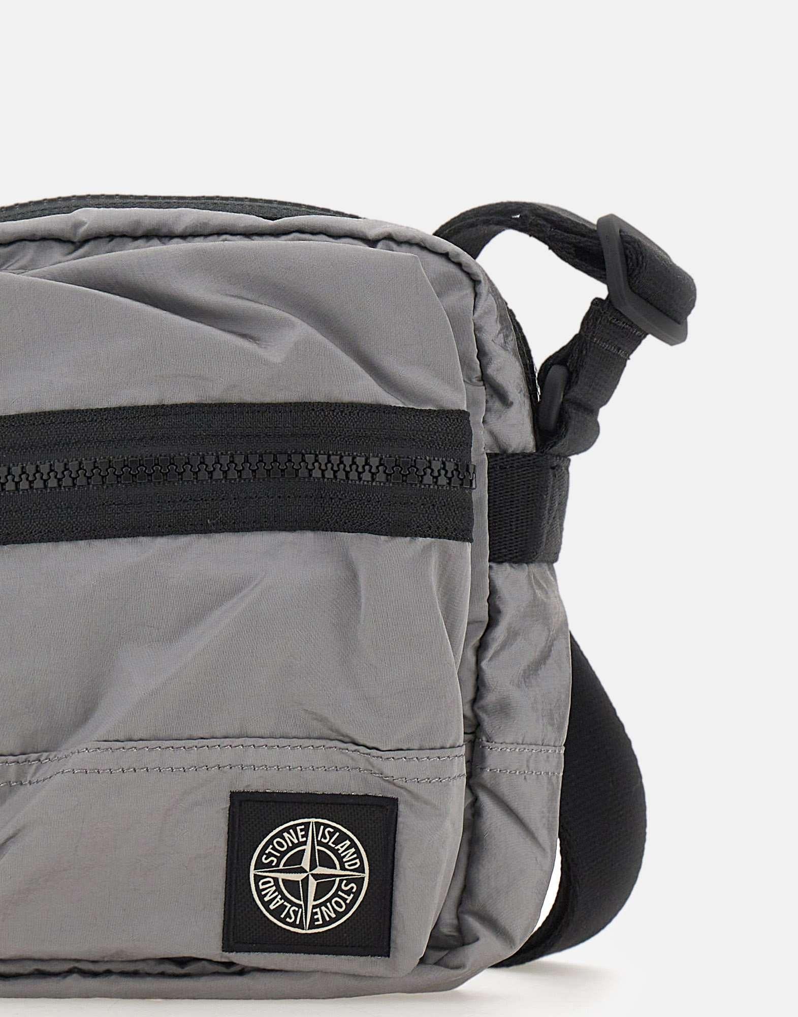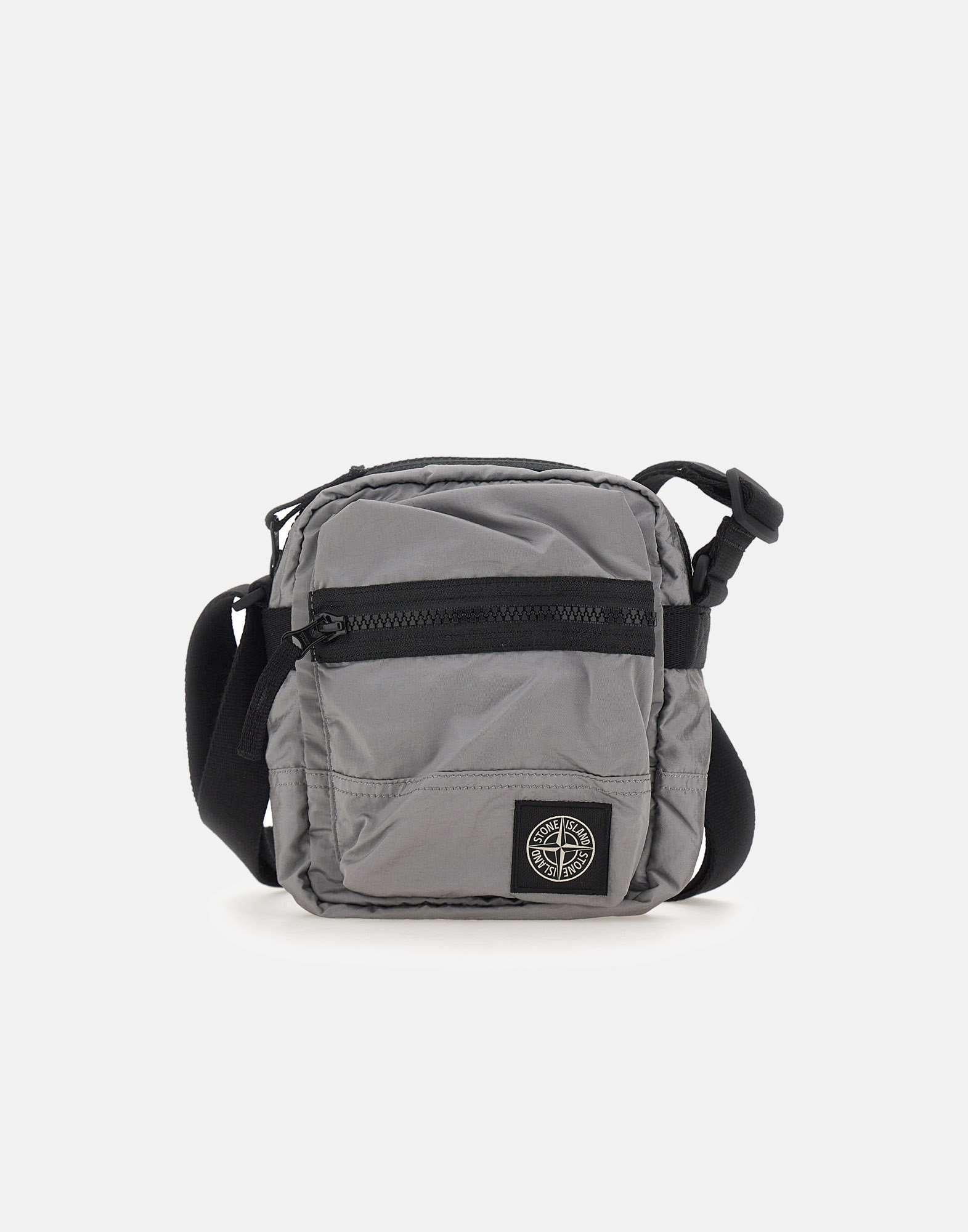 Borsa pochette uomo Stone Island in Nylon Metal grigio realizzato con filati rigenerati ECONYL e rivestimento in poliuretano, pensata per un uso quotidiano essenziale e tecnico. Lo scomparto principale con zip include una tasca interna con bottone automatico, ideale per organizzare gli oggetti personali. Sul fronte è presente una tasca con zip con patch logo Stone Island Compass a contrasto, mentre sul retro una tasca con patta fissa e bottone automatico completa la funzionalità. La tracolla regolabile in fettuccia di nylon color nero permette di indossarla a spalla o crossbody, per uno stile versatile e urbano. Dimensioni: 15x20x7 cm.