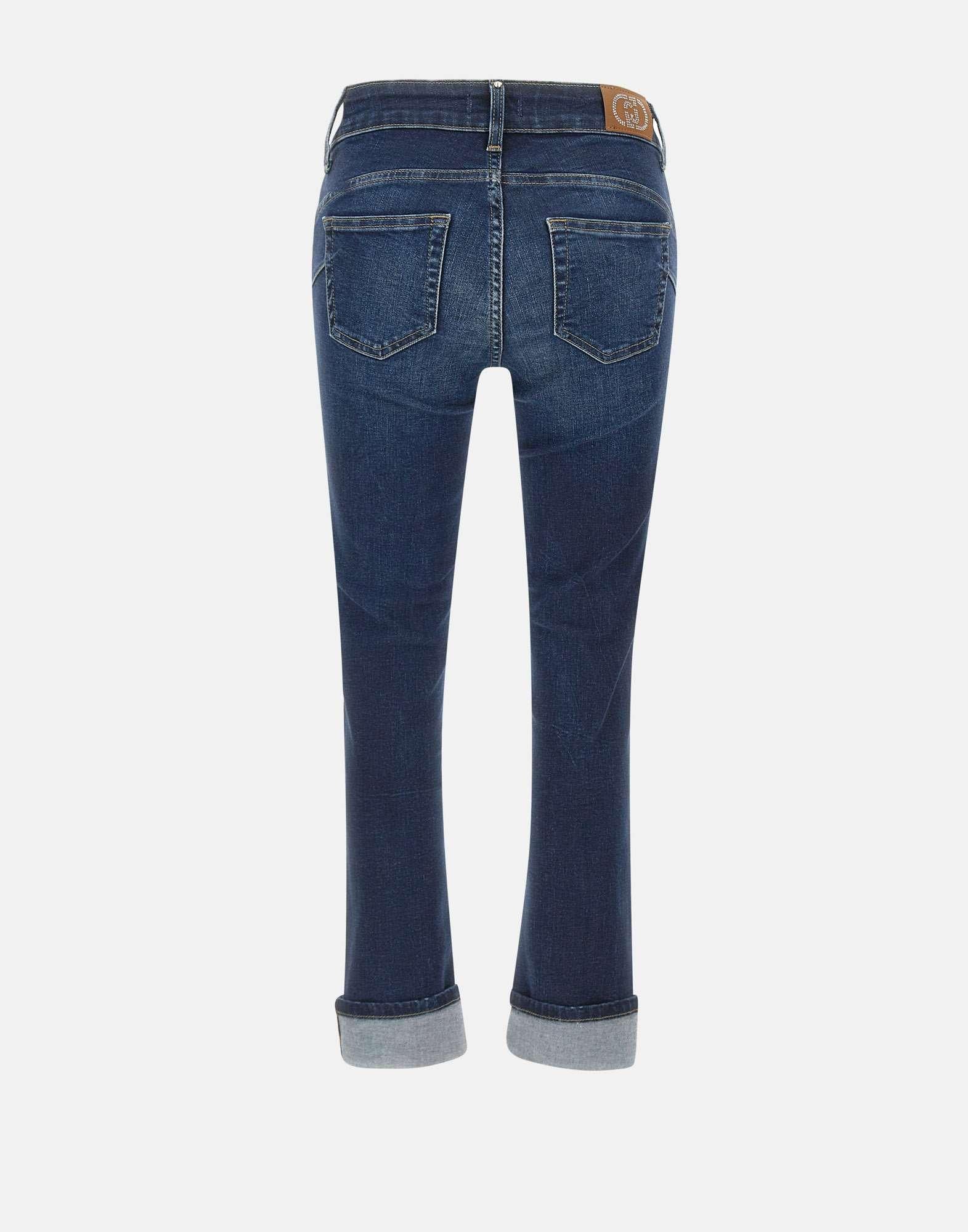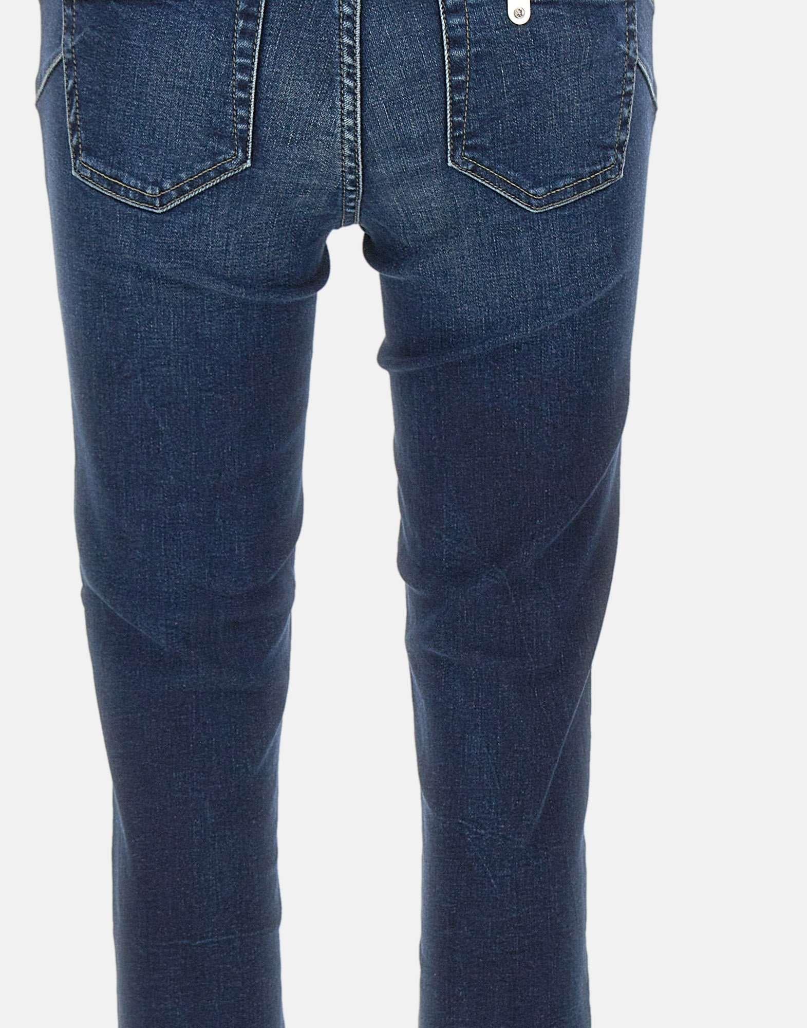 Jeans “Bottom Up Monroe” di Liu-Jo, lavaggio blu scuro, progettati per valorizzare la silhouette grazie agli innovativi tagli bottom up, che offrono un effetto push-up naturale e armonioso. Realizzati in denim di cotone stretch con aree sbiadite effetto used, sono perfetti per un look casual-chic e femminile. Caratterizzati da vita regolare (cavallo: 23 cm) e modello cinque tasche, presentano una gamba skinny con fondo da 16 cm e lunghezza gamba 72 cm, ideale per uno stile slanciato e contemporaneo.
