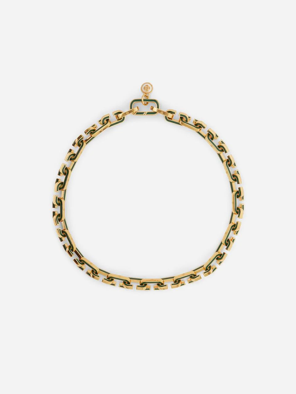 Collana “C Link Necklace” gold, realizzata in ottone placcato oro e smalto, con catena verde a maglie “C” dal design distintivo. Larticolo è fornito con scatola regalo, sacchetto per la polvere e libretto dettagliato del prodotto. Un gioiello moderno e raffinato, perfetto per aggiungere carattere a ogni look.
