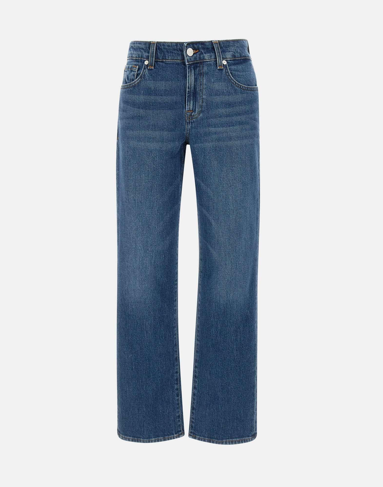 “Calie straight Artifact” jeans 7 For All Mankind , lavaggio classico blu scuro, modello cinque tasche, vita media con passanti per cintura, gamba dritta con fondo 21cm, chiusura con bottone logato e zip, patch logo in pelle sul retro,straight fit.Dimensioni: L 80 cm x P 74 cm (secondo la taglia 27).