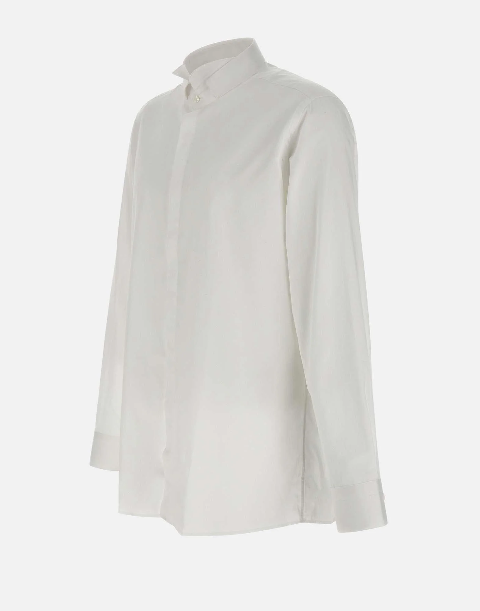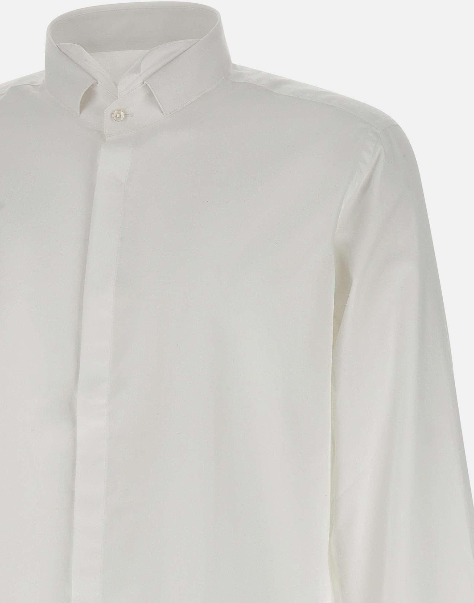 Camicia “Baray” uomo Carlo Pignatelli, colore bianco, in cotone, maniche lunghe, colletto diplomatico da cerimonia, polsini con bottoni doppio uso, chiusura frontale con bottoni nascosti, slim fit