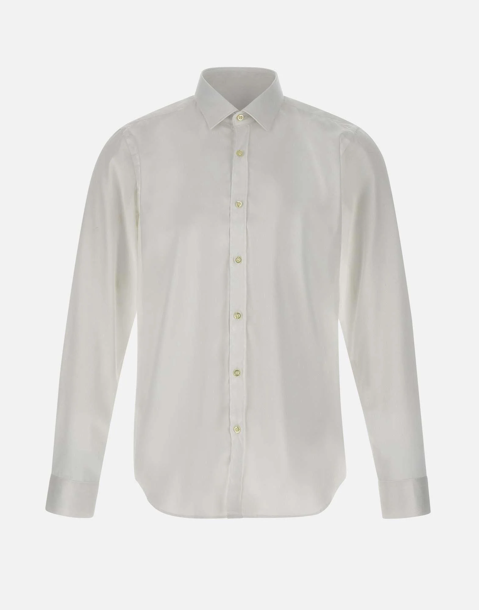 Camicia uomo Marchesani in cotone stretch super luminoso, colore bianco, maniche lunghe, collo classico, polsini con bottoni doppio uso, chiusura con bottoni effetto madreperla, slim fit.