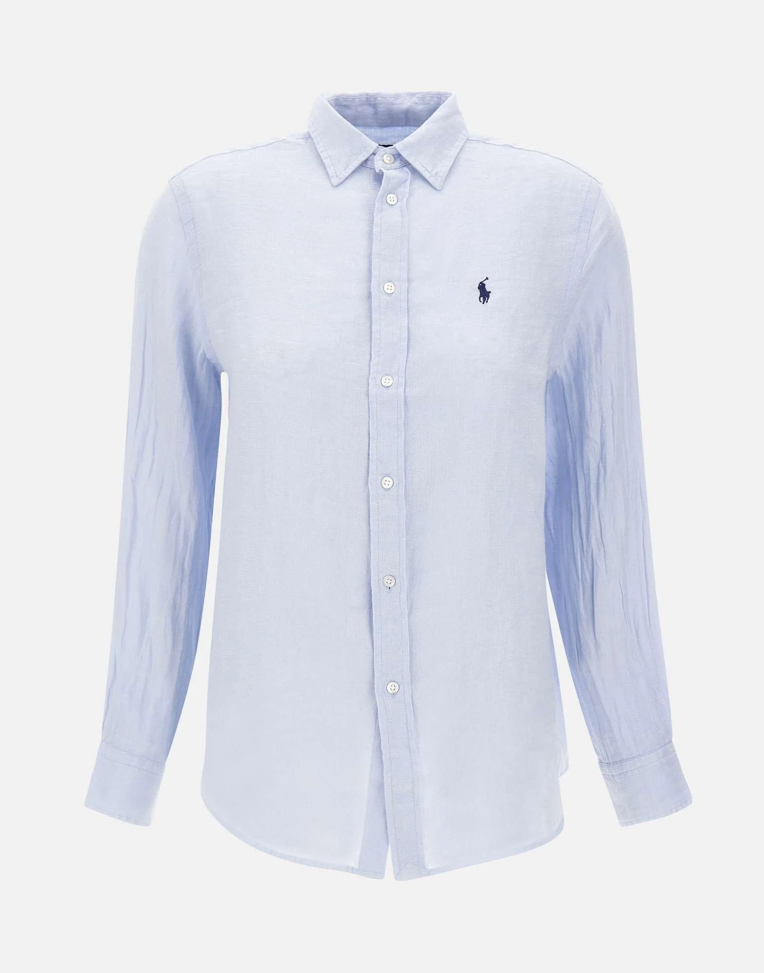 Camicia donna Polo Ralph Lauren realizzata in puro lino color azzurro, pensata per un look fresco e naturale. La vestibilità over è completata da orlo stondato, ideale per una linea morbida e versatile. Sul petto, lato sinistro, spicca l’iconico pony ricamato in blu navy, firma distintiva del brand. Polsini rifiniti con bottoni e carré con piega sul retro completano la costruzione con un tocco classico.