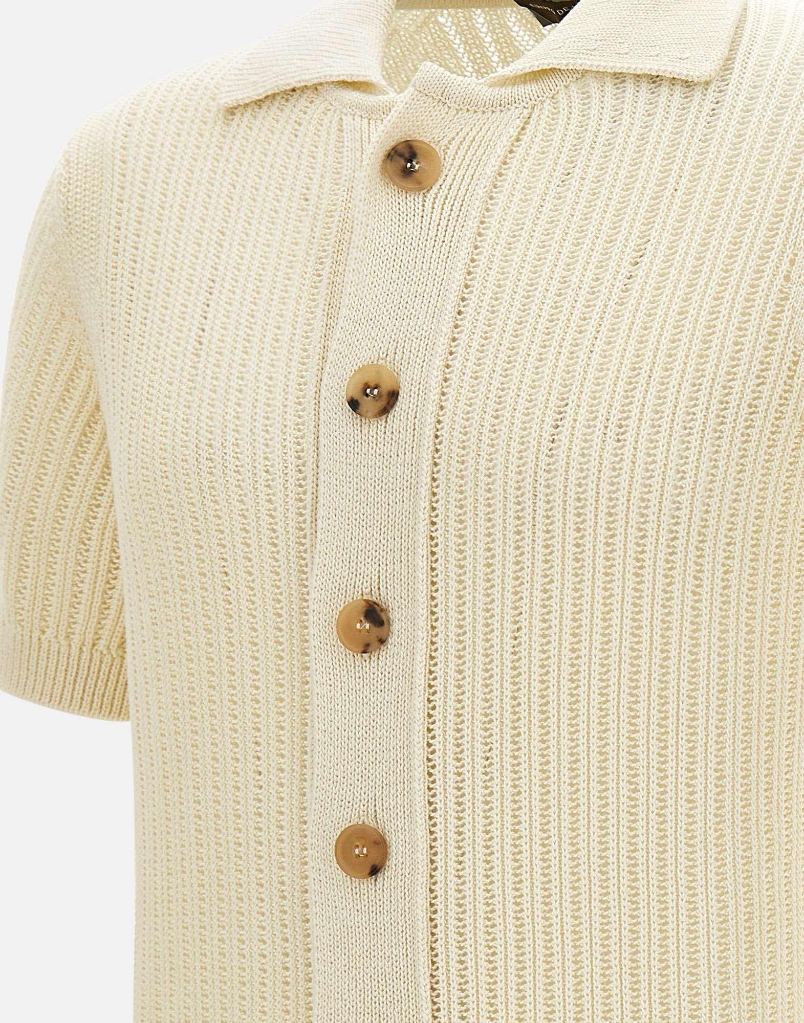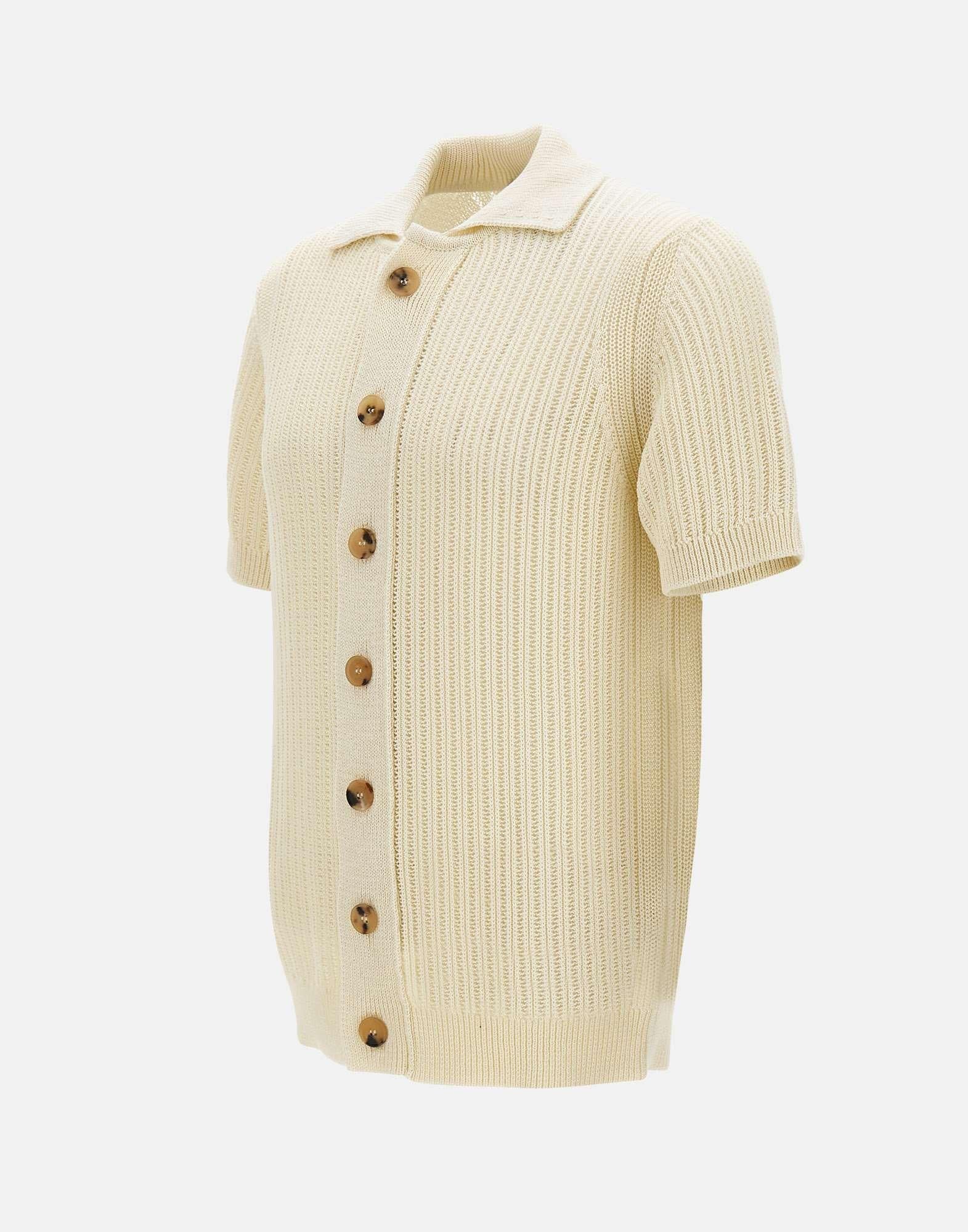 Camicia uomo Filippo De Laurentiis in maglia di cotone color panna, definita da una trama operata che dona profondità e carattere al design. Il modello presenta maniche corte, bordi a costine e chiusura frontale con bottoni a contrasto, per un tocco distintivo e contemporaneo. Il regular fit garantisce comfort e una linea equilibrata, ideale per look estivi curati e versatili. Un capo di maglieria uomo dalla costruzione precisa, interamente made in Italy.