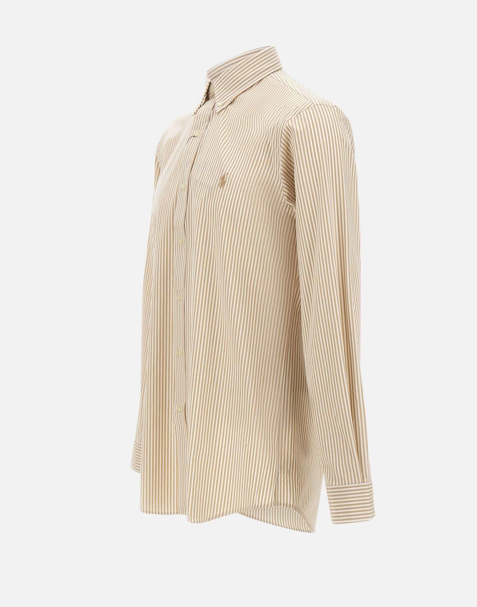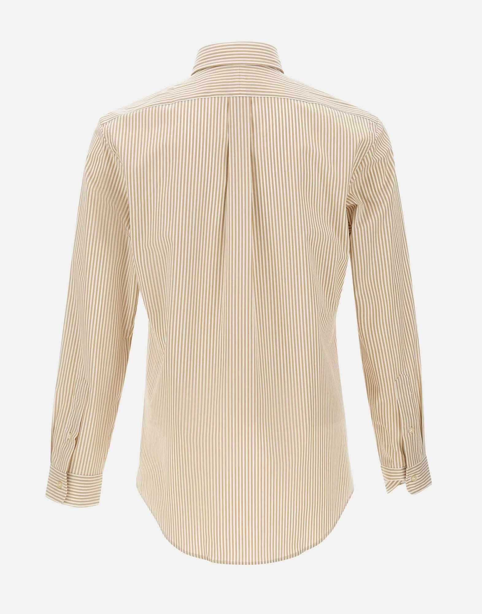 Camicia uomo Polo Ralph Lauren realizzata in popeline di cotone stretch a righe bianche e beige, pensata per offrire comfort e una linea pulita dal gusto classico. Il modello presenta silhouette sagomata custom-fit con collo a punta button-down, cannoncino con bottoni e maniche lunghe con polsini rifiniti da bottoni, dettagli che definiscono uno stile versatile per look casual e più curati. L’esclusivo pony ricamato sul lato sinistro del torace firma il capo, mentre il carré posteriore diviso con pieghe a cannoncino è studiato per una vestibilità confortevole e maggiore libertà di movimento.