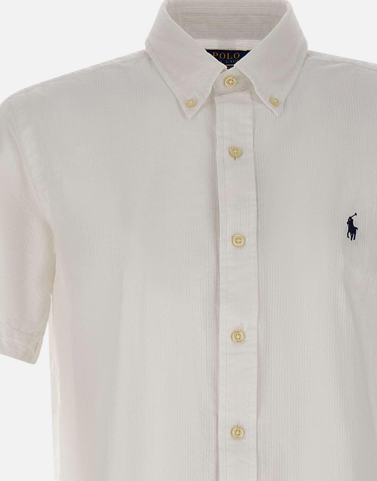 Camicia uomo Polo Ralph Lauren realizzata in seersucker di cotone color bianco, un classico estivo dal gusto intramontabile. Il modello presenta colletto button-down e iconico pony ricamato in blu sul petto, dettaglio distintivo del brand. La costruzione include maniche corte, cannoncino con bottoni e carré posteriore con pieghe a cannoncino, pensati per garantire una vestibilità confortevole e una maggiore libertà di movimento. Il taglio custom-fit aderente in vita definisce la silhouette, ideale per look casual curati e abbinamenti contemporanei.
