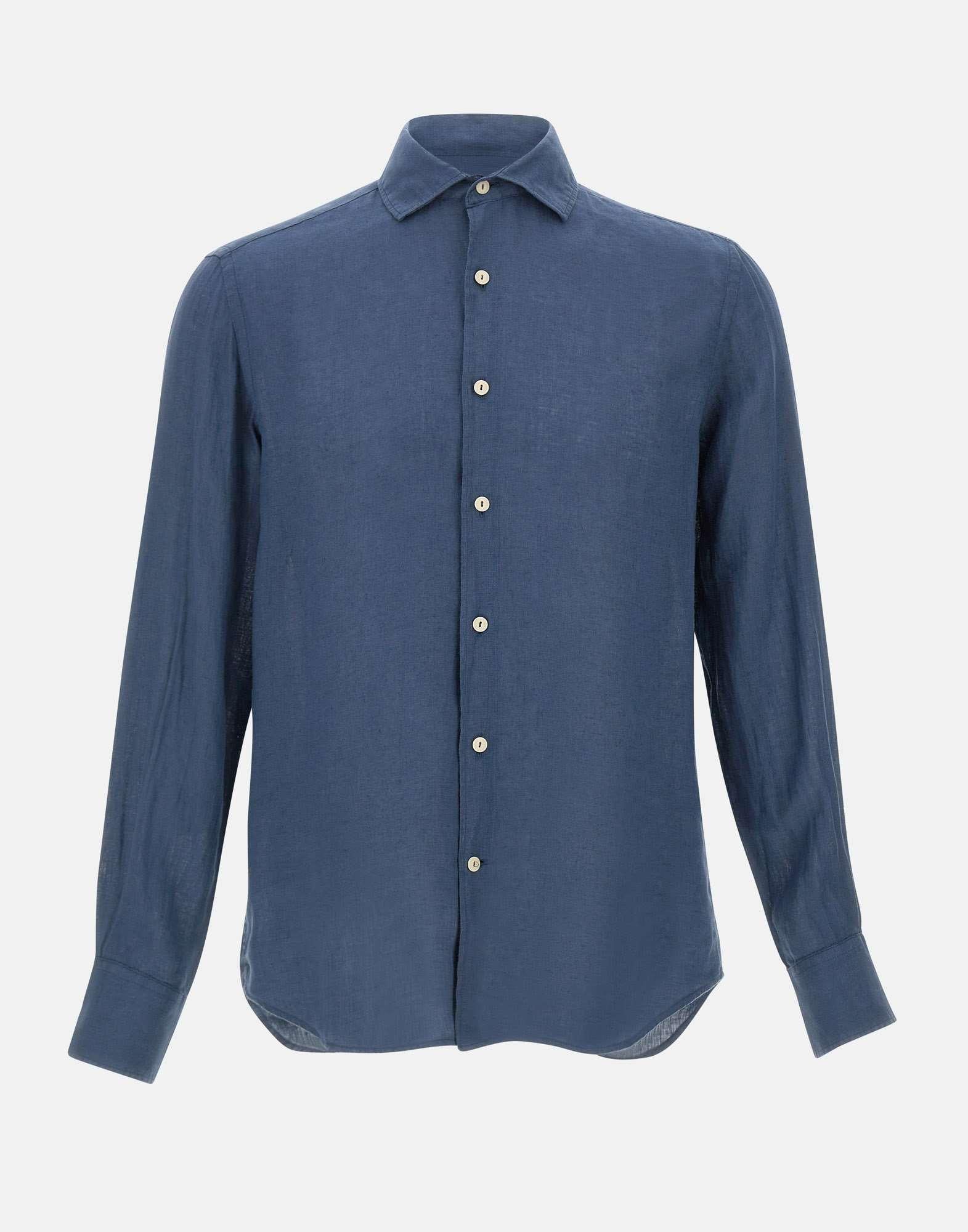 Camicia uomo MC2 Saint Barth “Pamplona” in lino color blu, un classico del brand e un essenziale del guardaroba estivo uomo. Il modello presenta colletto alla francese, chiusura frontale con bottoni e maniche lunghe con polsini a bottoni doppio uso, pensati per una vestibilità pratica e curata. Leggera, traspirante e particolarmente comoda da indossare, offre una vestibilità regular fit ideale per look casual e smart casual, con uno stile senza tempo adatto a molte occasioni. Made in Italy.