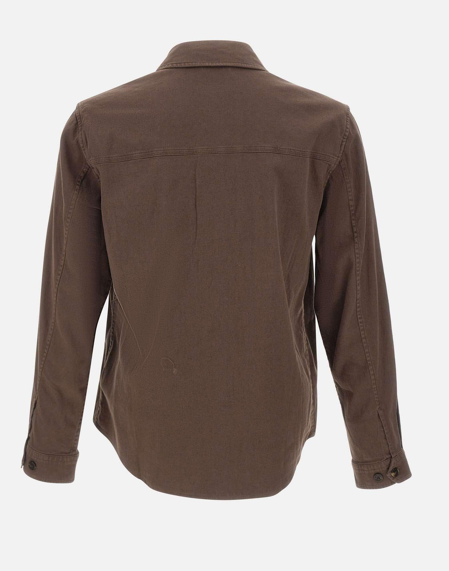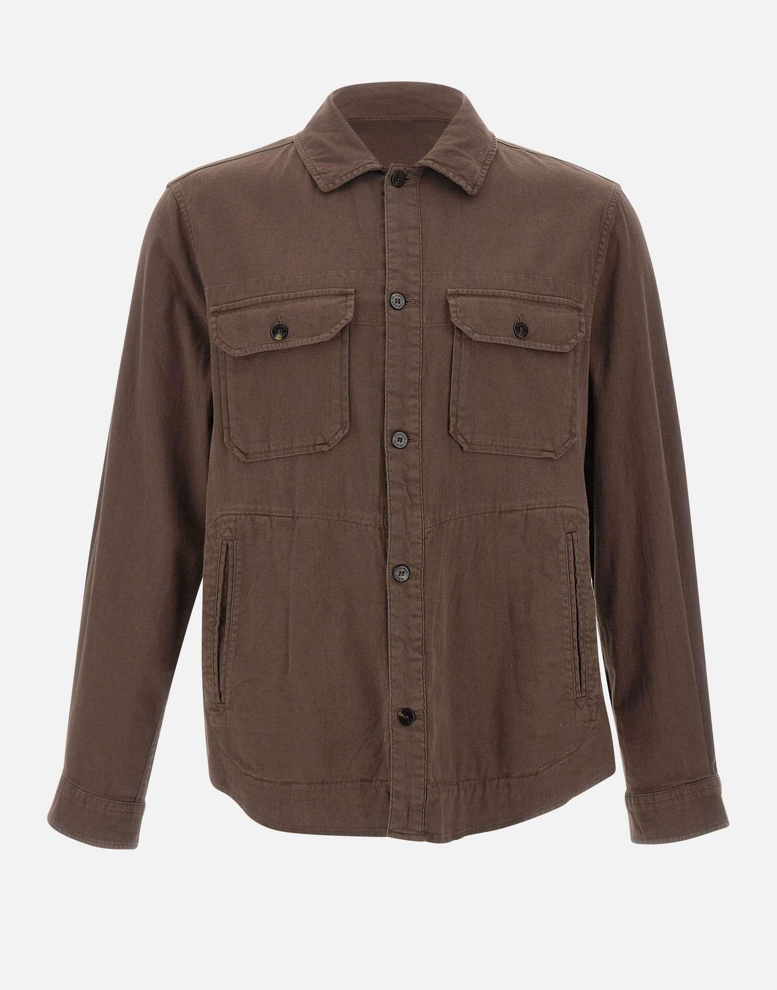 Camicia uomo Woolrich modello overshirt Safari realizzata in misto cotone e lino elasticizzati color marrone, tinta in capo per una finitura unica. Pensata per un uso quotidiano pratico durante la mezza stagione, questa overshirt combina stile essenziale e funzionalità. Il colletto a camicia con linguetta logata e la chiusura con bottoni richiamano un’estetica Safari pulita, mentre i polsini regolabili permettono di personalizzare la vestibilità. Completano il design le tasche funzionali, due laterali a filetto e due taschini con patta e bottone sul petto. La vestibilità regular fit rende questa camicia overshirt un capo versatile da indossare come camicia o come giacca leggera, ideale per look casual e contemporanei.