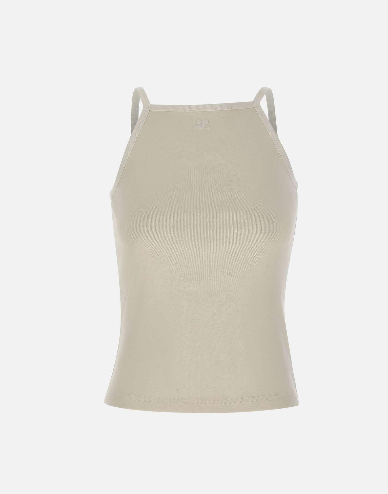 Canotta donna Courrèges “Contrast Tank Top” realizzata in cotone color bianco, caratterizzata da bordi a costine. Il modello presenta scollo a vogatore e una linea essenziale, completata dal logo ricamato sul petto come dettaglio iconico del brand. La vestibilità regolare garantisce comfort e versatilità, rendendola ideale per look casual e contemporanei.
