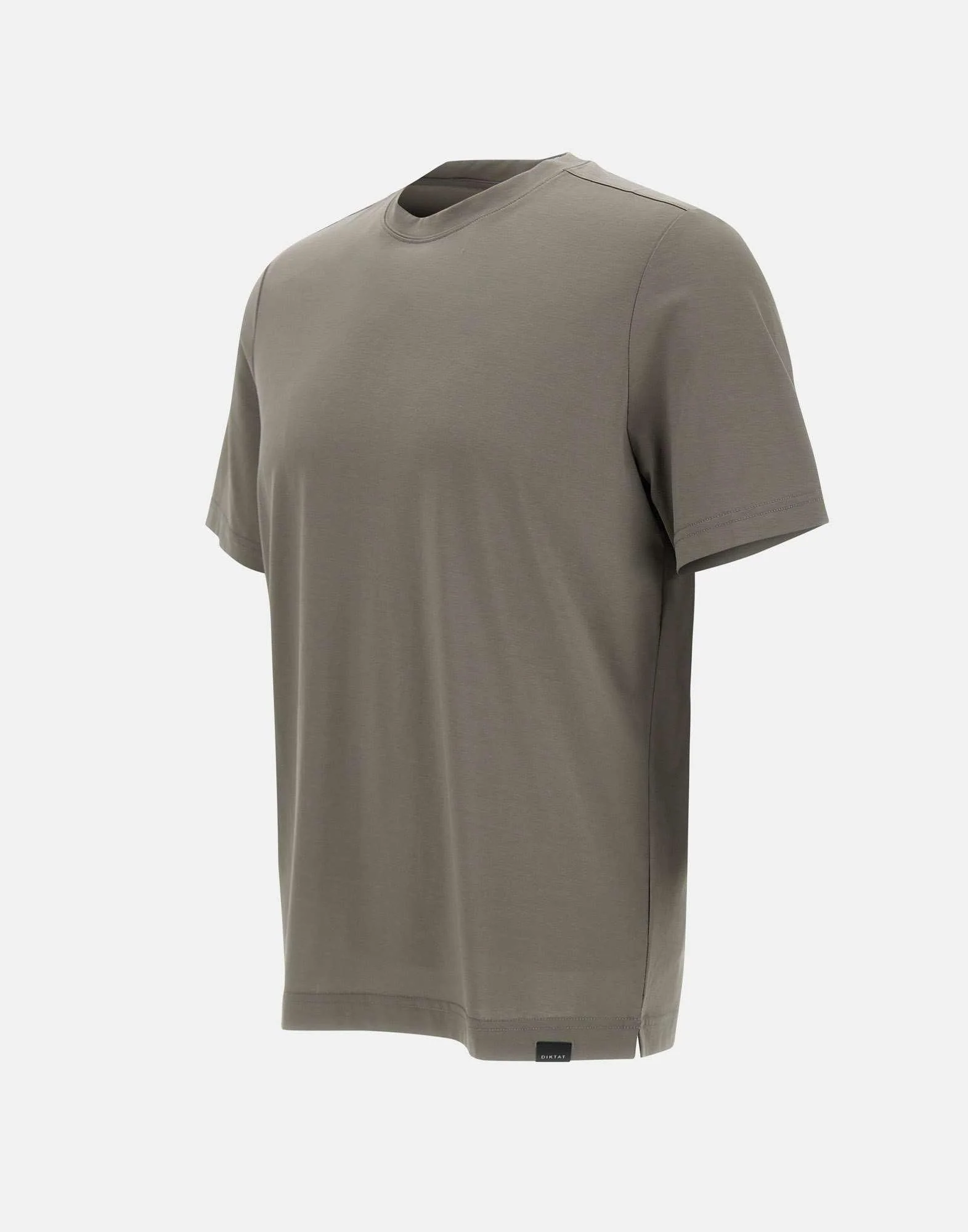 “Cotton nylon tech” t-shirt uomo Diktat, tortora, tessuto misto cotone, maniche corte, girocollo, spacchetti laterali al fondo, mini logo, regular fit