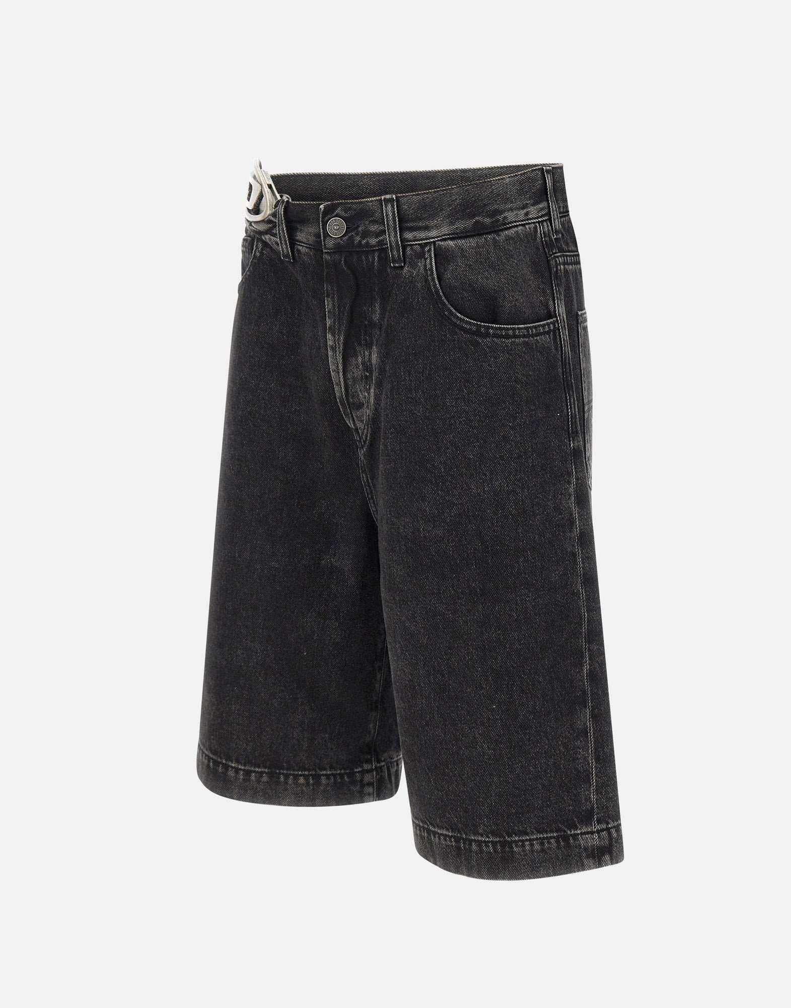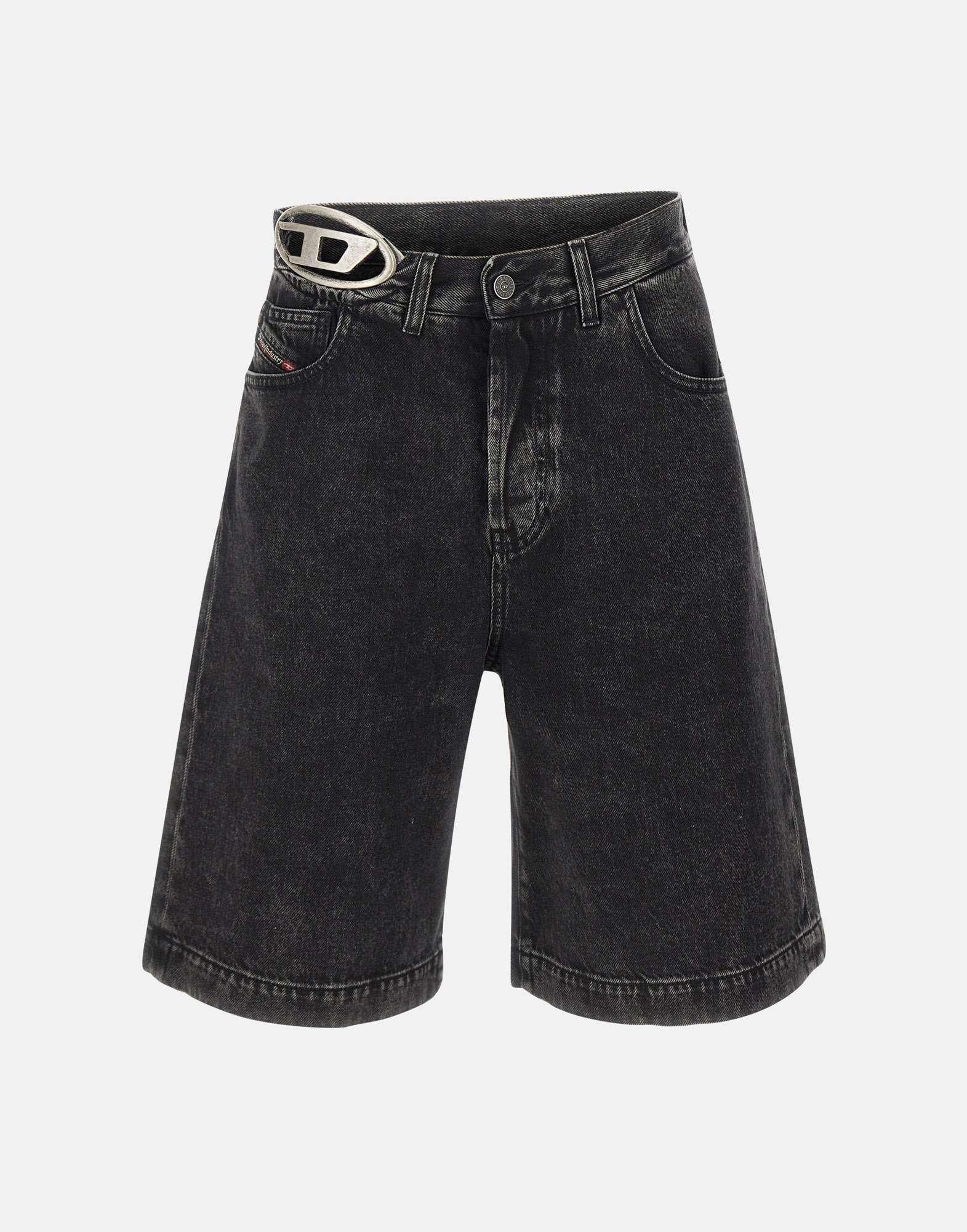 Shorts donna Diesel “De-Sire-Short-S2” in denim di misto cotone nero. Modello a cinque tasche con patch logo in pelle sul retro e placca metallica Oval D applicata sulla cintura. Chiusura frontale con bottoni. Caratterizzati da vita alta, vestibilità relaxed e lunghezza al ginocchio, rappresentano la fusione perfetta tra stile urbano e spirito contemporaneo.