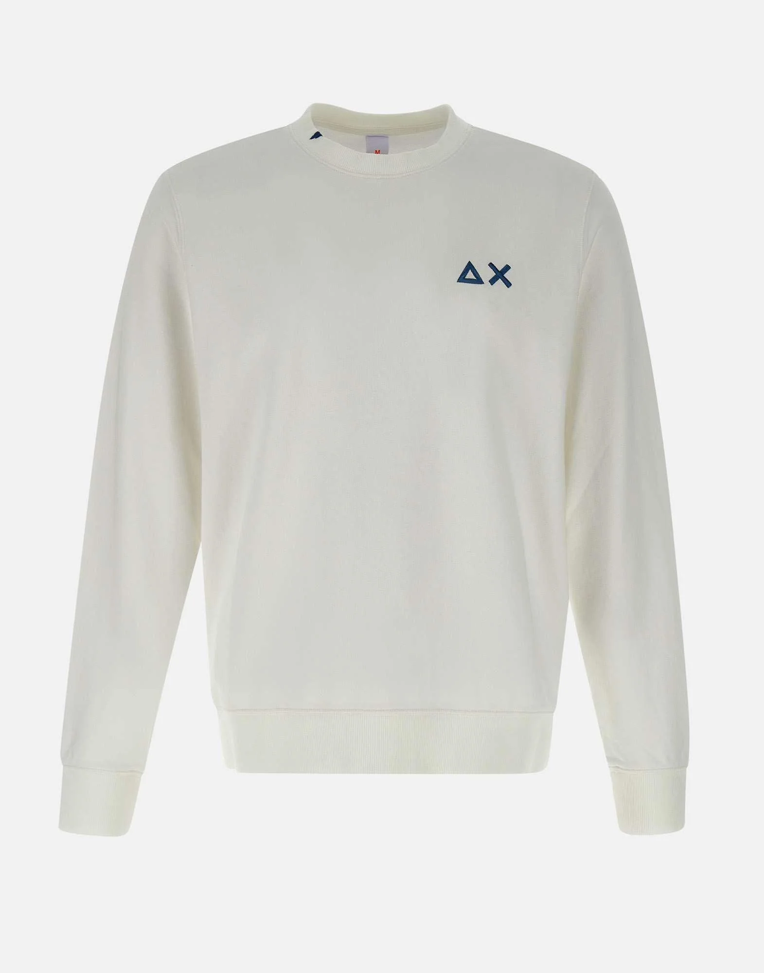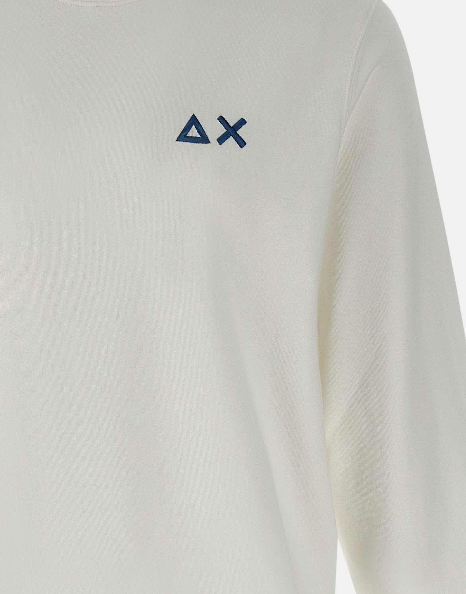 Felpa “Basic fleece” uomo Sun68, colore bianco, misto cotone, maniche lunghe, girocollo, logo ricamato sul petto, bordi a costine, interno garzato, regular fit