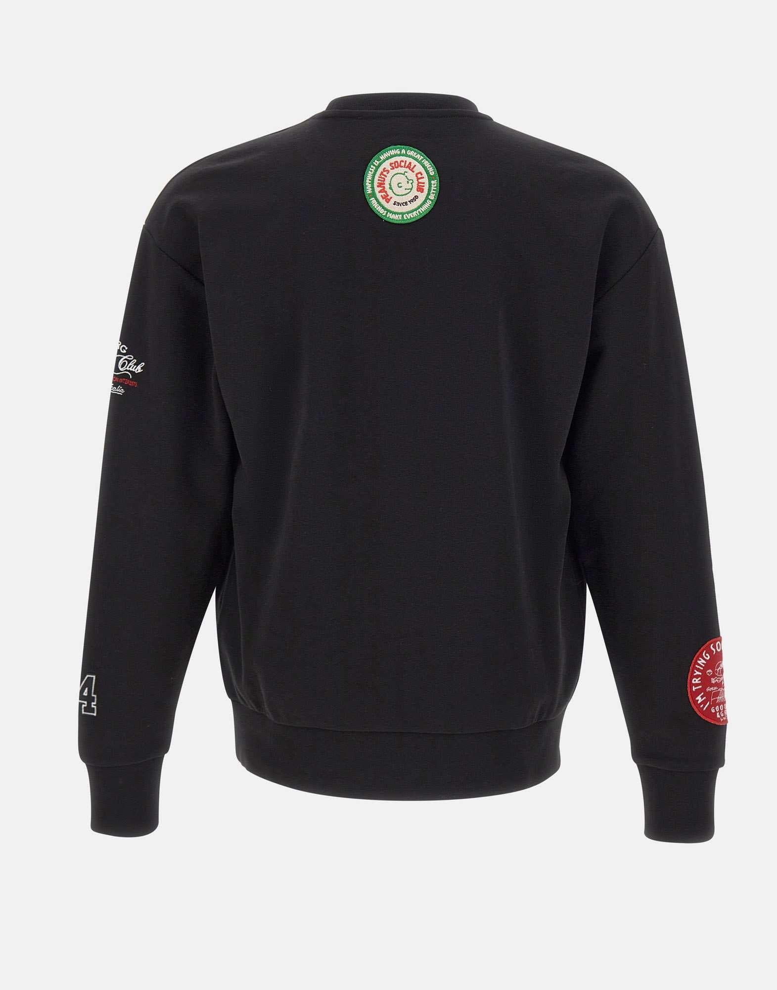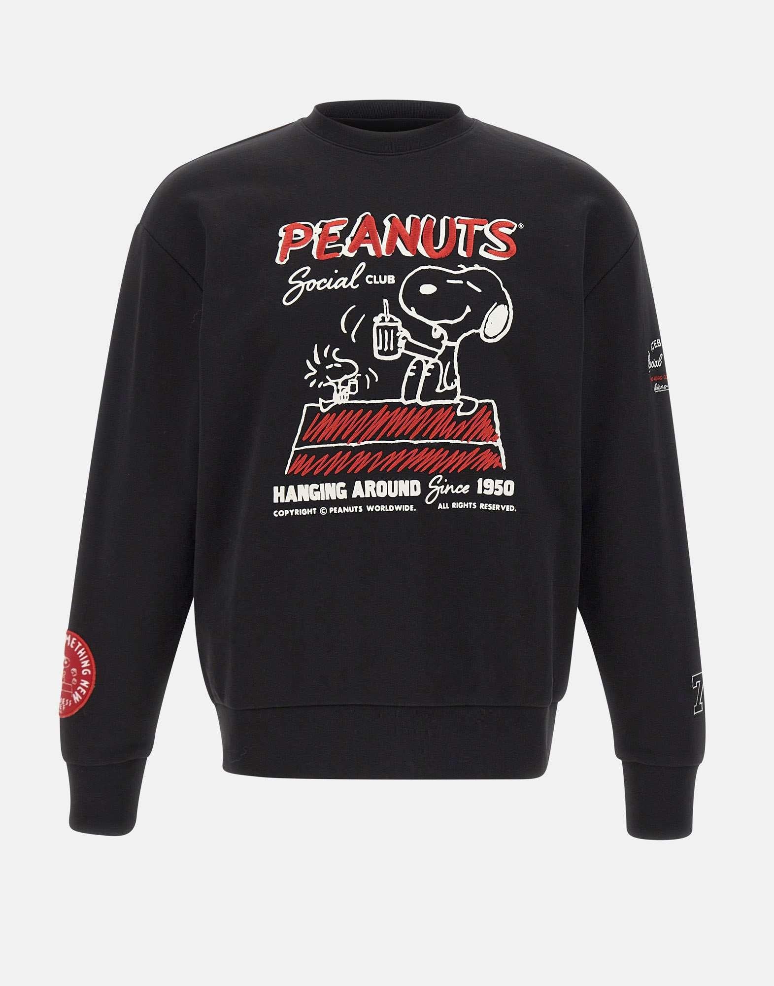 Felpa uomo Iceberg realizzata in cotone felpato color nero, pensata per un casual contemporaneo dal carattere deciso. Il capo è caratterizzato da stampe e ricami cartoon con disegni Peanuts in rosso e bianco, distribuiti su davanti, retro e maniche, che introducono un accento iconico e immediatamente riconoscibile. Il modello presenta girocollo e vestibilità regular, con collo, polsi e fondo a costine che definiscono una linea pulita e confortevole. Una felpa uomo dal forte impatto visivo, ideale per look quotidiani con personalità.