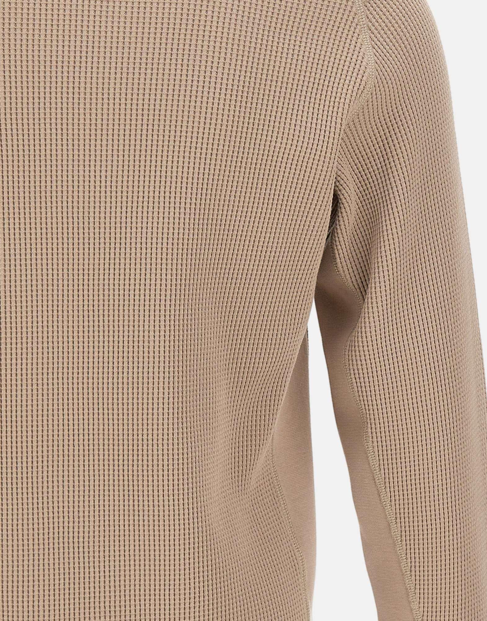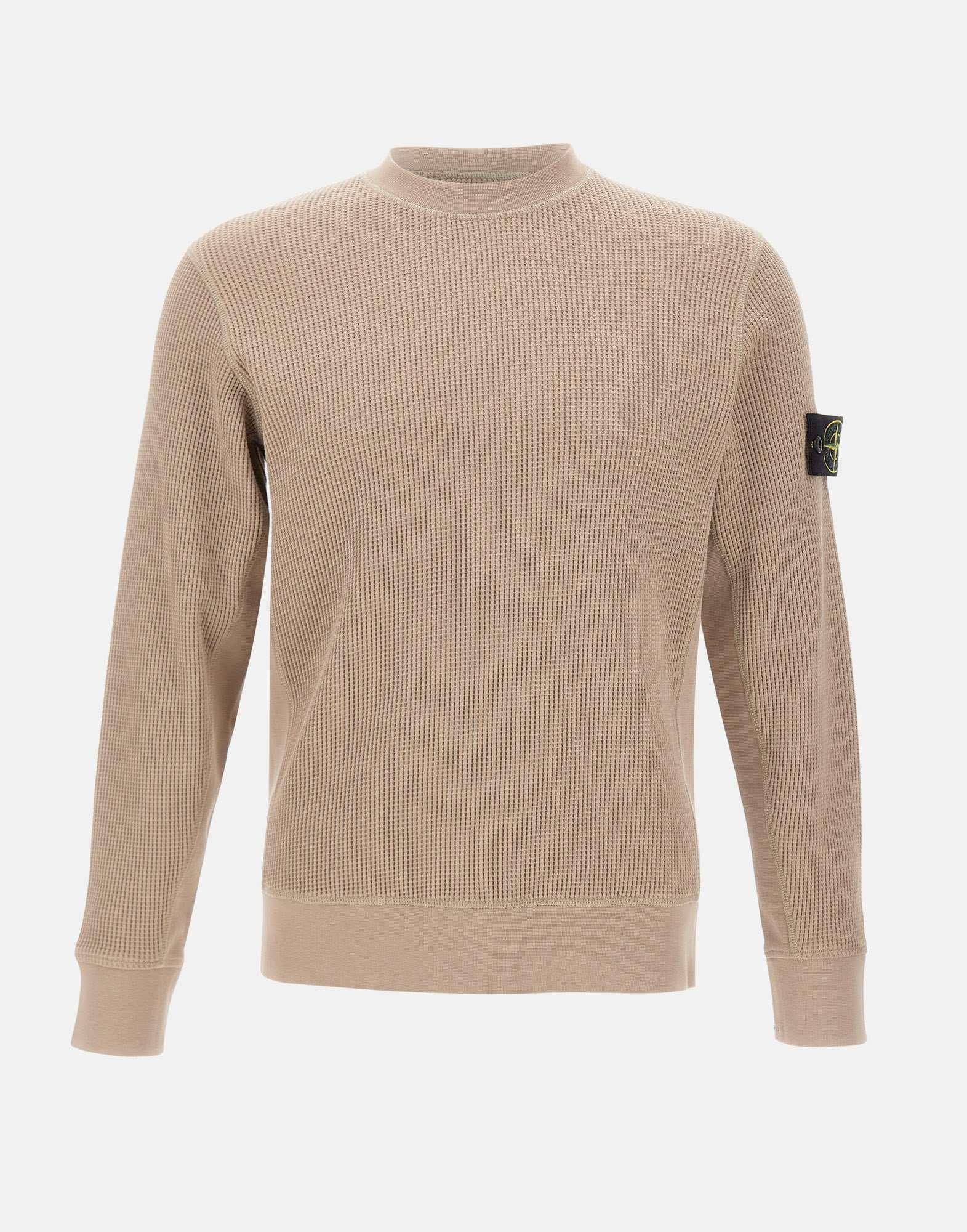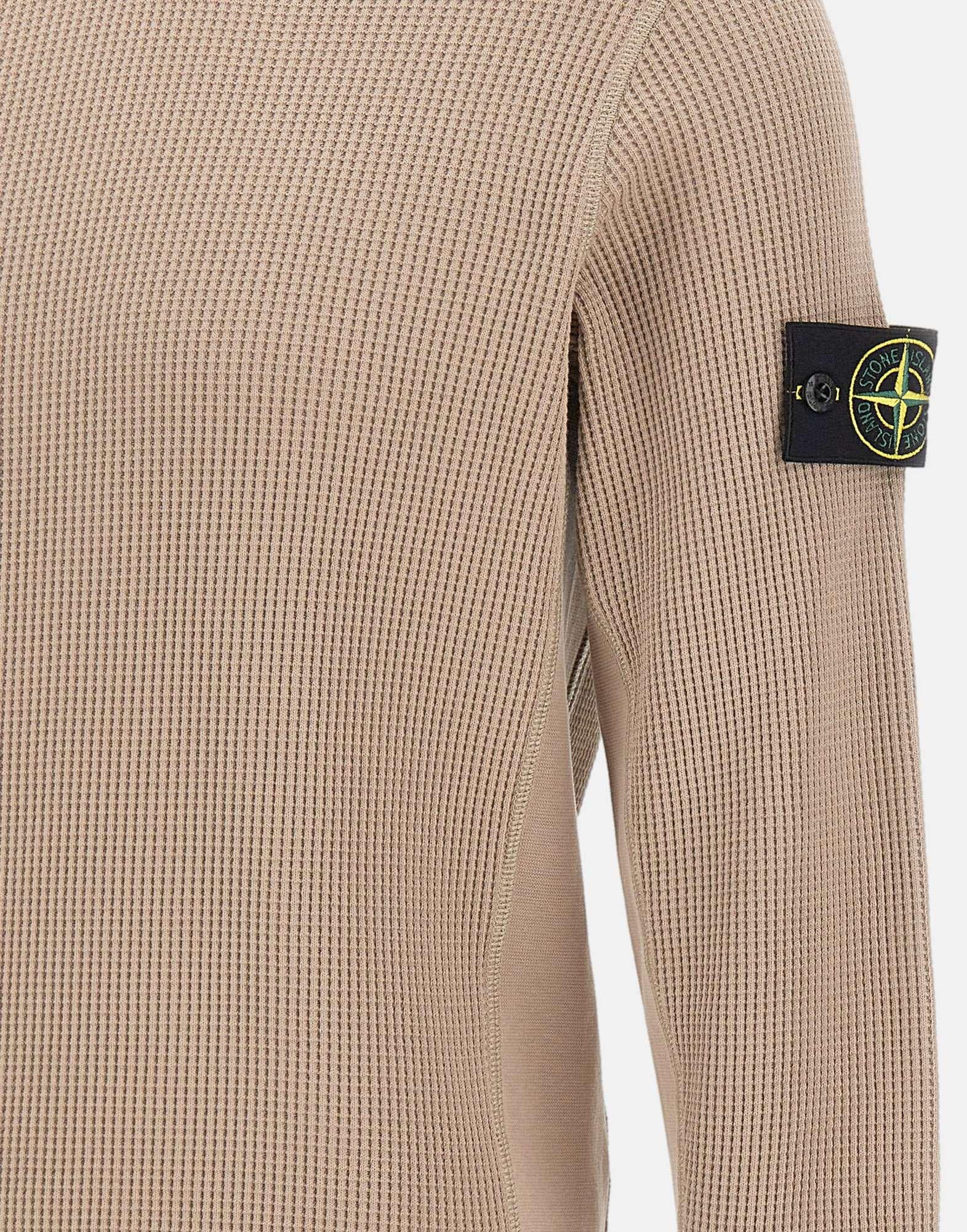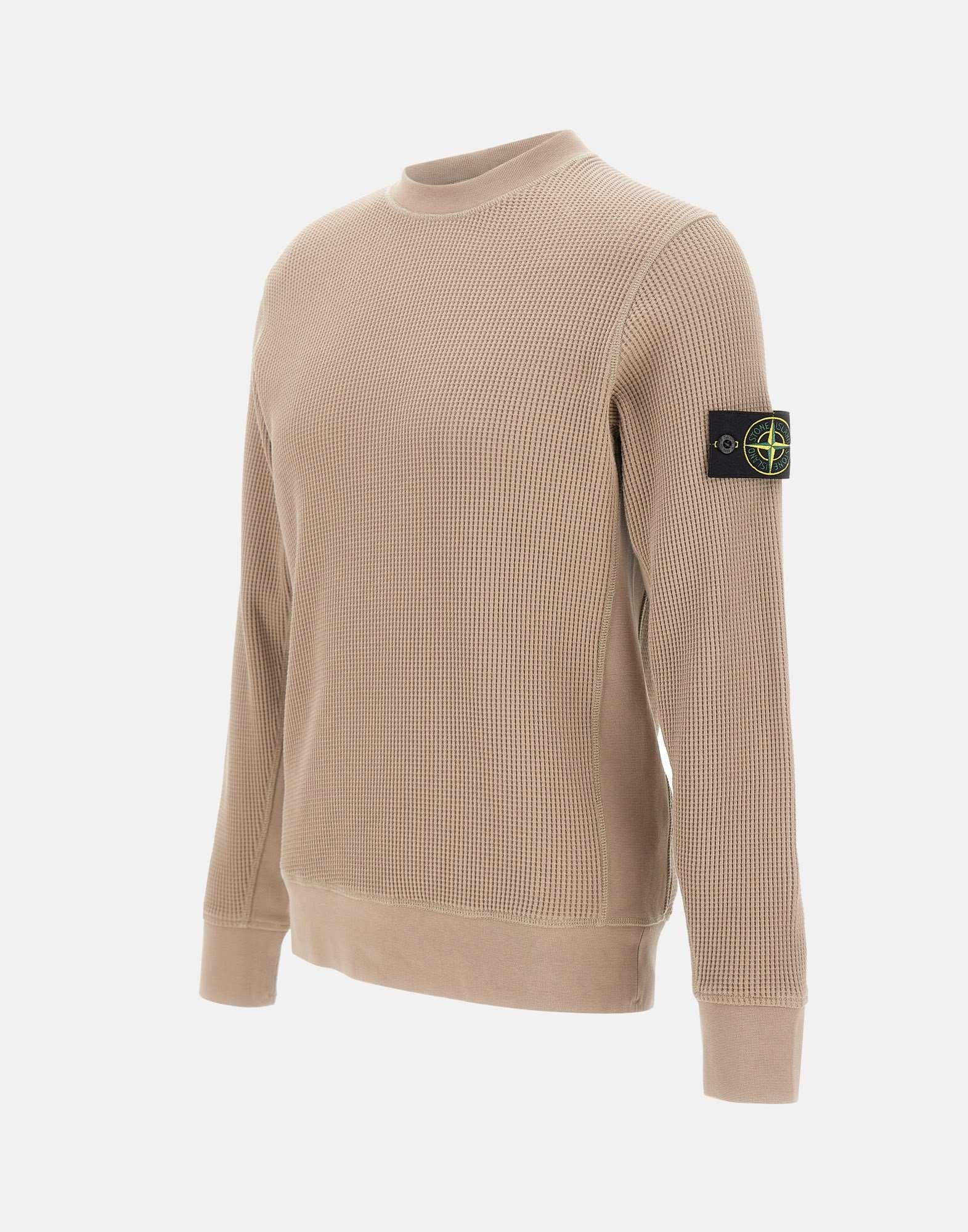 Felpa uomo Stone Island in cotone biologico a nido d’ape color beige, modello a girocollo dal design tecnico e contemporaneo. La costruzione è valorizzata da maniche raglan sul retro, inserti a costine laterali e sul sottomanica e cuciture overlock che definiscono i dettagli con un look pulito e funzionale. Rifinita da bordi a costine, offre una pesantezza elevata ideale per la stagione fredda e per il layering. Badge Stone Island applicato sulla manica sinistra. Vestibilità regular.