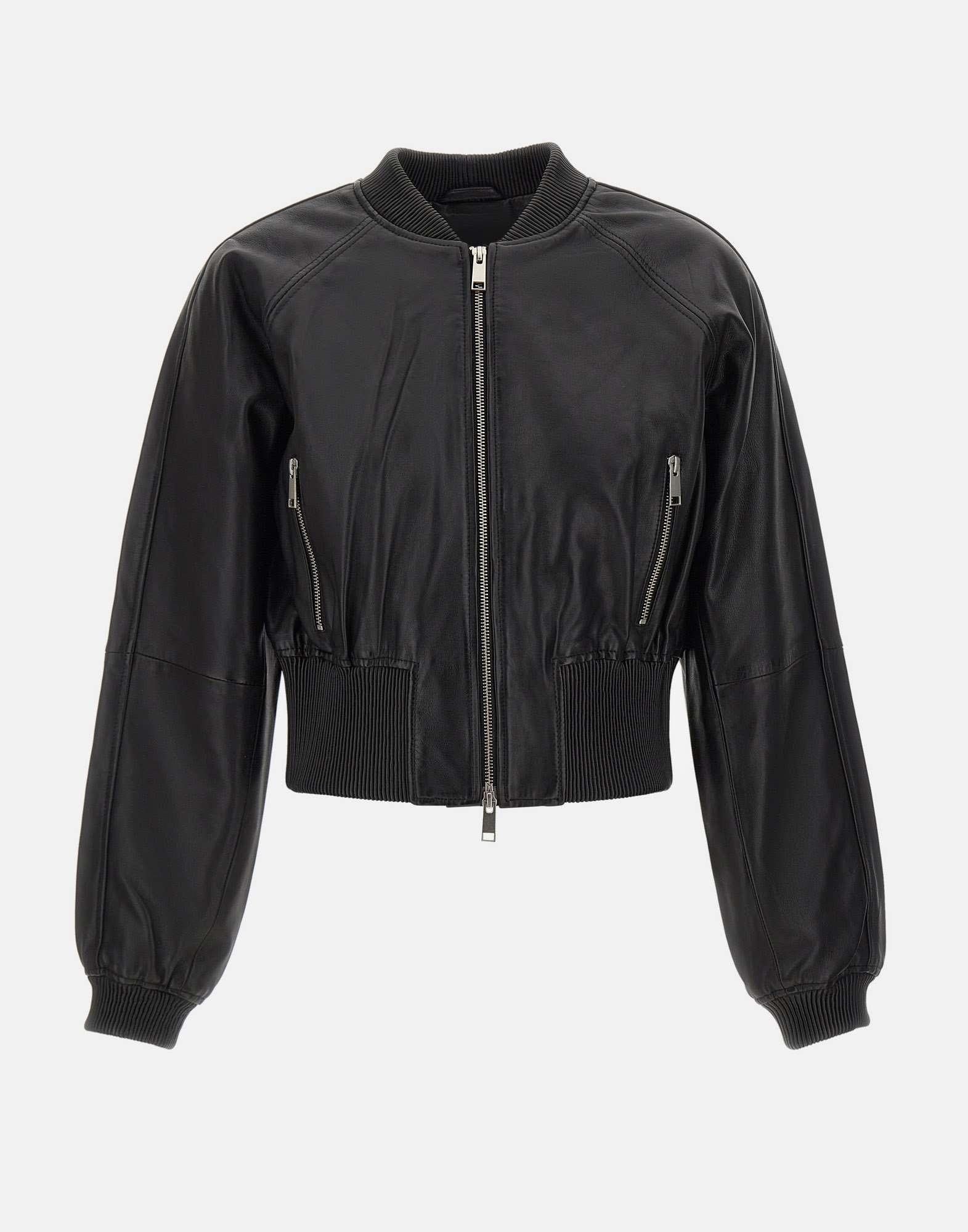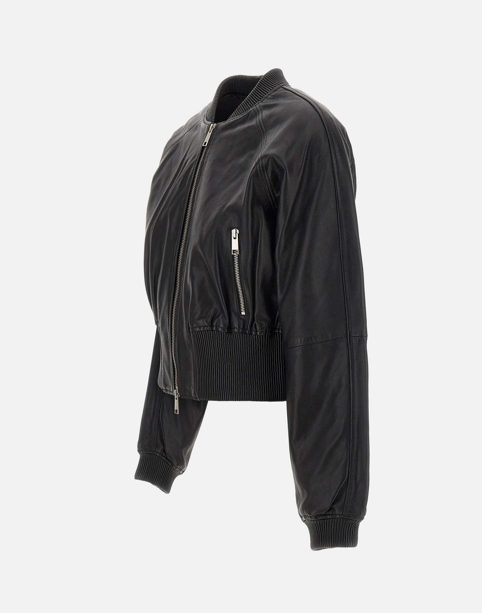 Giacca di pelle donna Herskind “Dario” color nero, interpretazione contemporanea del classico bomber in chiave essenziale e decisa. Il modello presenta colletto, fondo e polsini elasticizzati che definiscono la silhouette, mentre la chiusura con zip a doppio cursore e le tasche laterali con zip aggiungono funzionalità e carattere al design. Il taglio corto valorizza la linea con un’attitudine moderna e versatile. Vestibilità regolare.