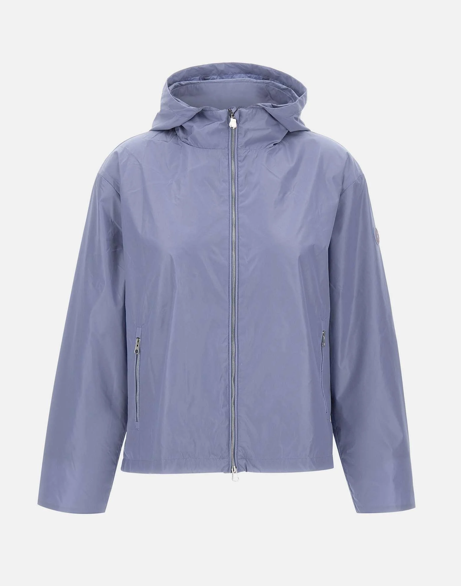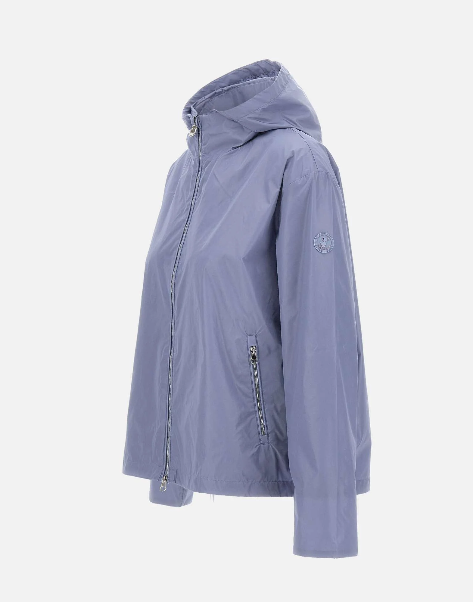 Giacca donna Save The Duck “Hope” color celeste, antivento e impermeabile, ideale per la stagione primaverile. Realizzata in nylon brillante con fodera tono su tono, presenta cappuccio fisso, chiusura con zip centrale e due tasche frontali con zip per una funzionalita essenziale. I tirazip logati aggiungono un dettaglio distintivo, mentre il fondo regolabile con coulisse consente di personalizzare la linea. La vestibilità regolare garantisce comfort e versatilità, completata dal patch logo in gomma tono su tono sulla manica sinistra per un tocco discreto e contemporaneo.