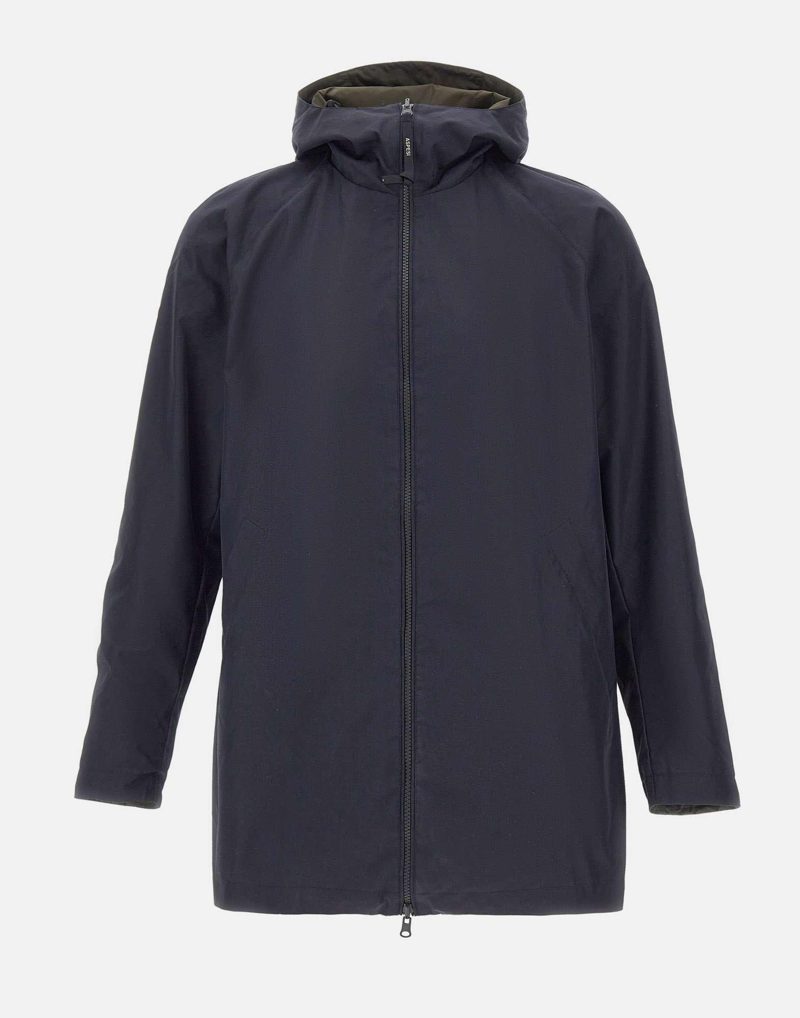 Giubbotto uomo Aspesi modello reversibile realizzato in twill di cotone-poliammide color blu navy, foderato in nylon color verde militare per una doppia interpretazione di stile e funzionalità. Questo giubbotto presenta chiusura con zip a doppio cursore, cappuccio fisso con coulisse e due tasche a filetto esterne per una linea essenziale e pratica. Sul lato interno sono presenti due tasche con zip, ideali per custodire gli oggetti in sicurezza. La vestibilità regolare assicura comfort e versatilità, perfetto per look urban e contemporanei in chiave luxury casual.