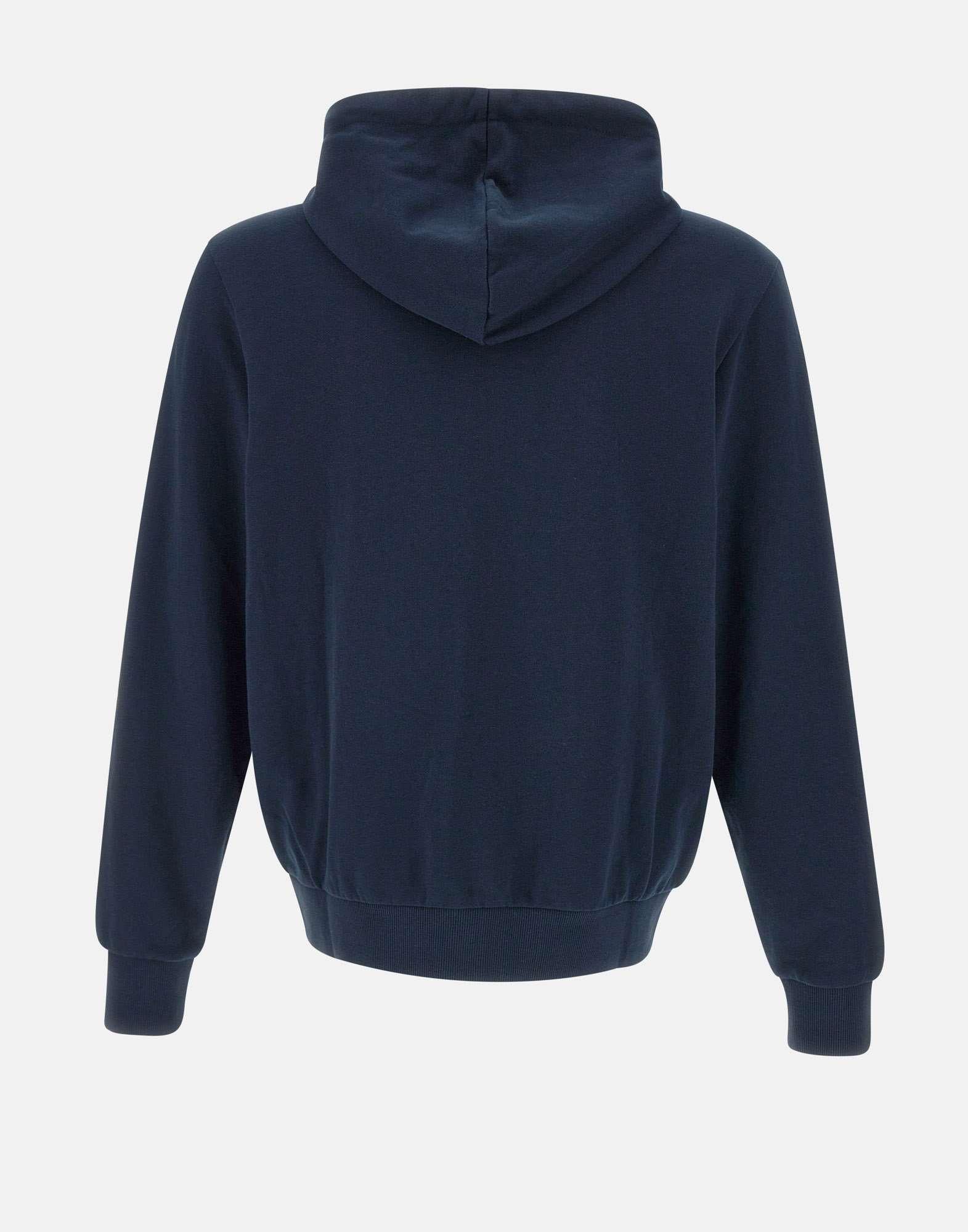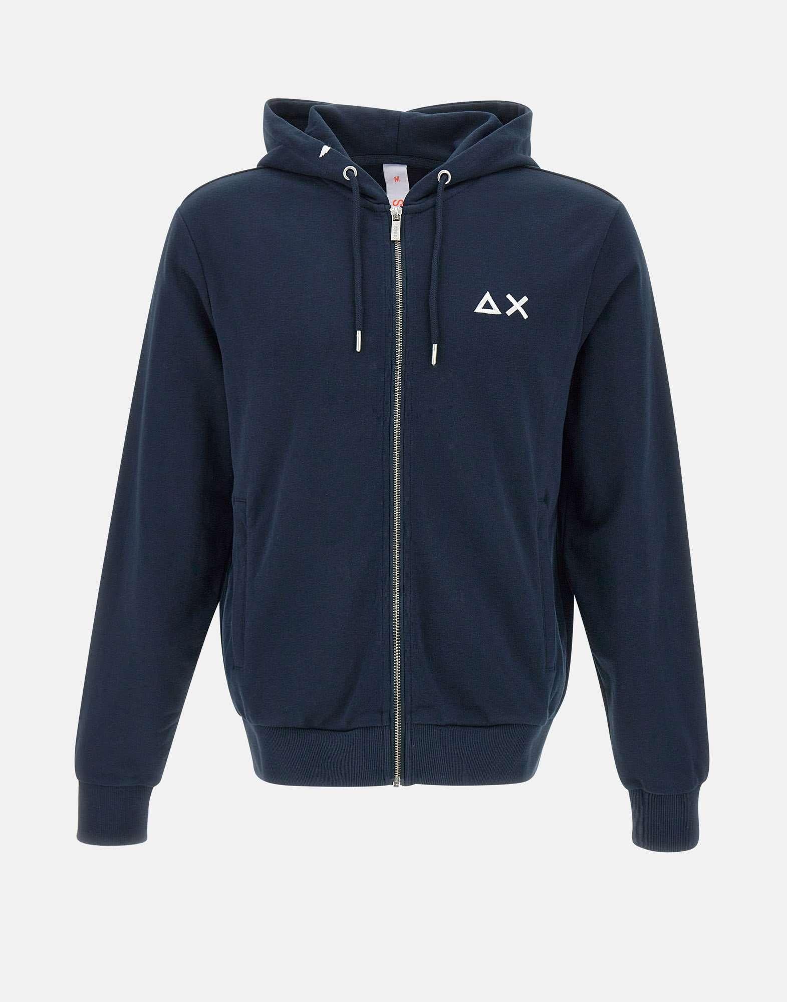 “Track zip basic fleece” uomo Sun68, blu, misto cotone, cappuccio con coulisse e finalini silver logati, tasche laterali con zip, chiusura full zip, logo ricamato sul petto, bordi a costine, interno garzato, regular fit