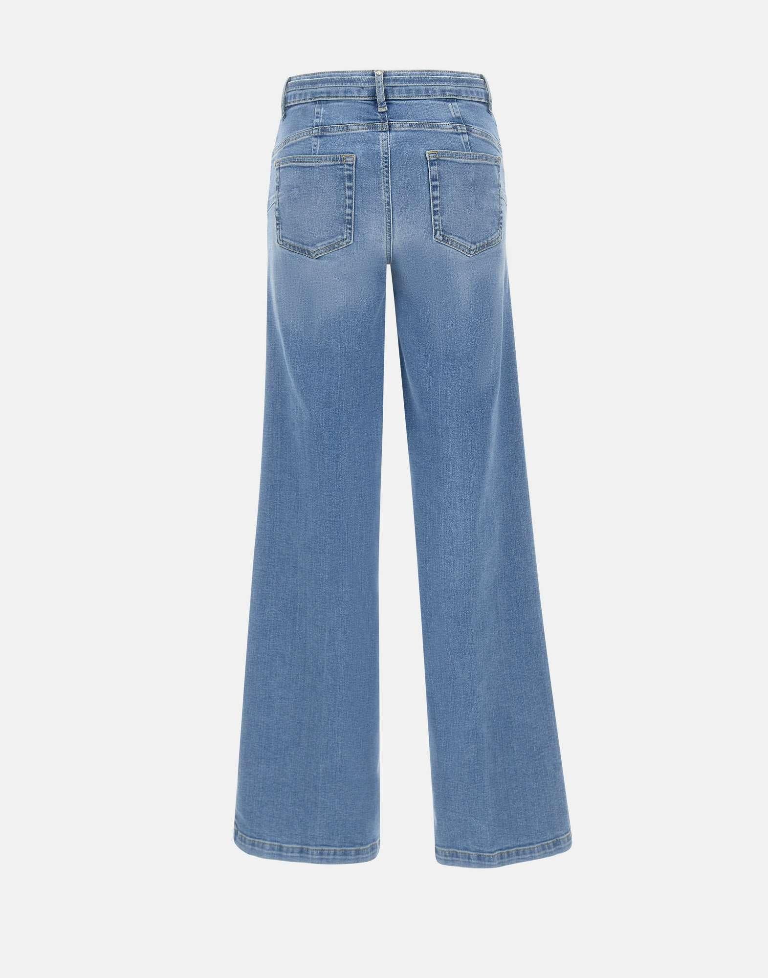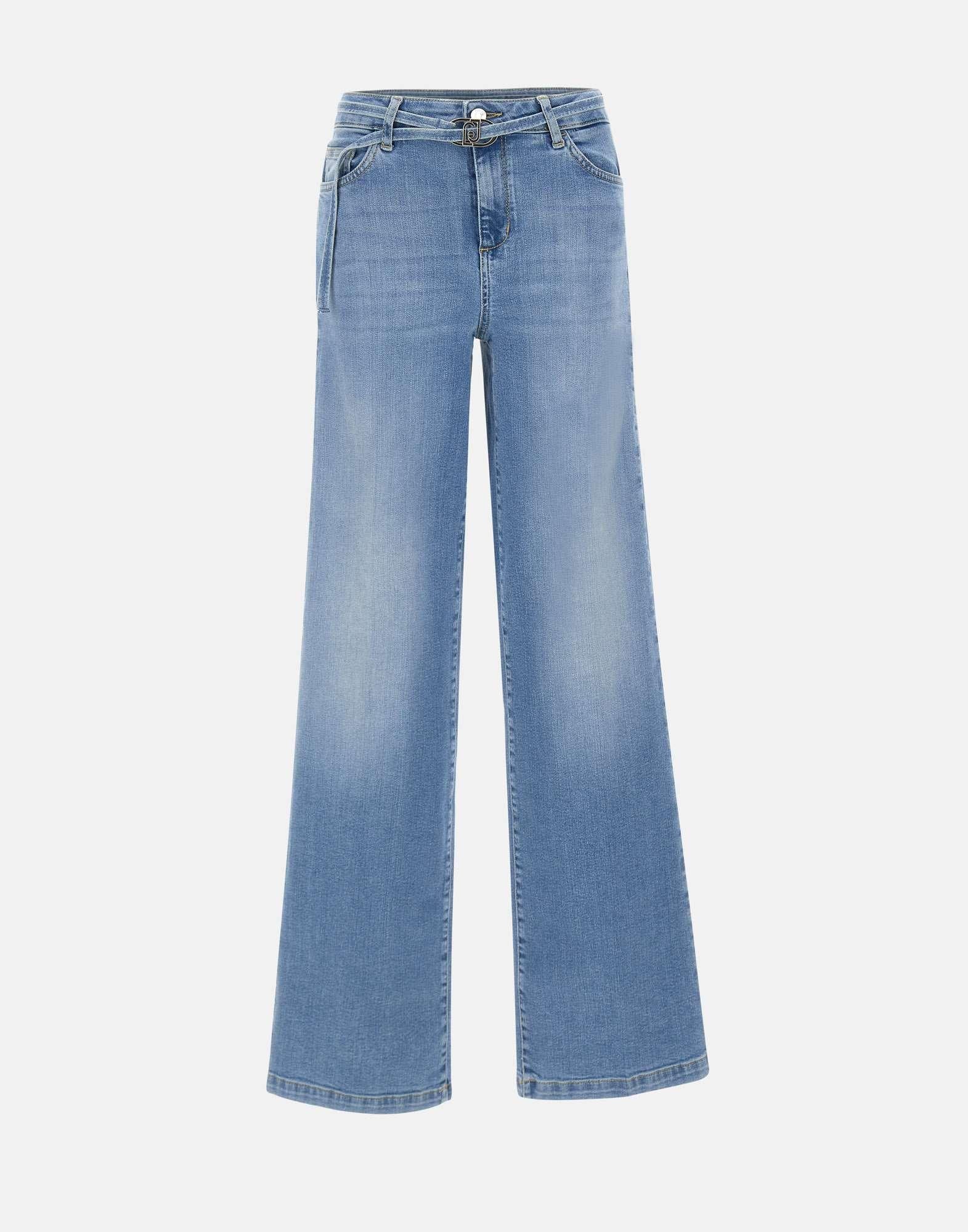 Jeans donna Liu-Jo “Good Flare” realizzati in denim di cotone stretch color azzurro con lavaggio stonewash, modello a vita alta con gamba ampia e linea slanciata. Questi jeans presentano cintura sottile coordinata con fibbia metallica LJ, costruzione cinque tasche e chiusura con zip e bottone logato per un finish pulito e curato. Sul retro, il dettaglio logo metallico con strass sulla tasca posteriore aggiunge un tocco luminoso e riconoscibile. Ampiezza fondo: 26 cm. Vestibilità regular fit, ideale per look di stagione in chiave contemporanea e femminile.