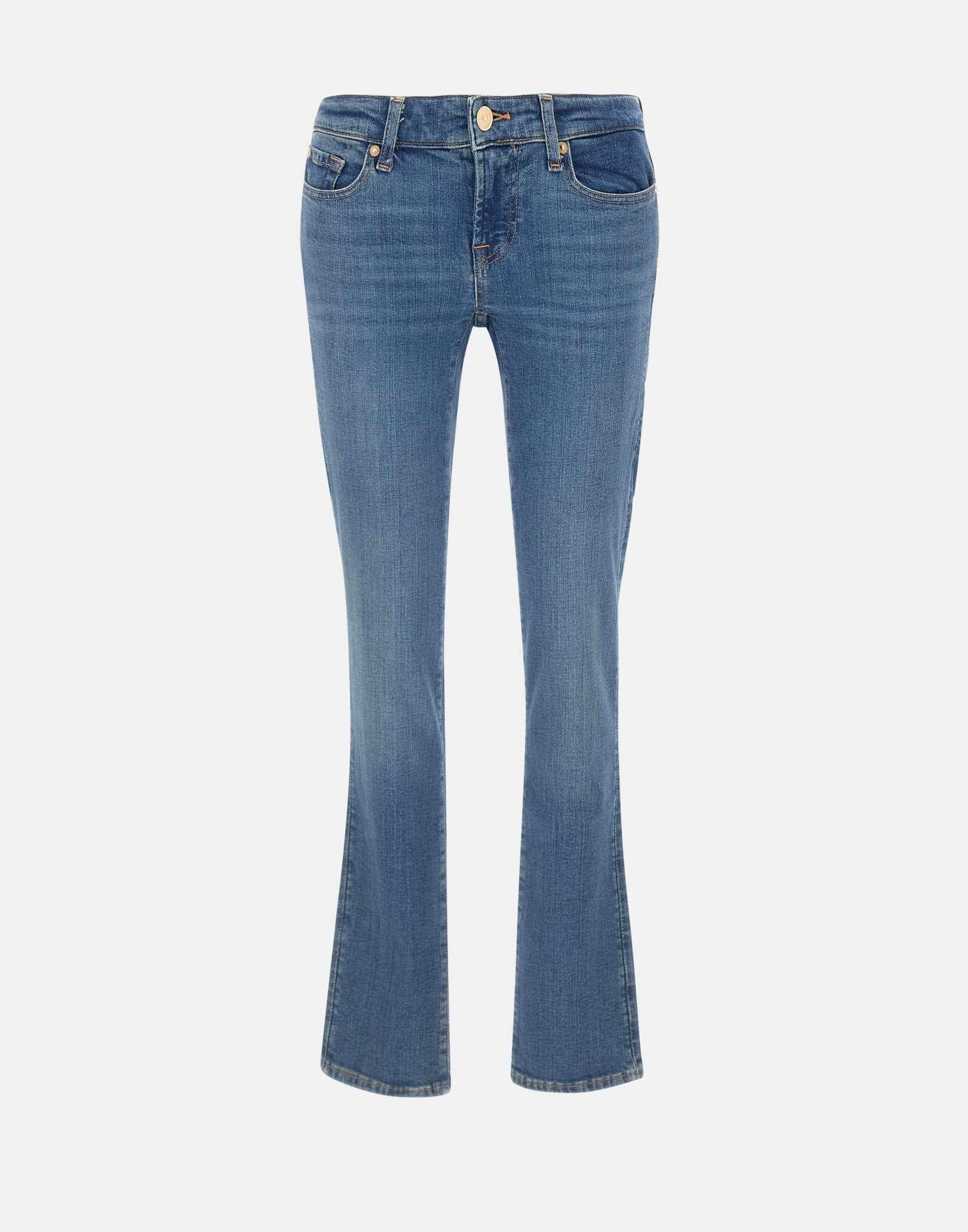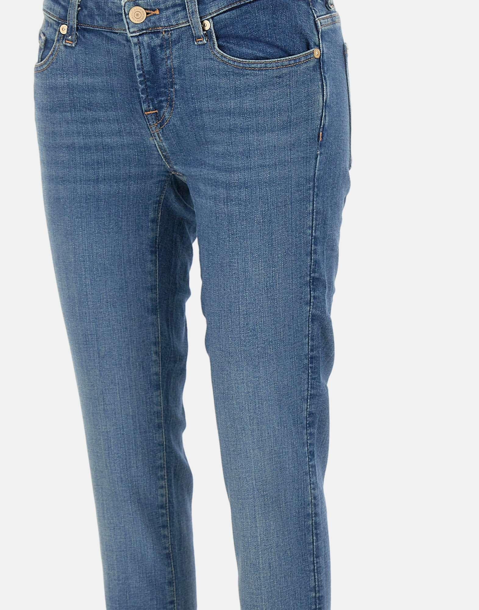Jeans donna 7 For All Mankind “Low skinny” realizzati in morbido denim di cotone blu, studiato per avvolgere e sostenere nei punti giusti, contribuendo a snellire e definire la silhouette. Il modello presenta una vestibilità aderente effetto seconda pelle, con vita bassa e linea modellata sui fianchi. Il taglio skinny fino alla caviglia crea un effetto preciso e slanciato. Completano il design la costruzione a cinque tasche, la chiusura con cerniera e bottone e la patch logo cucita sulla tasca posteriore, dettaglio iconico del brand. Ampiezza fondo: 16cm.
