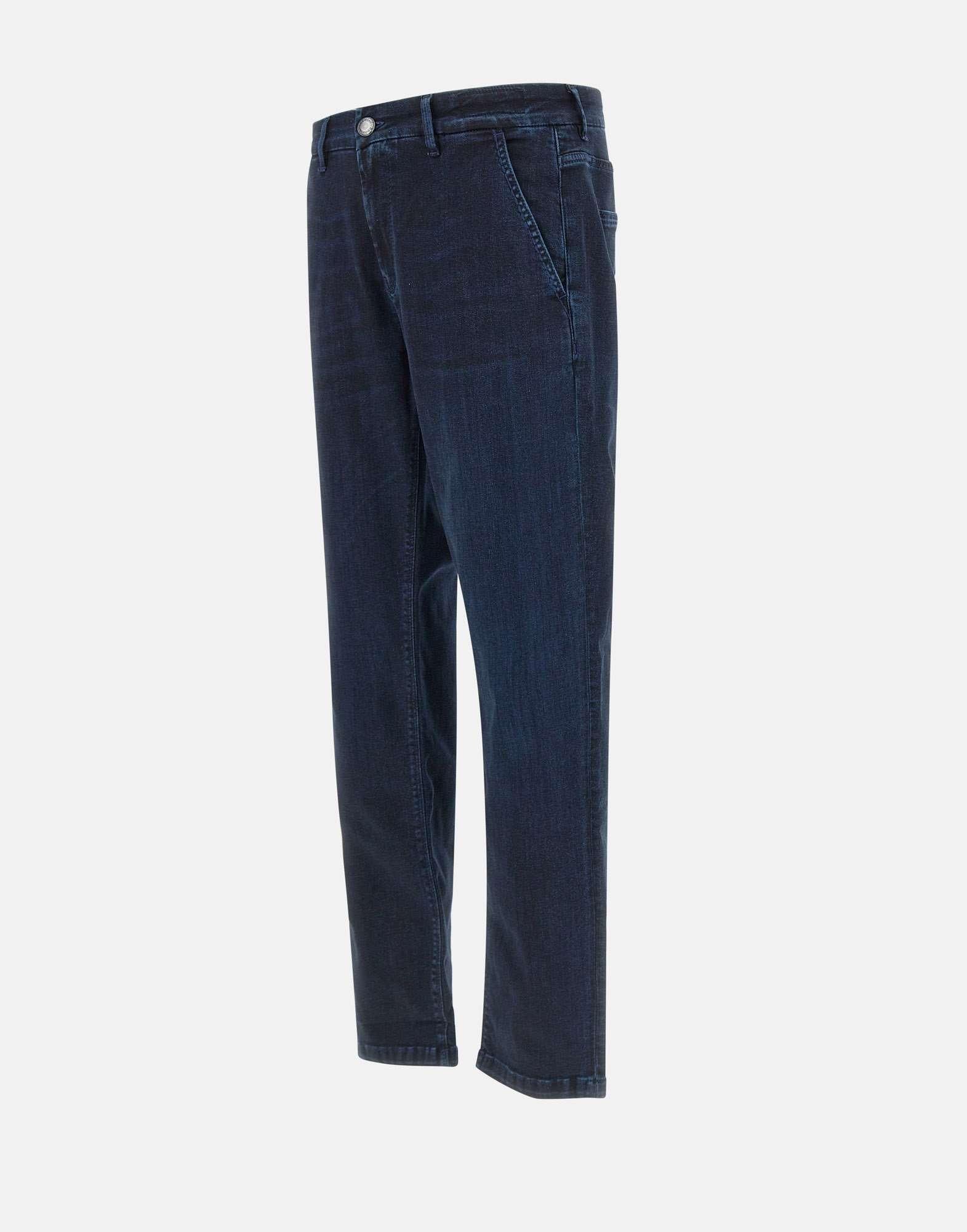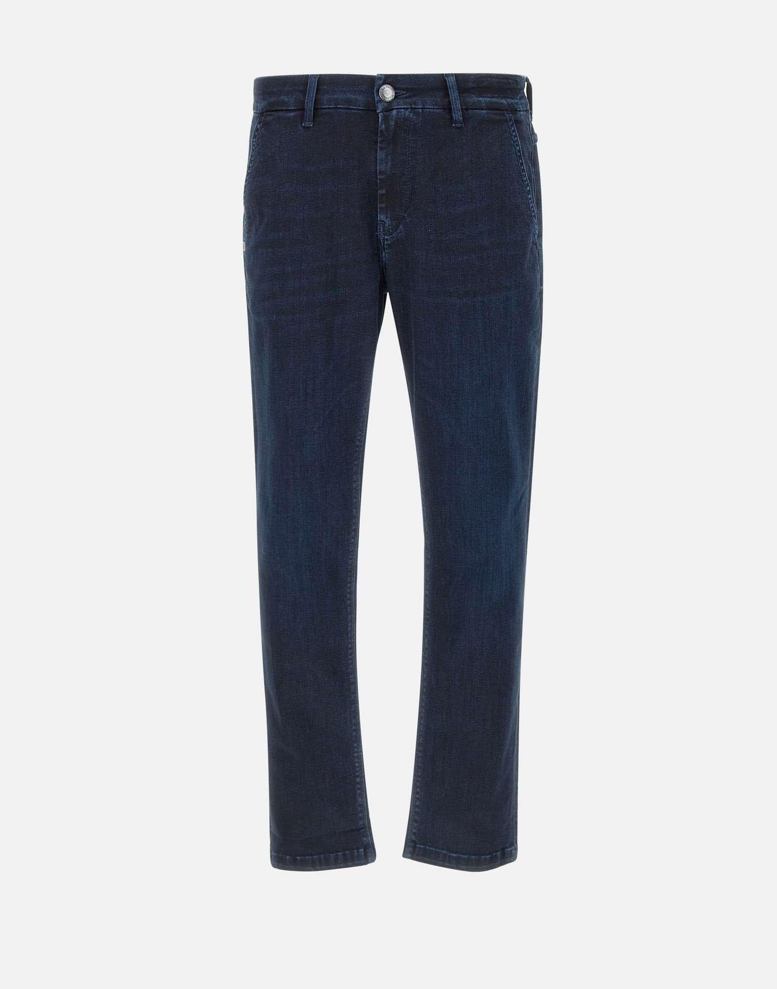 Jeans uomo Re-Hash “Mariotto” in cotone e viscosa stretch, blu scuro, Light DeniM tinto in capo con schiariture, cinque tasche, chiusura con zip e bottone logato, patch logo sul retro, gamba dritta con fondo 18cm, slim fit, made in Italy