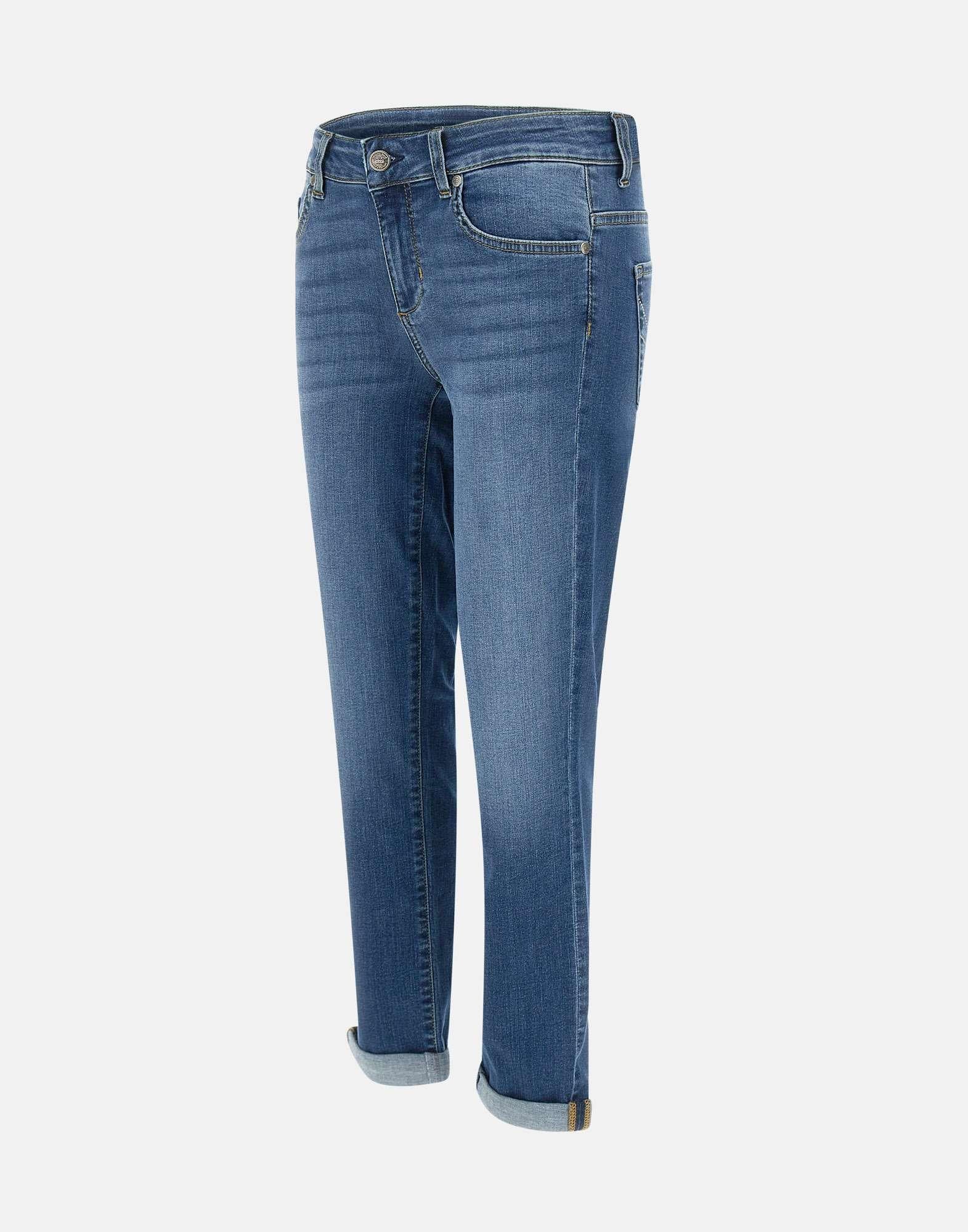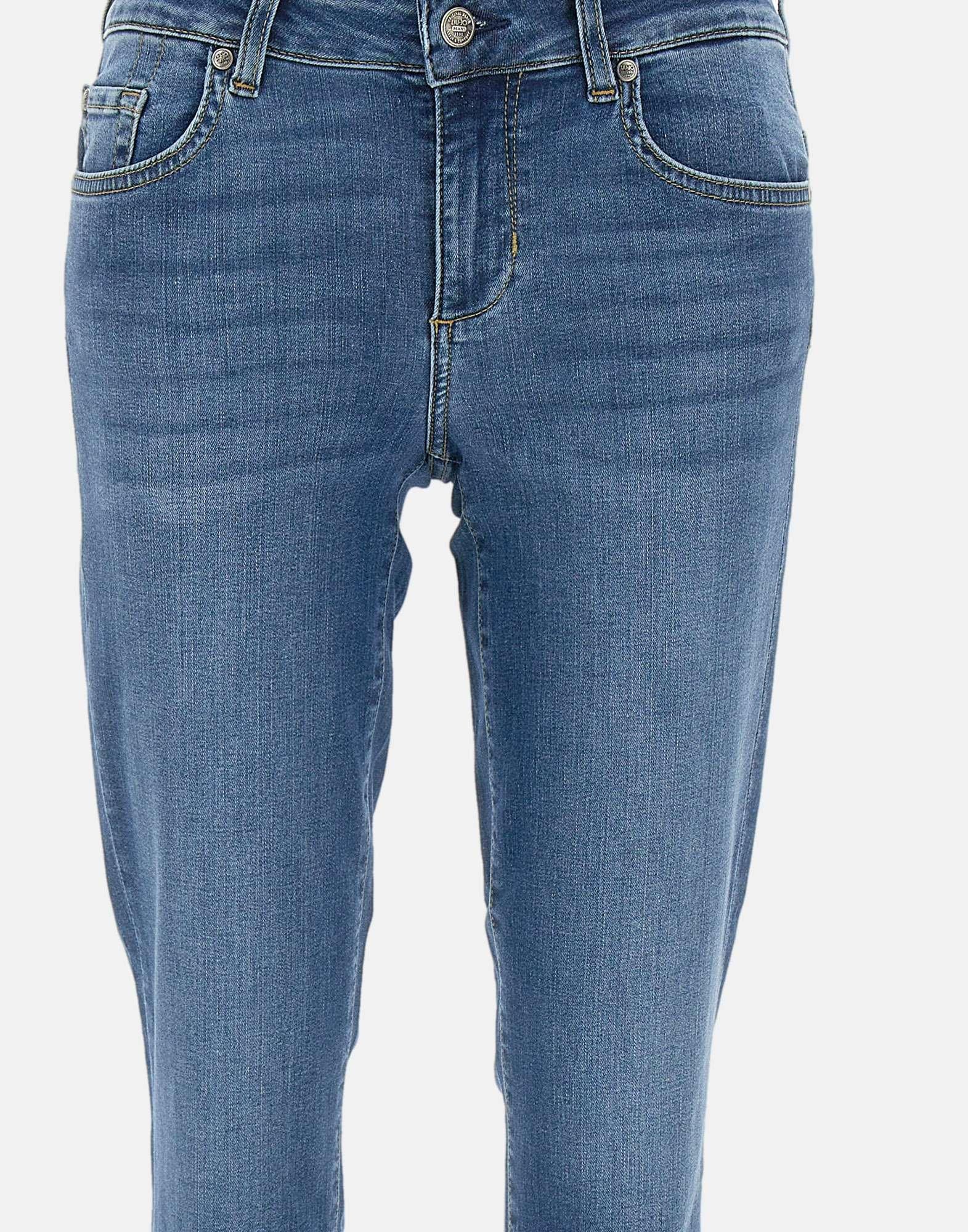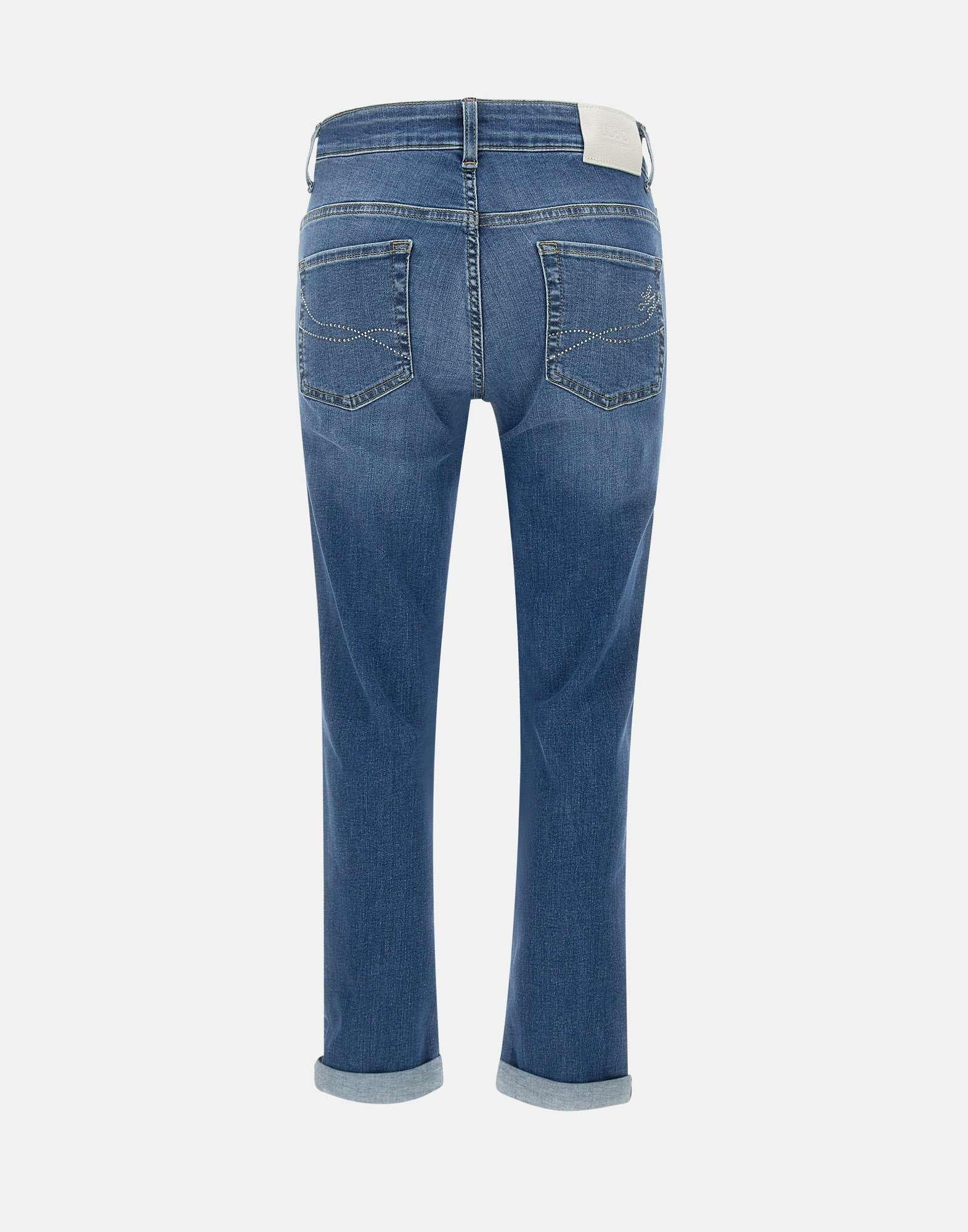 Jeans “Monroe” Liu-Jo , lavaggio scuro, cinque tasche, vita regolare con passanti per cintura, gamba skinny fondo 17cm, cinque tasche, salpa logata, strass sulle tasche posteriori, chiusura con bottone e zip, skinny cropped fit.