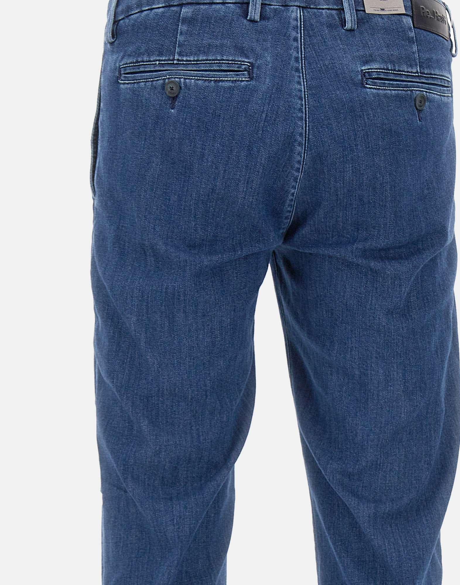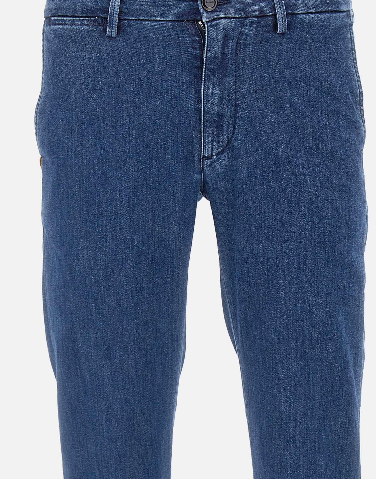 Jeans uomo Re-Hash “Mucha” in cotone, blu scuro, tessuto Tencel ultracomfort, modello cinque tasche, risvolto al fondo, chiusura con zip e bottone, vita regolare con passanti per cintura,regular fit. Made in Italy.