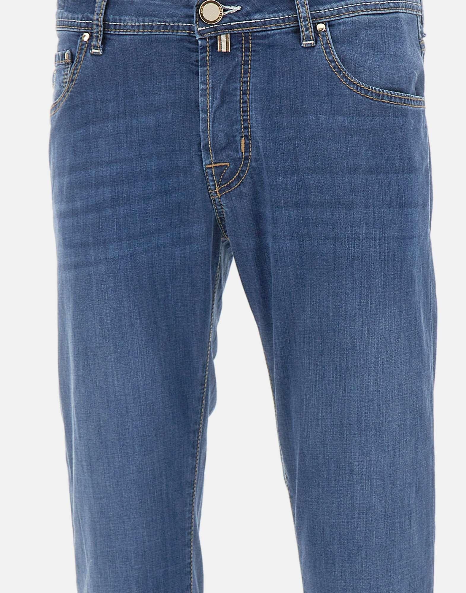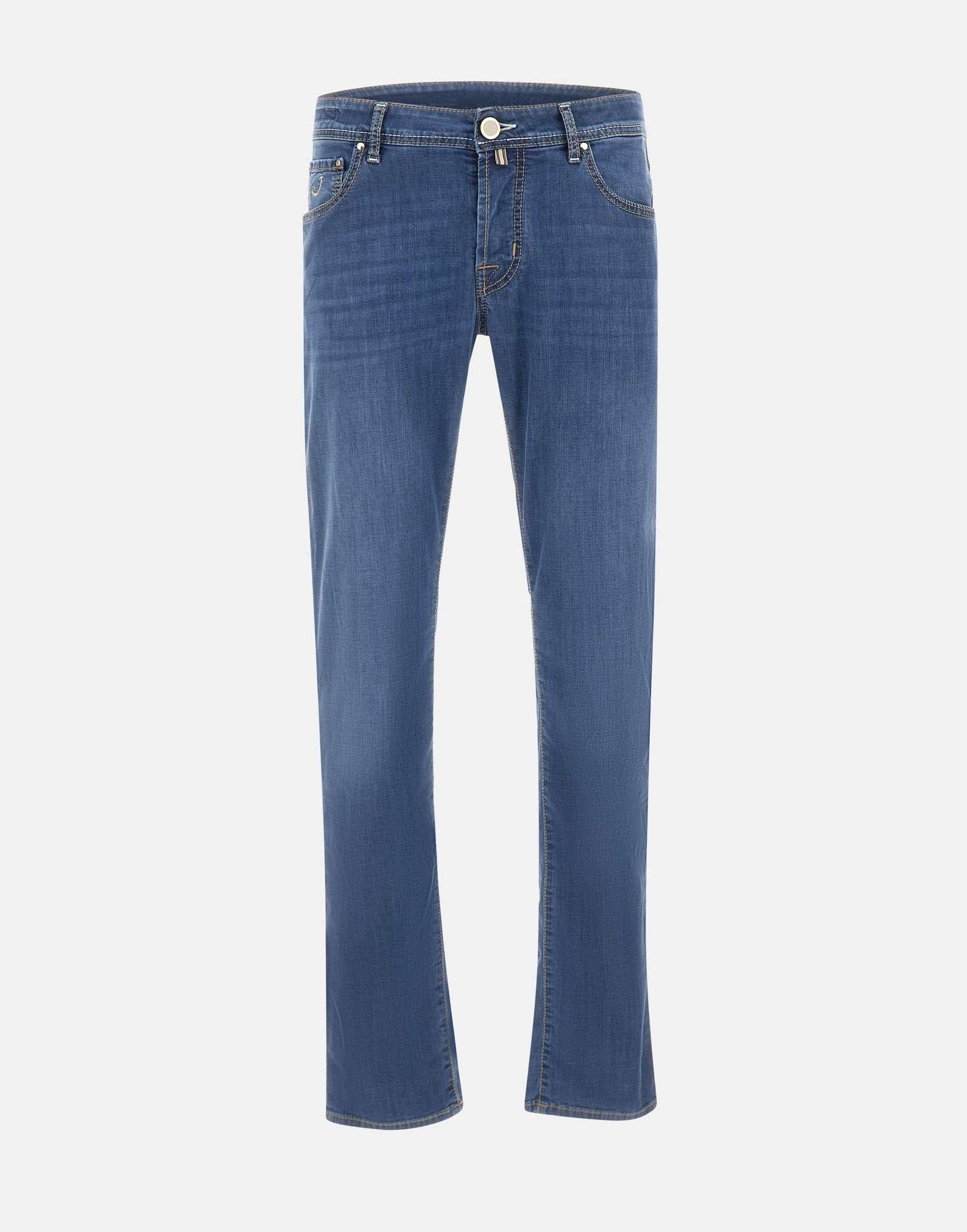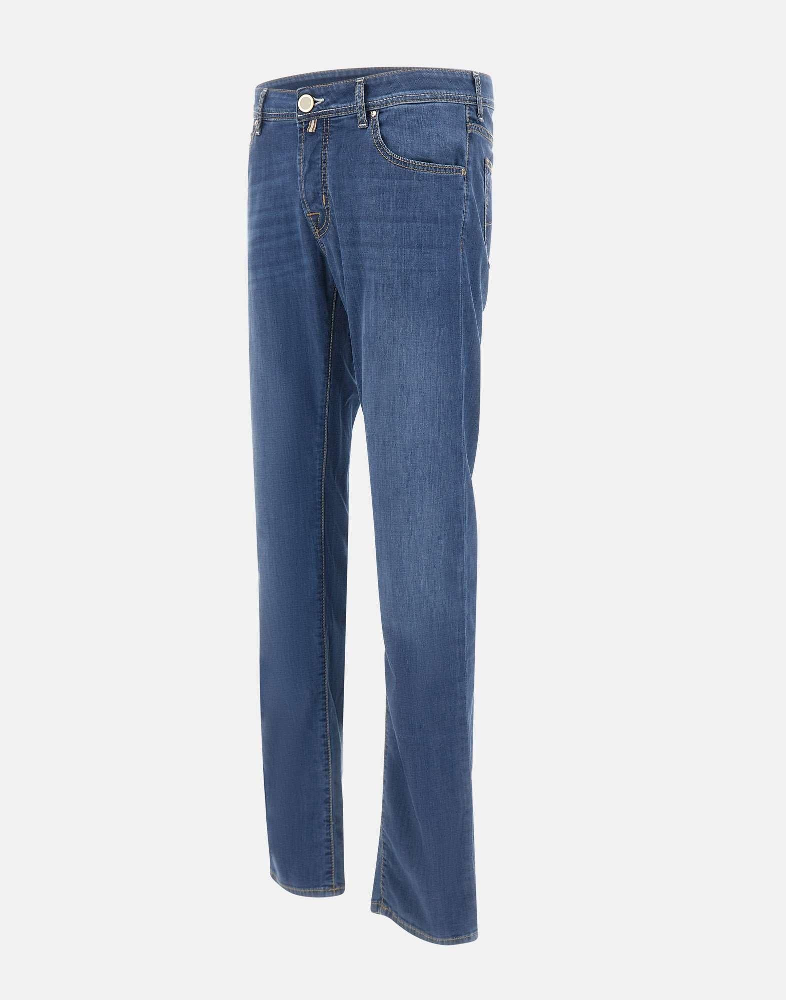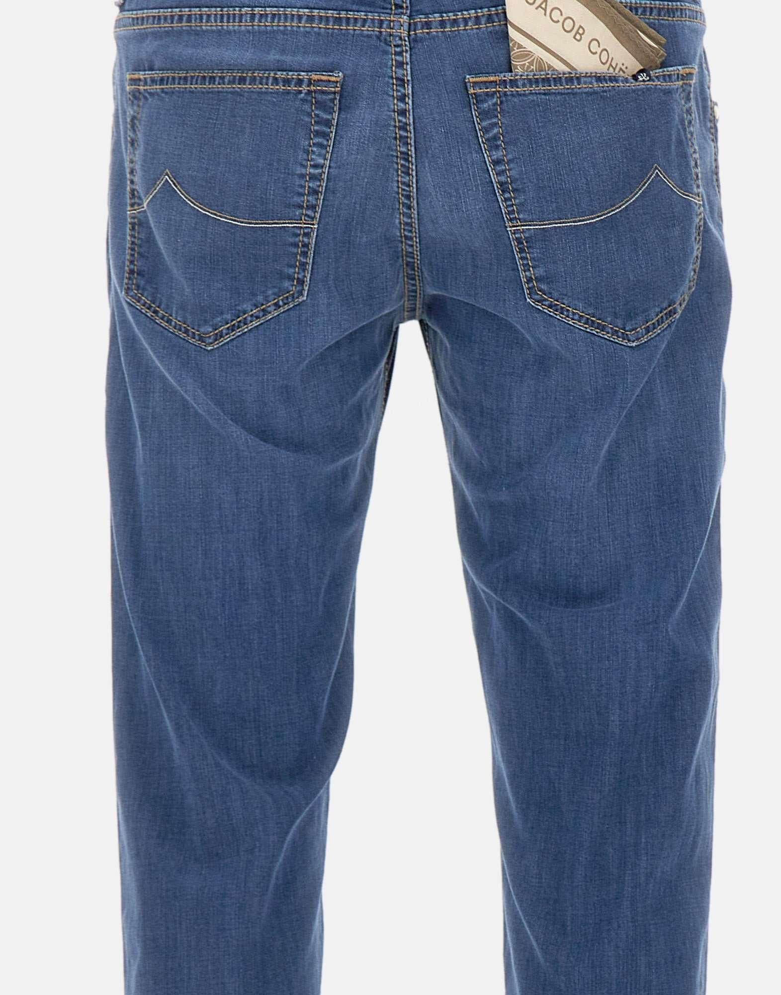 Jeans uomo Jacob Cohen “Nick” realizzati in denim di misto cotone e viscosa color blu lavaggio medio, pensati per un look curato e contemporaneo. Il modello cinque tasche presenta impunture a contrasto e una linea slim fit a vita bassa che valorizza la silhouette mantenendo comfort e libertà di movimento. La chiusura con bottoni coperti da patta e la salpa in cavallino con logo rifiniscono il design con un tocco distintivo. All’interno, la patta ricamata con il nome del pantalone richiama l’identita del modello. Inclusi bandana in cotone con stampa bicolor e rocchetto di filo. Fondo gamba 17 cm. Made in Italy.