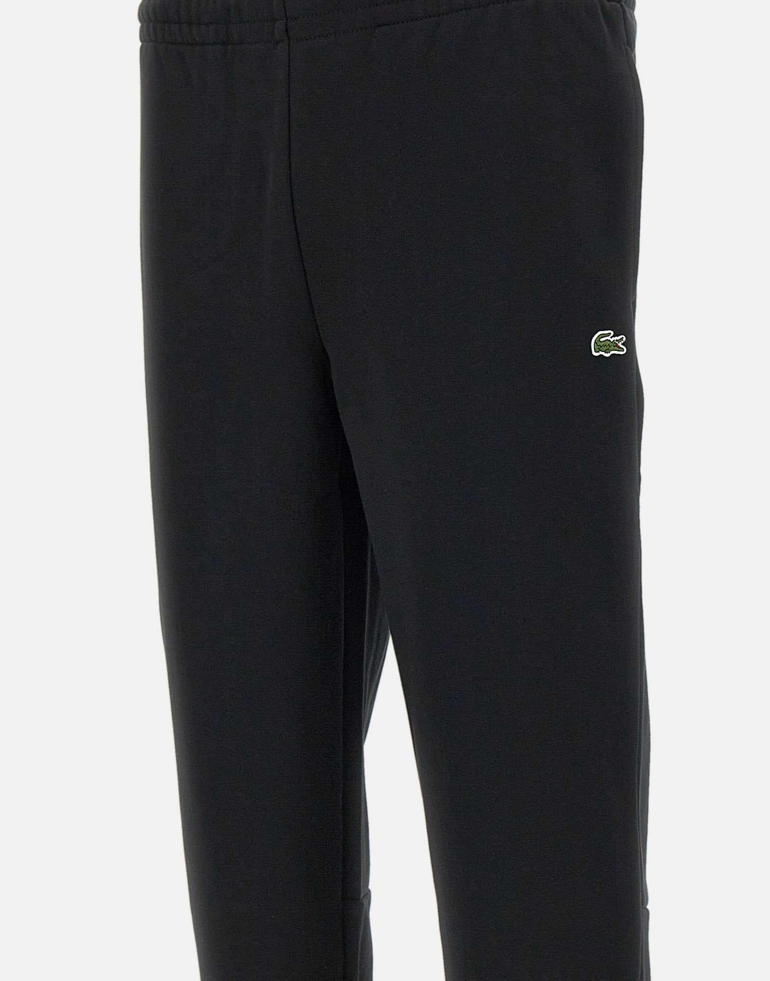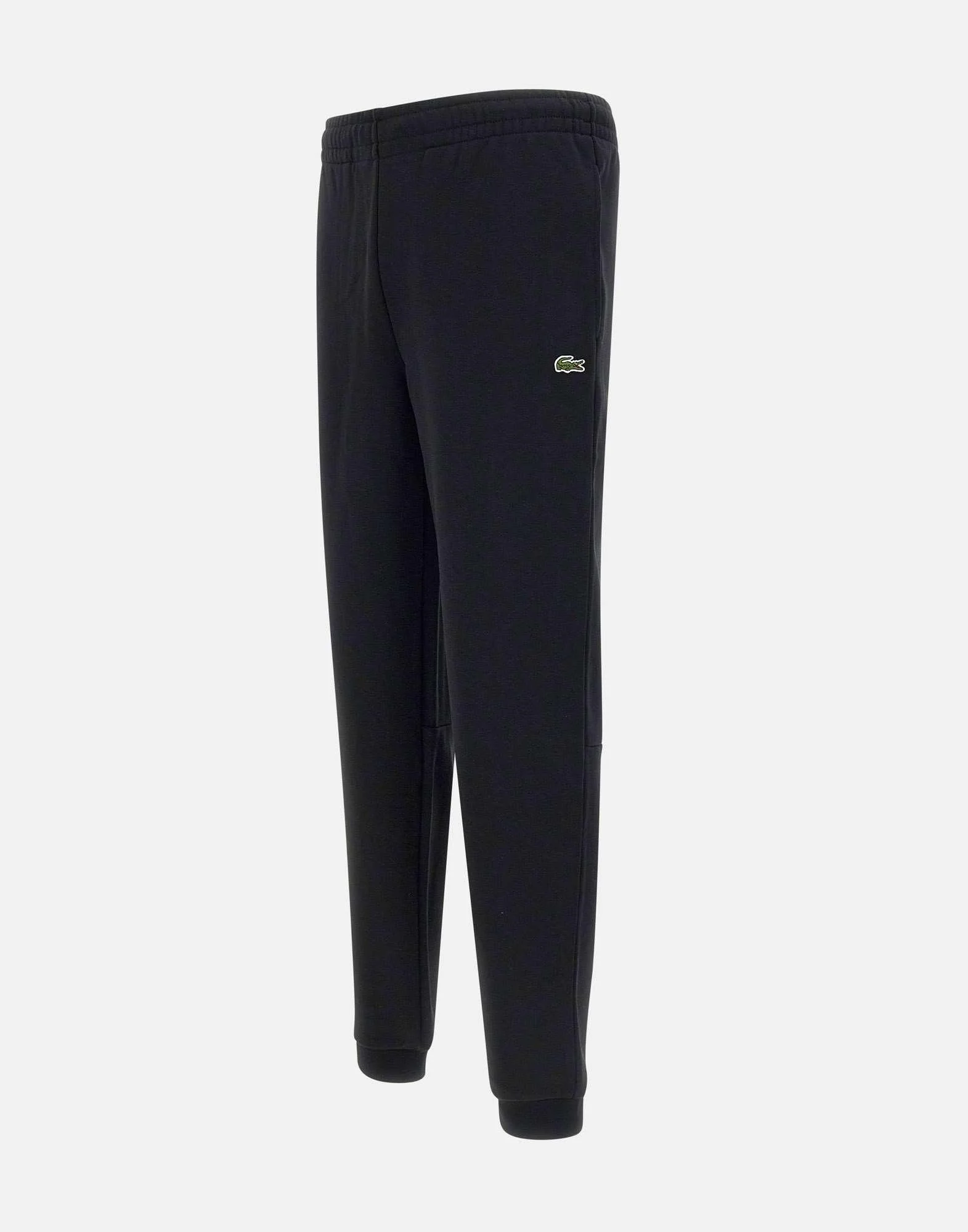 Jogger in cotone organico spazzolato Lacoste uomo, nero, vita elasticata con coulisse interna, tasche laterali a filo, Coccodrillo sul davanti, interno garzato, fondo 13cm, vita elasticata, slim fit.