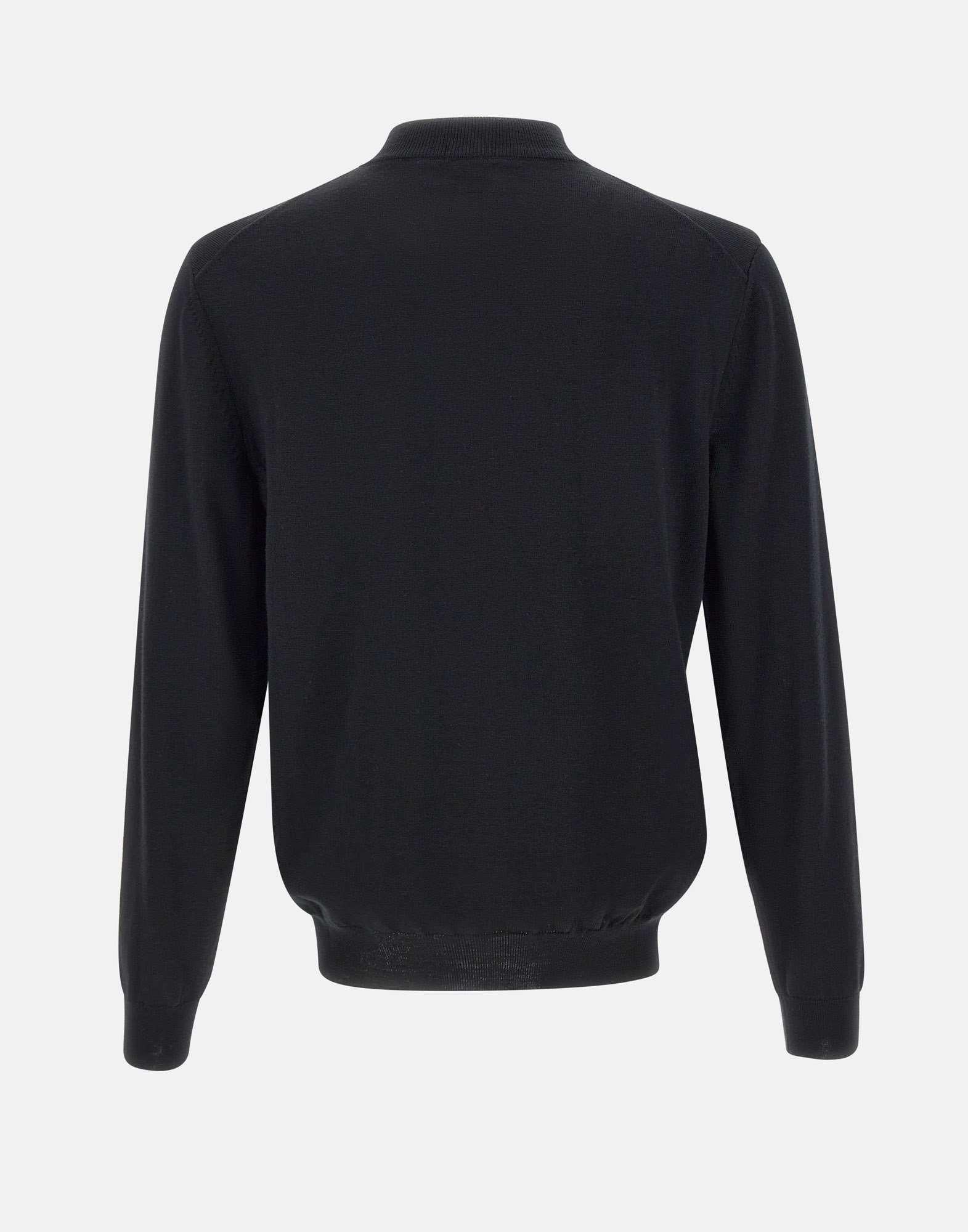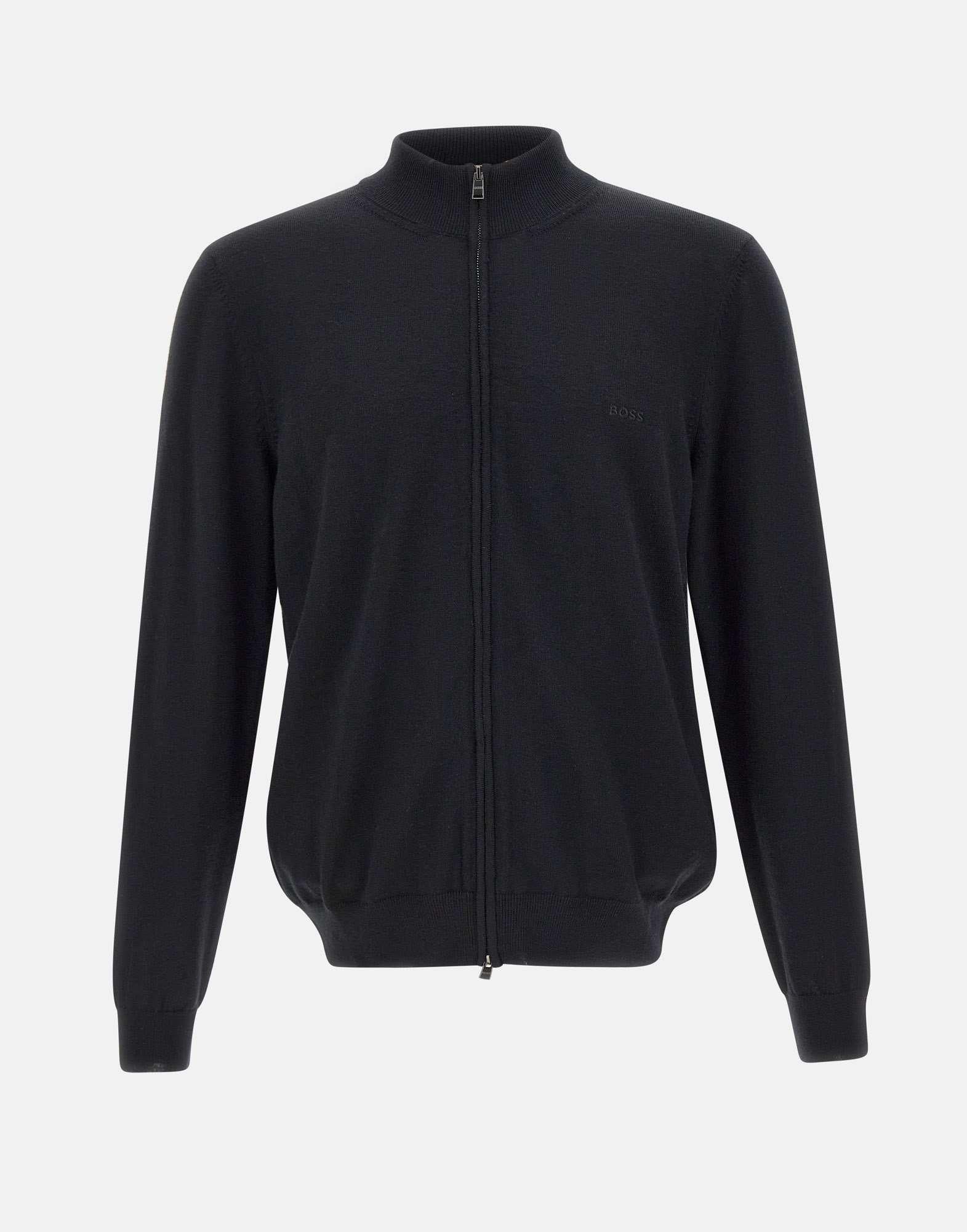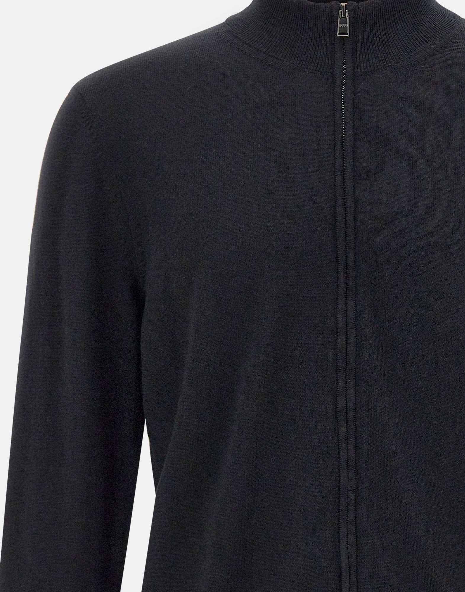 Maglia uomo “Balonso” in lana, colore nero, Boss Man Black, maniche lunghe, colletto alto, chiusura full zip, logo a ricamo sul petto, bordi a costine, regular fit
