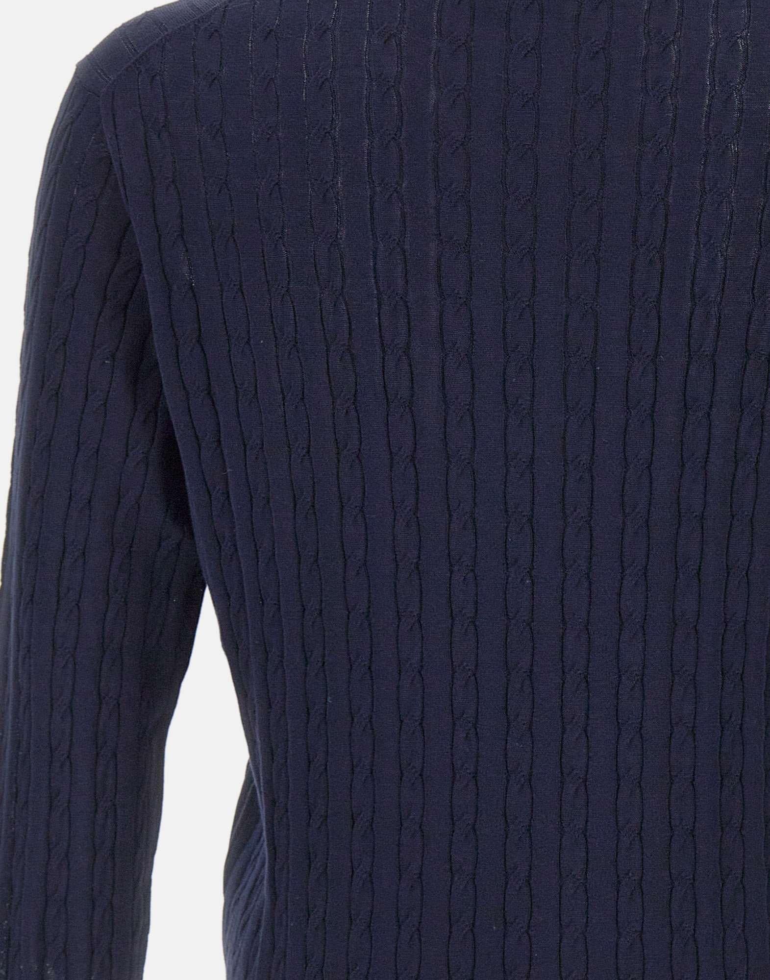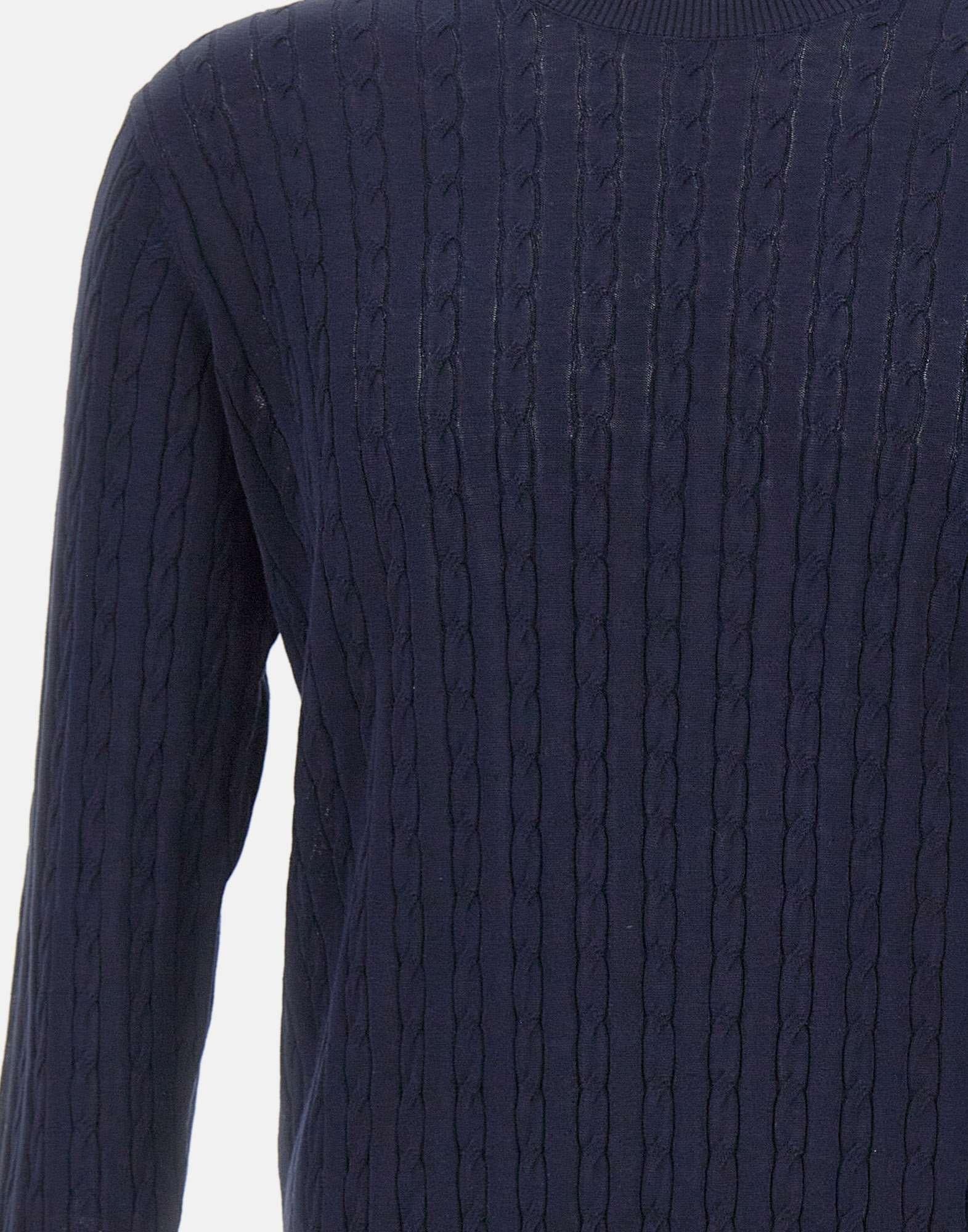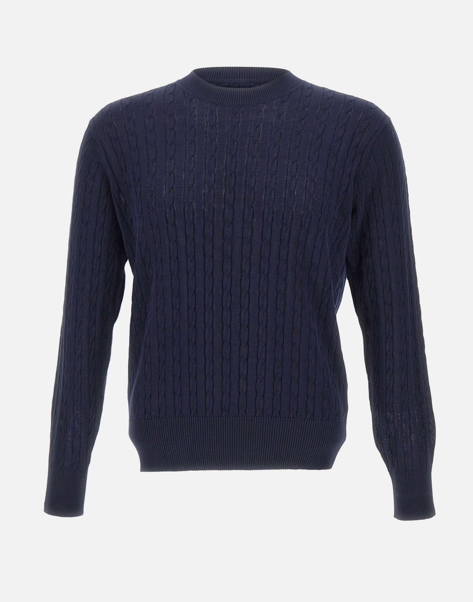 Maglia uomo Kangra realizzata in cotone color blu scuro con sottile lavorazione a trecce, pensata per un’eleganza casual essenziale e di stagione. Questa maglia presenta girocollo e maniche lunghe, con fondo, polsini e collo a costine che rifiniscono la linea in modo pulito e preciso. La vestibilità regolare garantisce comfort e versatilità, ideale per look contemporanei e abbinamenti raffinati.