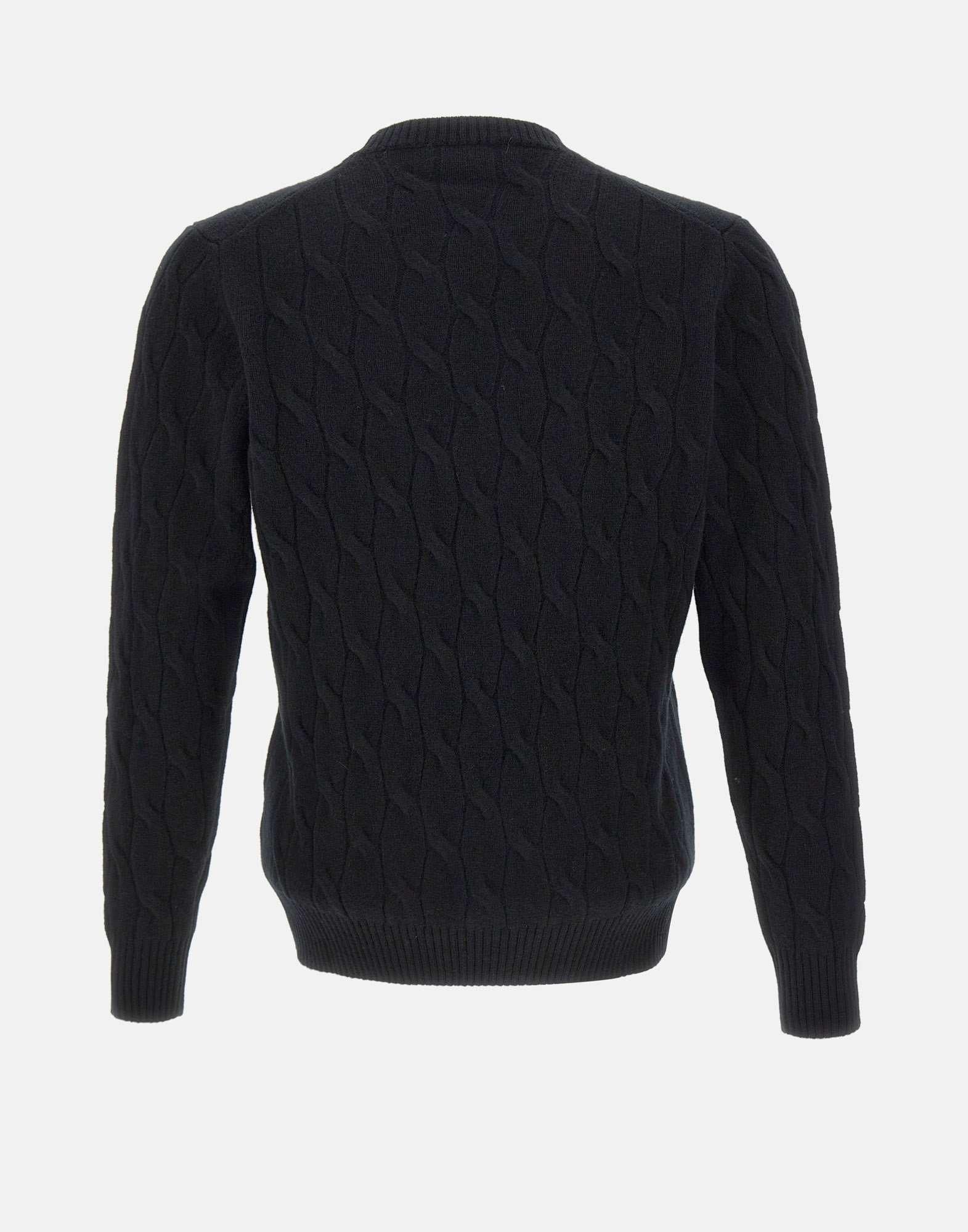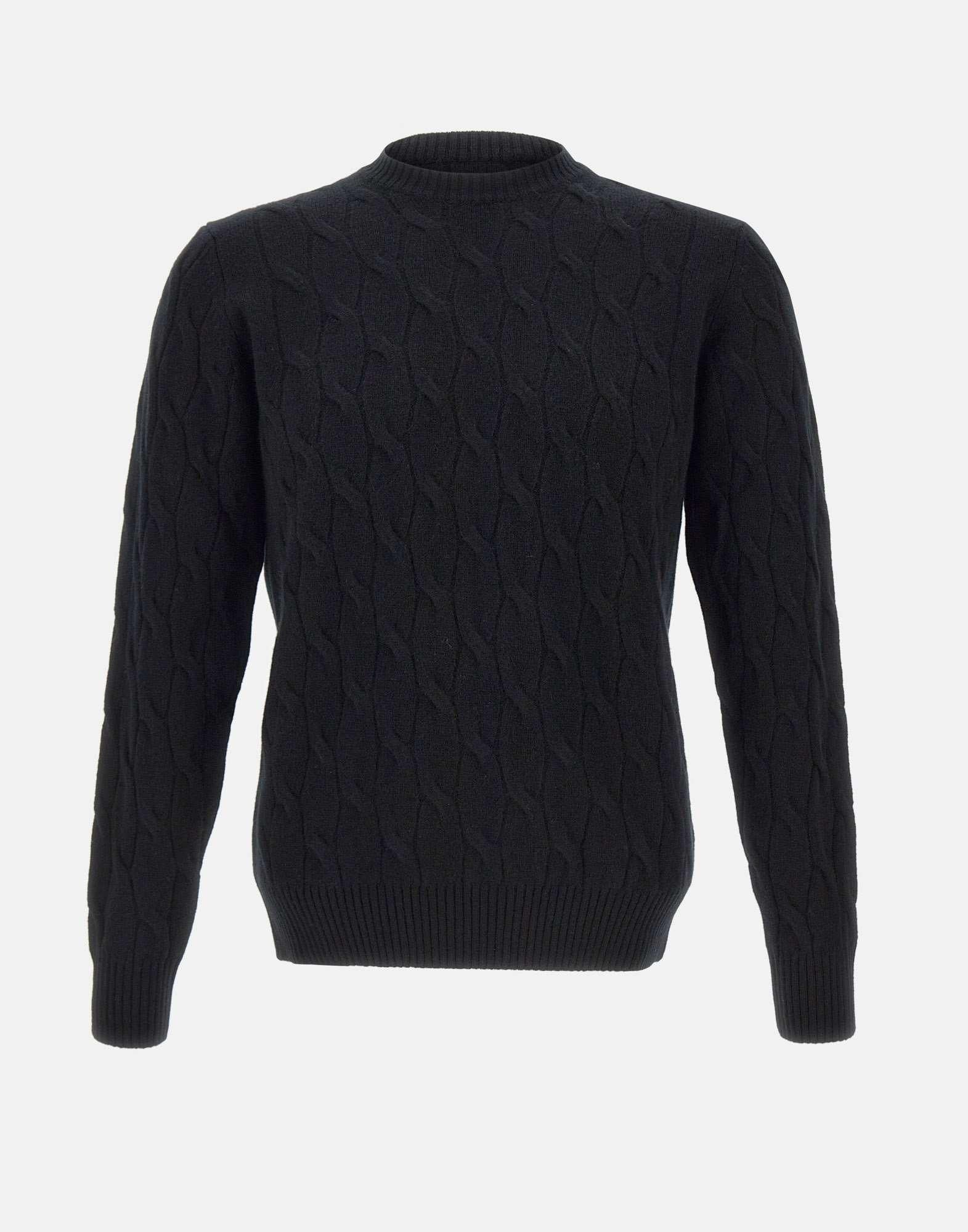 Maglia uomo Filippo De Laurentiis nera in misto lana e cashmere, con raffinata lavorazione a treccia. Girocollo classico con polsini, collo e orlo a costine. Il filato pregiato assicura calore e morbidezza, mentre la texture intrecciata aggiunge un tocco di dinamismo e carattere. Vestibilità slim per un look essenziale e sofisticato. Un capo che unisce tradizione artigianale e stile contemporaneo. Made in Italy.