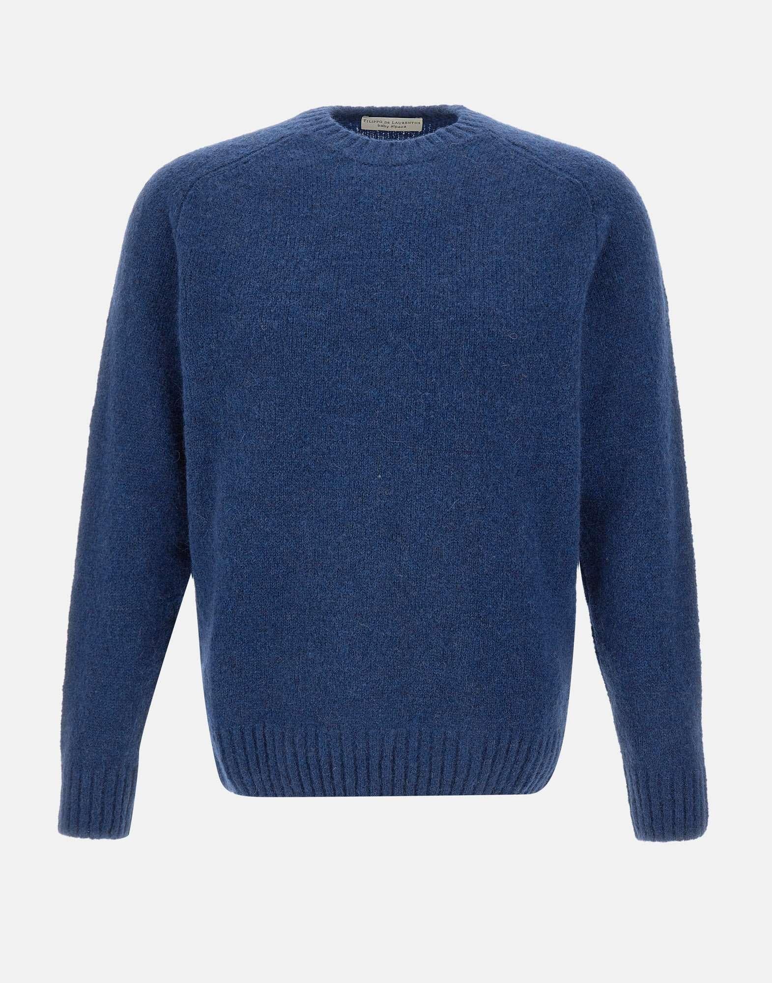 Maglia “Baby Alpaca” uomo Filippo De Laurentiis in lana e alpaca, blu royal, girocollo, maniche lunghe a martello, orli a costine, morbida e calda, regular fit. Made in Italy.