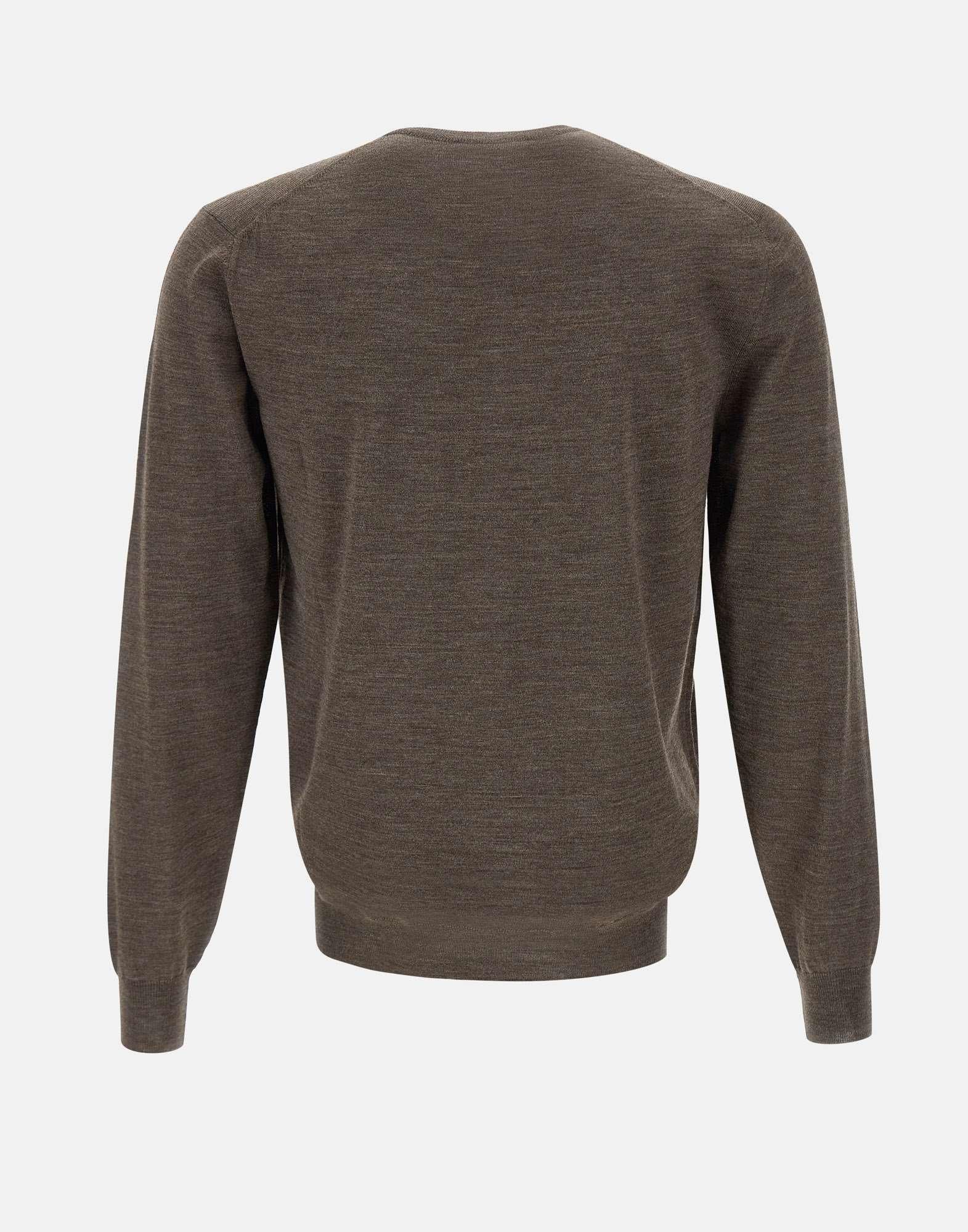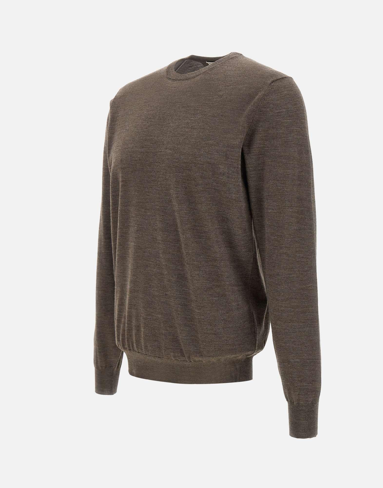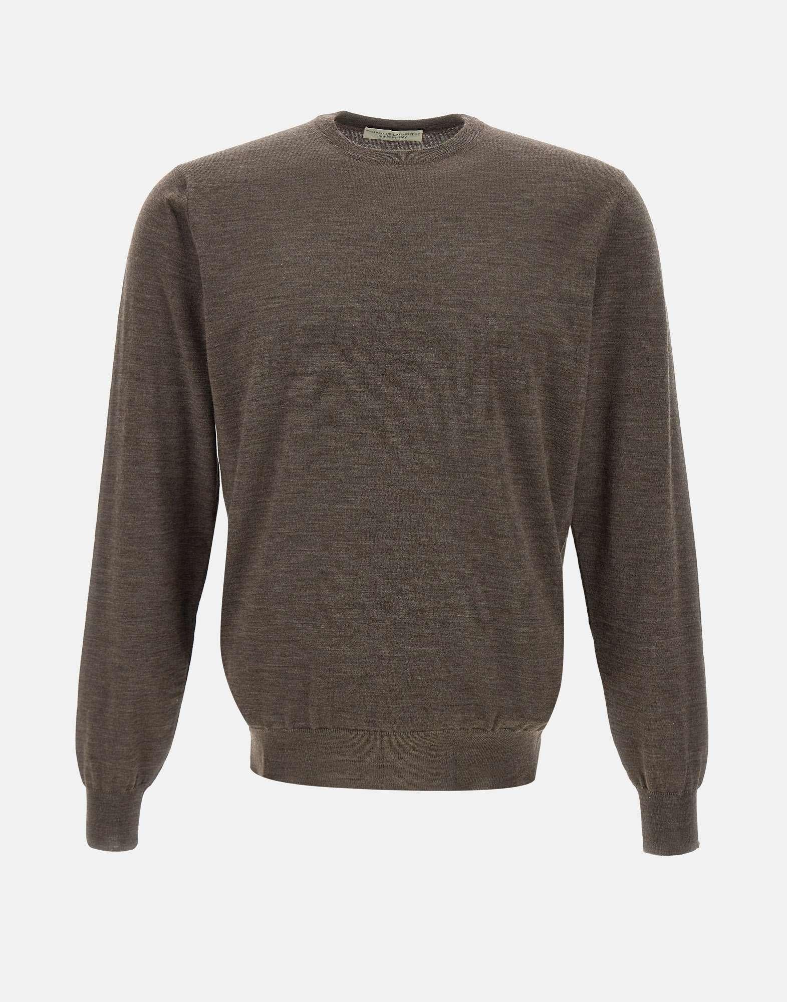 Maglia uomo Filippo De Laurentiis in lana super fine 120’S, nocciola, maniche lunghe, girocollo, bordi a costine, regular fit, made in Italy