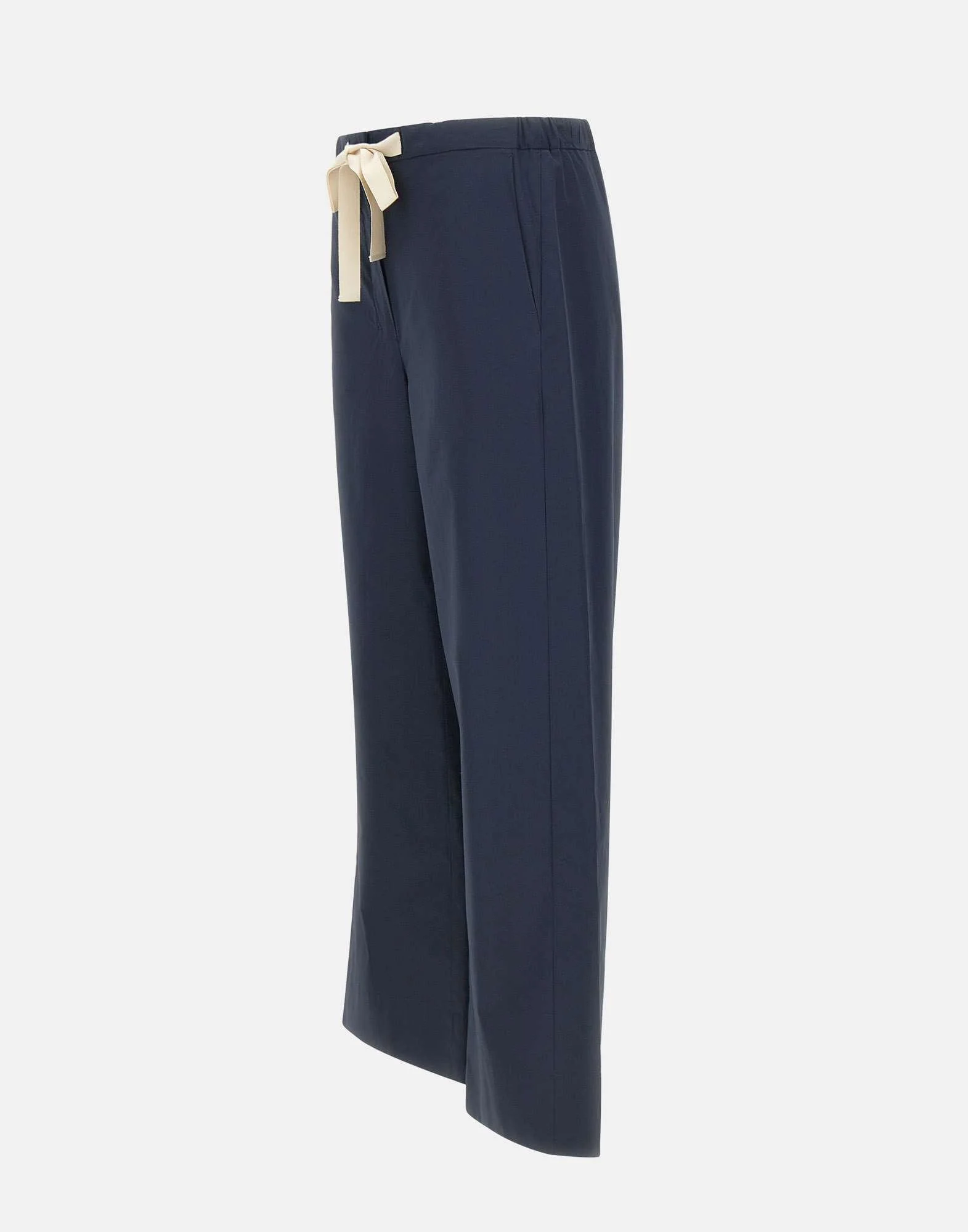 Pantalone donna ‘S Max Mara realizzato in popeline di puro cotone color blu scuro, pensato per un’eleganza essenziale dal comfort contemporaneo. Il modello a gamba dritta presenta vita elasticizzata con coulisse a contrasto per una vestibilità modulabile, completata da chiusura con zip coperta e gancetto per una linea pulita. Le tasche all’italiana sui fianchi aggiungono praticità, mentre la lunghezza alla caviglia e il fondo gamba da 27 cm definiscono una silhouette moderna e versatile.