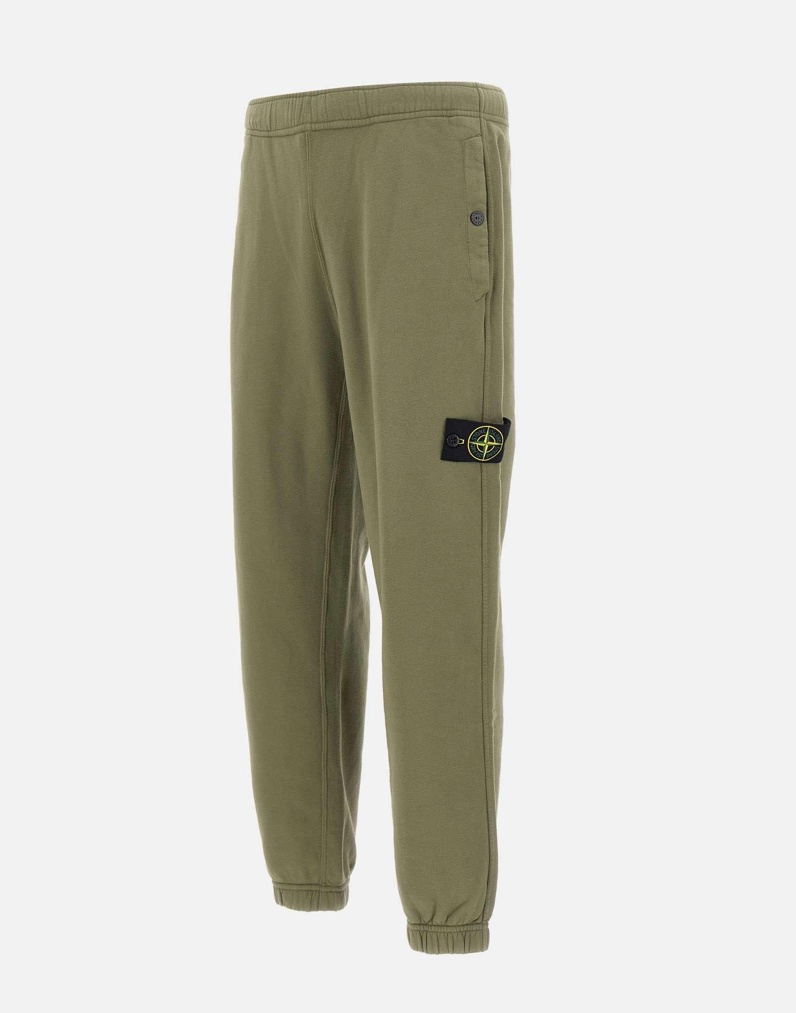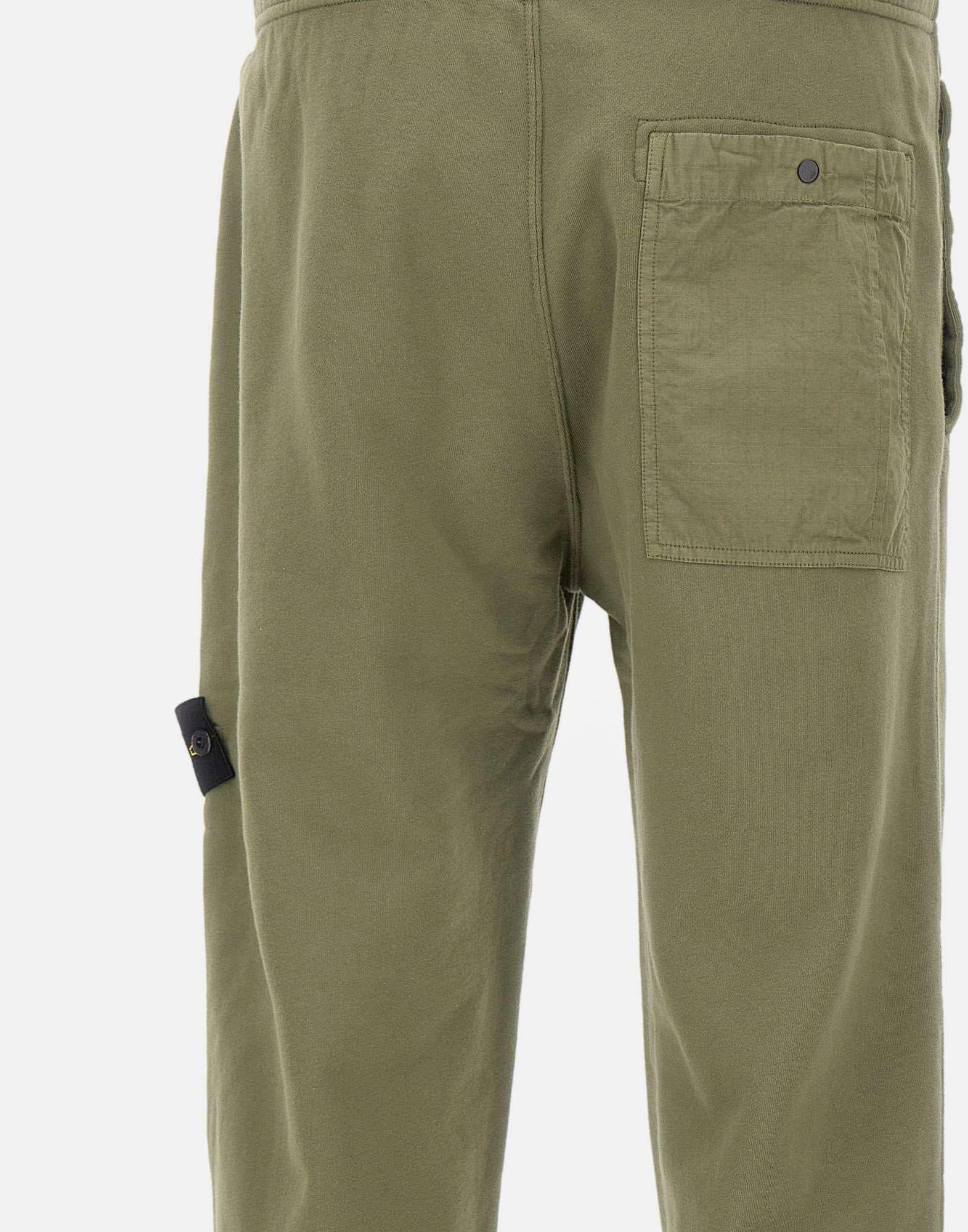 Pantalone jogger uomo Stone Island realizzato in felpa di cotone color verde militare, dalla pesantezza intermedia e con finitura tinto in capo per un effetto autentico e contemporaneo. Il modello è caratterizzato da una tasca di stagione in cotone ripstop sul retro, completata da bottone automatico e dettaglio piega. Sul davanti presenta tasche verticali a filetto con bottone automatico e rinforzo interno in nastro, per una costruzione curata e funzionale. Badge Stone Island applicato sulla gamba sinistra, fondo gamba elasticizzato e vita elasticizzata con coulisse interna. Vestibilità regular, ideale per look casual premium e urban.