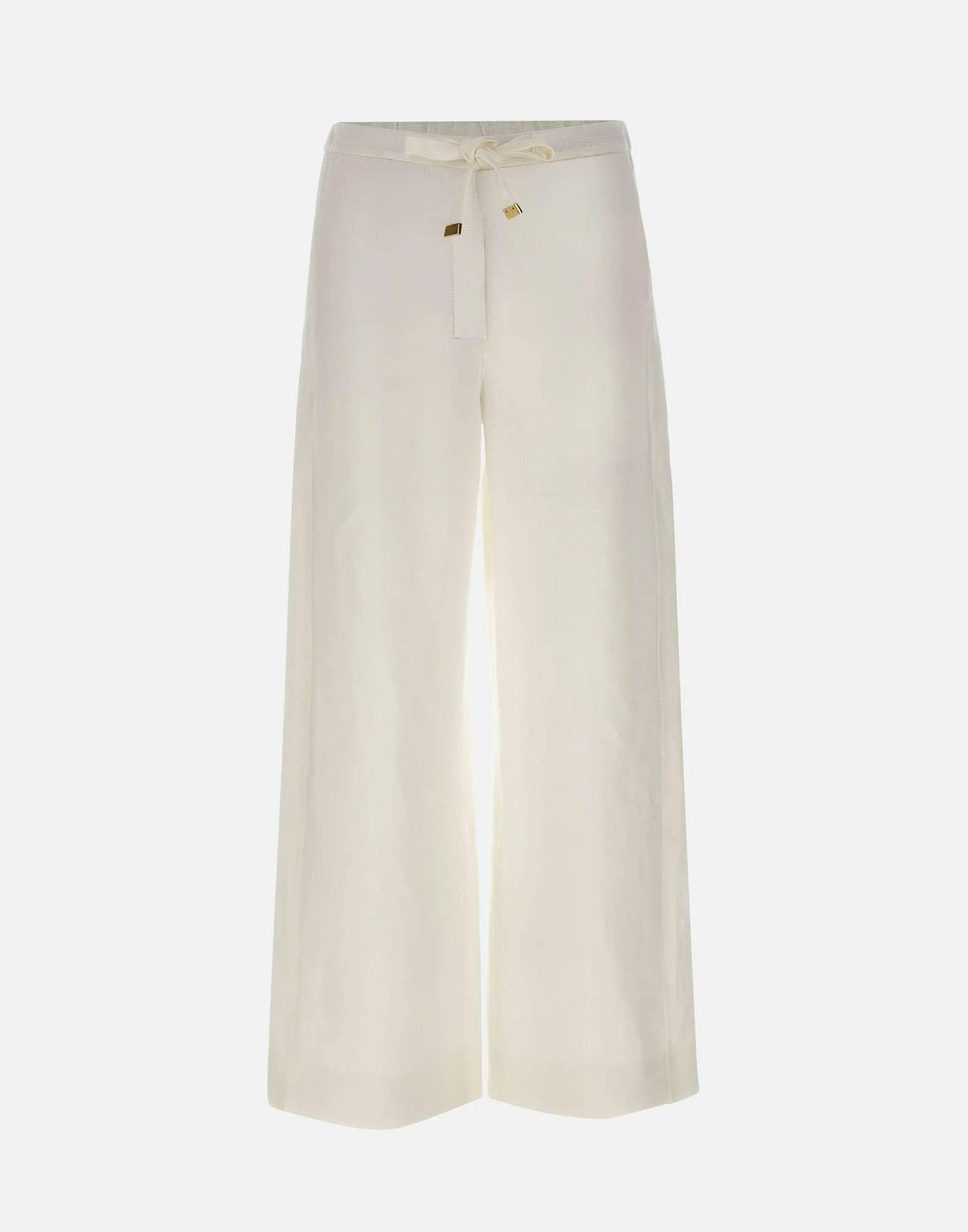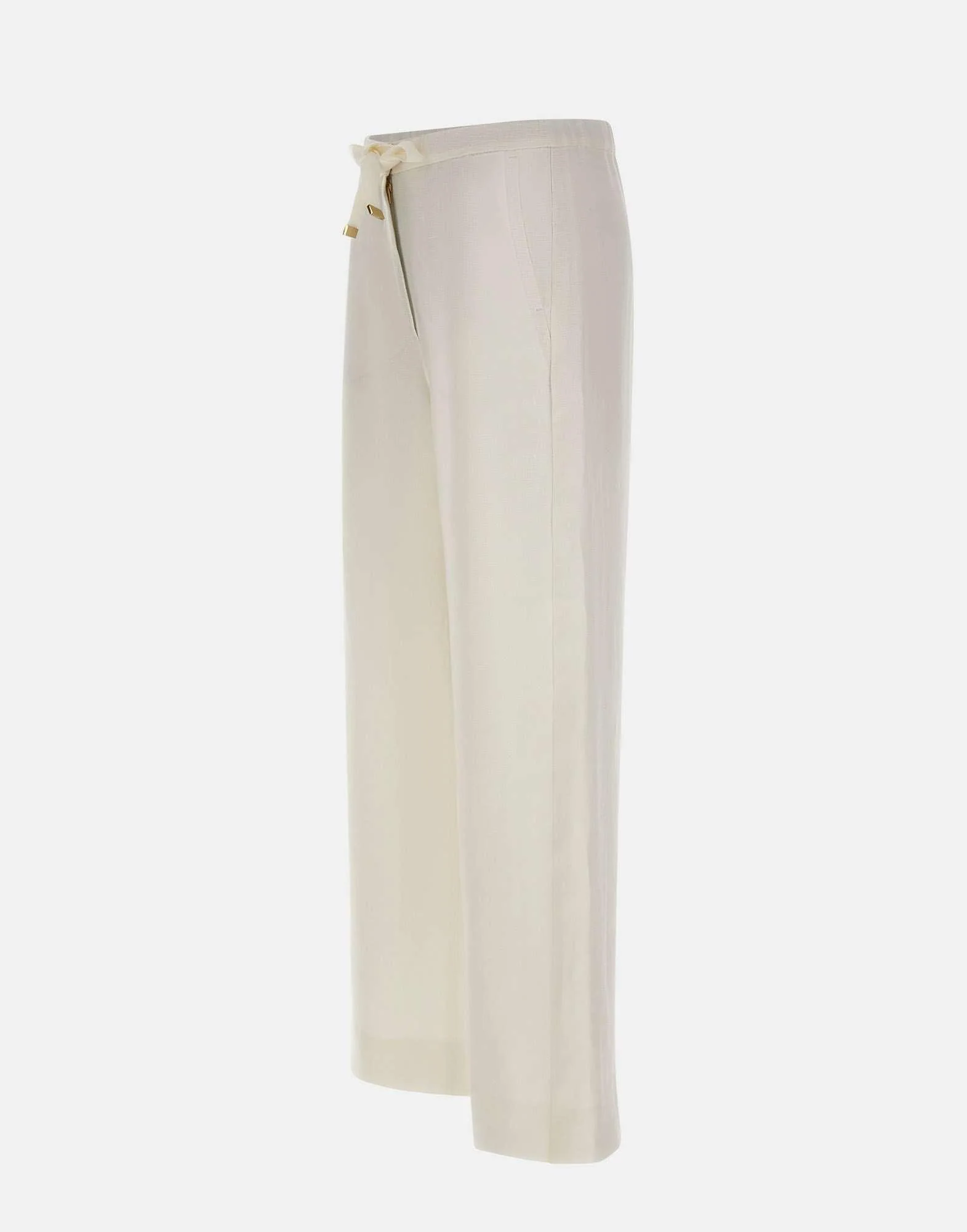 Pantalone donna ‘S Max Mara realizzato in stuoia di puro lino pesante color bianco, pensato per una silhouette essenziale e contemporanea. Il modello presenta gamba dritta e vita elasticizzata con coulisse, ideale per un comfort naturale e una vestibilità regolabile. La chiusura è rifinita da zip coperta, gancetto e bottone per una linea pulita, completata da tasche anteriori all’italiana che aggiungono praticità. Un pantalone in lino bianco versatile, perfetto per look di stagione dal gusto raffinato. Ampiezza fondo: 26 cm.
