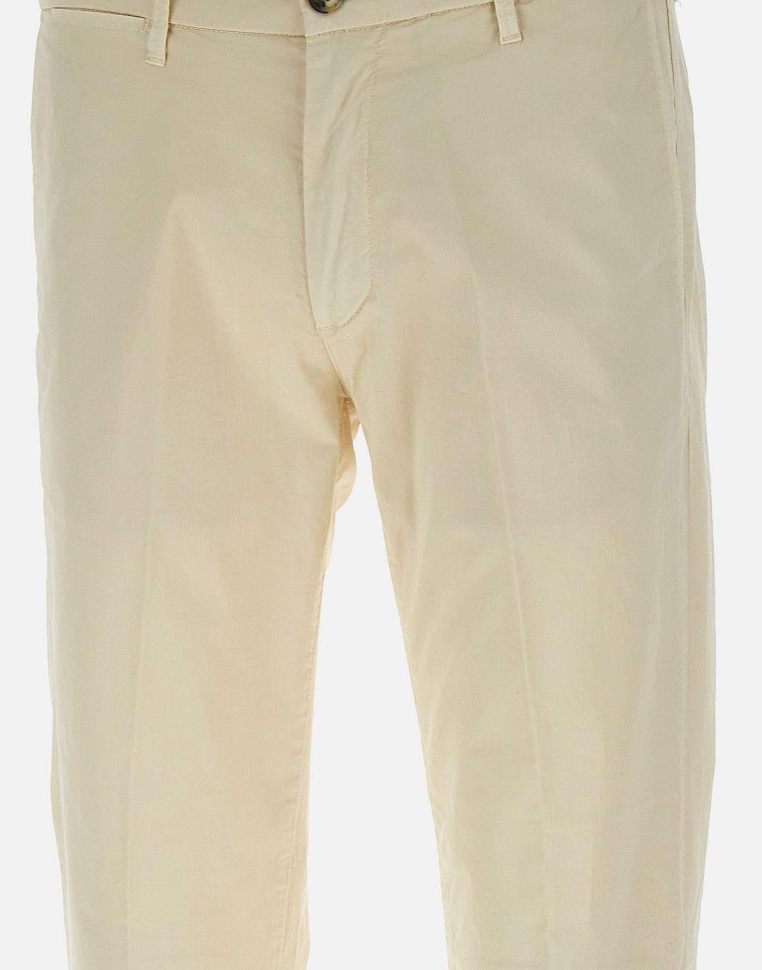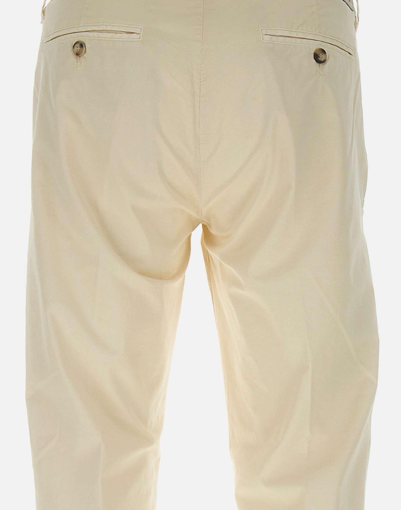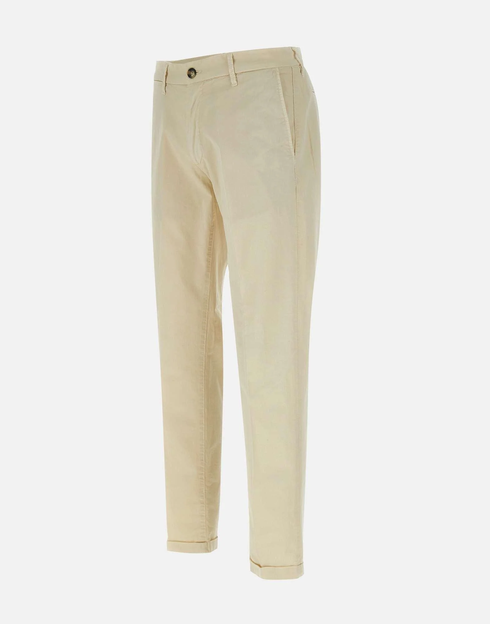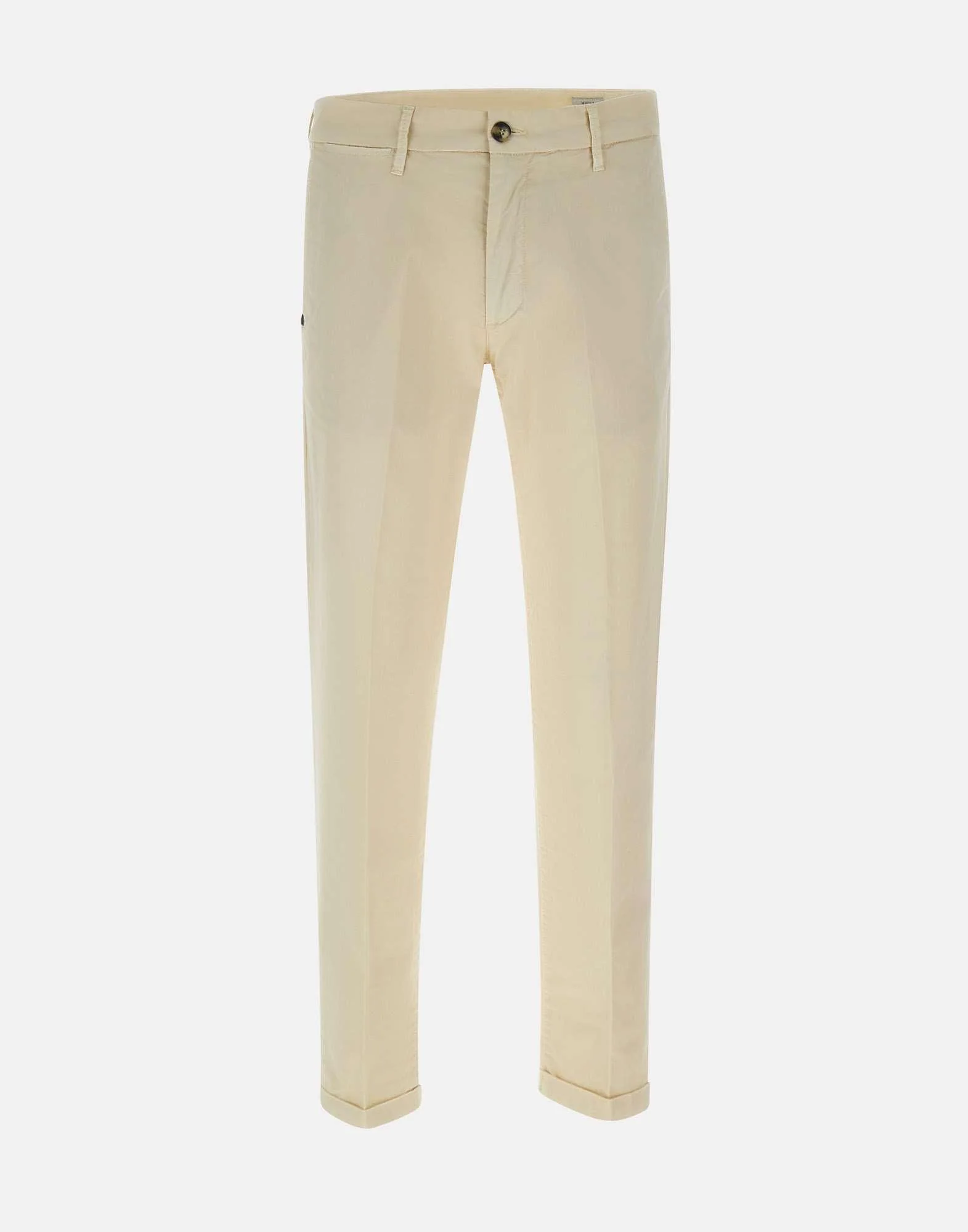 Pantaloni uomo Re-Hash ” Mucha chinos” in cotone stretch, color crema, tessuto confortevole al tatto e all’indosso, chiusura con zip e bottone, tasche laterali a filetto, vita regolare con passanti per cintura, taschino frontale porta orologio, tasche sul retro con bottone, patch logo sul retro in camoscio, fondo gamba 17cm e risvolto 2,5 cm, slim fit, made in Italy.