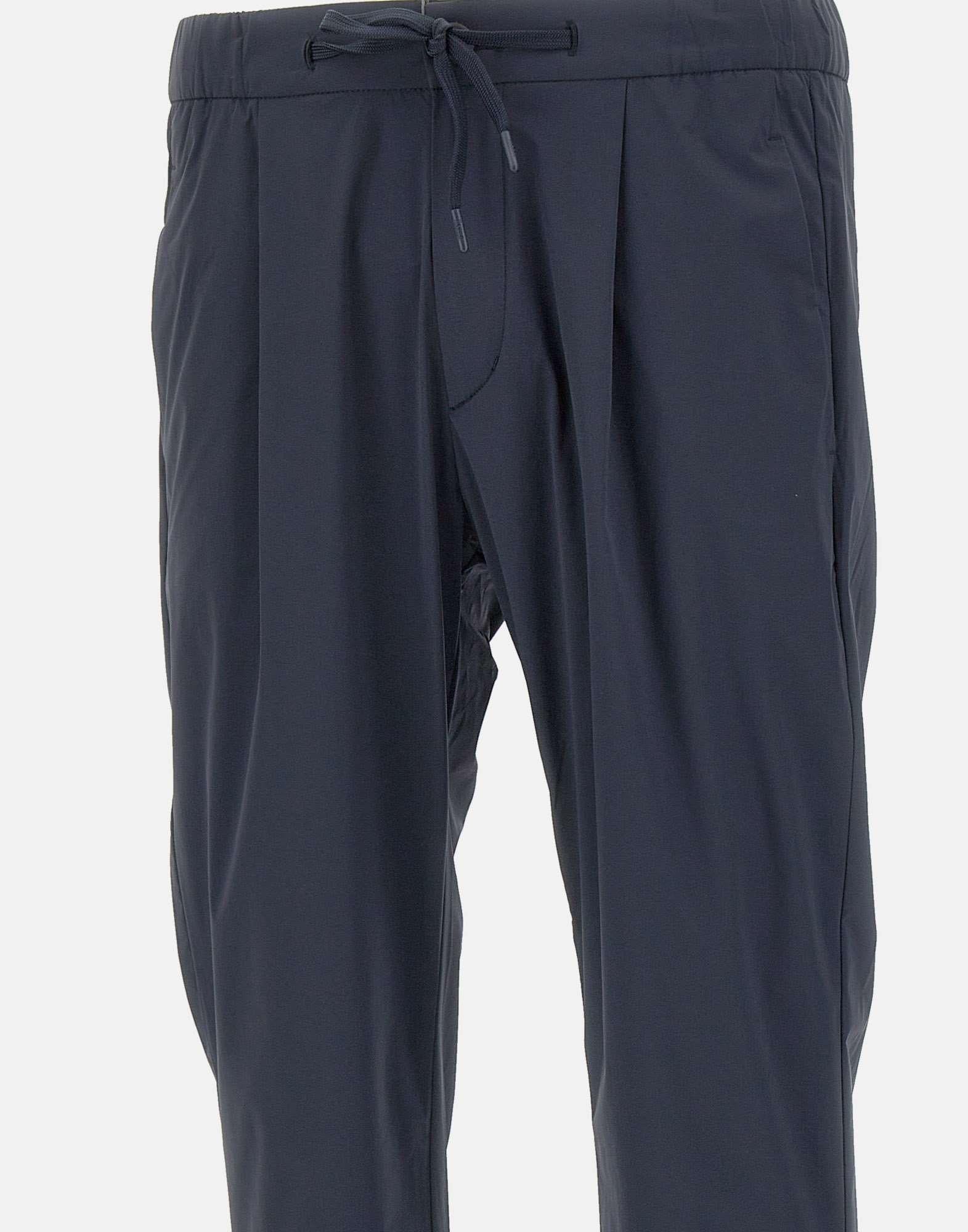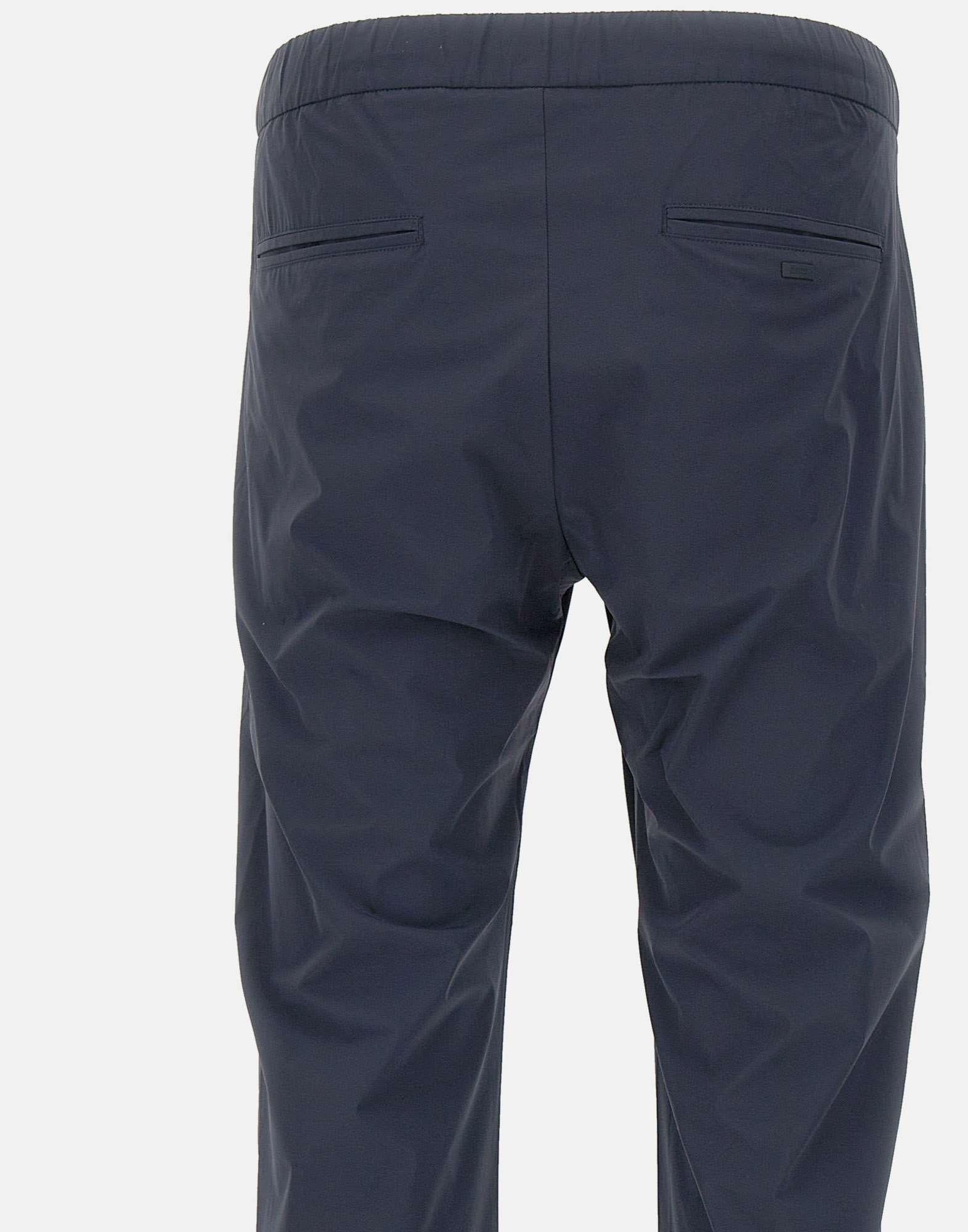 Pantaloni uomo Herno, blu navy, linea Functional Wardrobe, tessuto super fresco e confortevole al tatto e all’indosso, chiusura con zip e bottone, coulisse in vita elasticata tono su tono, tasche laterali a filetto, tasche sul retro con mini logo, gamba dritta con fondo 17cm, slim fit.