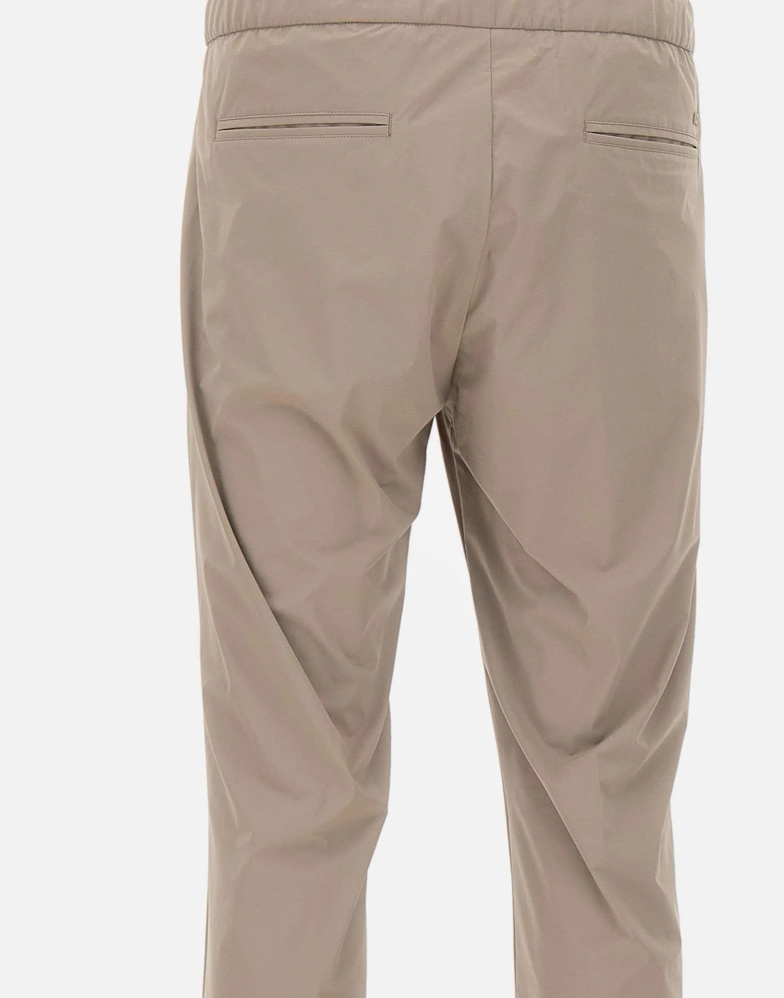 Pantaloni uomo Herno, beige, linea Functional Wardrobe, tessuto super fresco e confortevole al tatto e all’indosso, chiusura con zip e bottone, coulisse in vita elasticata tono su tono, tasche laterali a filetto, tasche sul retro con mini logo, gamba dritta con fondo 17cm, slim fit.