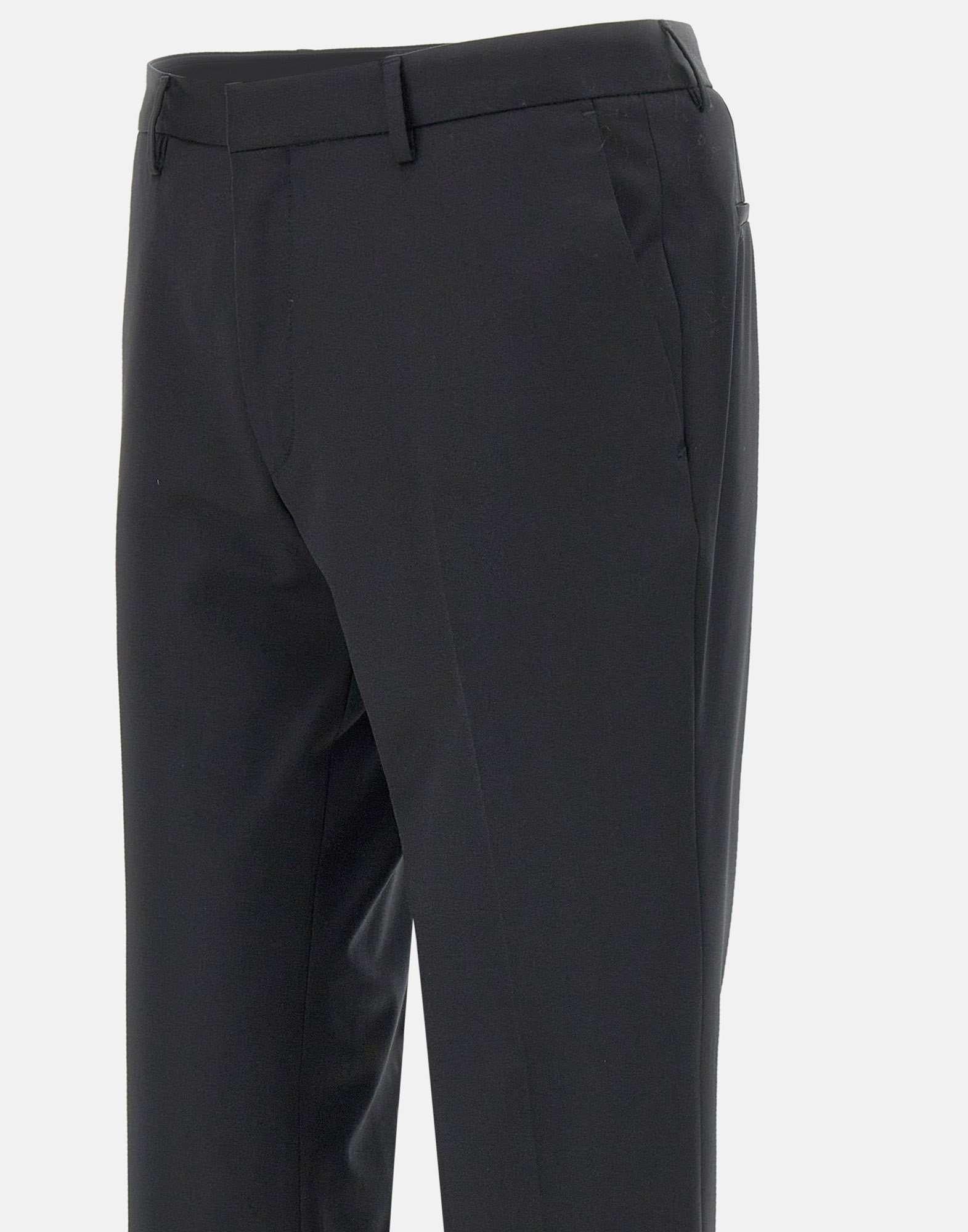 Pantaloni uomo Boss “H-Wenten”, nero, Boss One The Suit, taglio sartoriale, in fresco lana, trama serge per uno stile formale ma versatile, chiusura con gancetto e zip, pieghe, tasche laterali a filo, tasche posteriori, passanti per cintura, fondo 17cm, extra slim fit. Lavaggio a secco chimico delicato